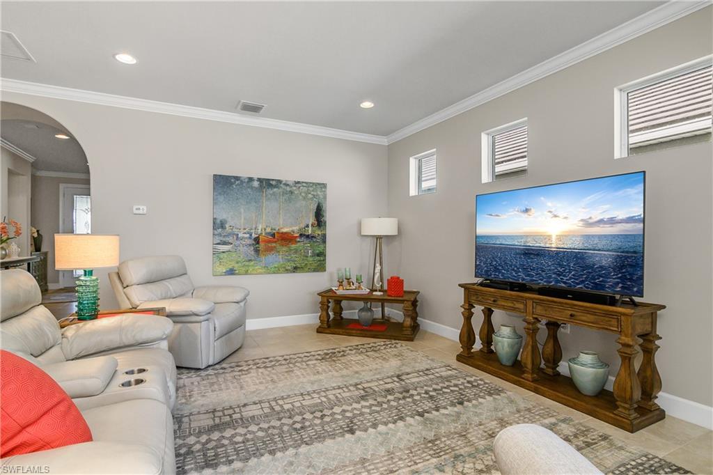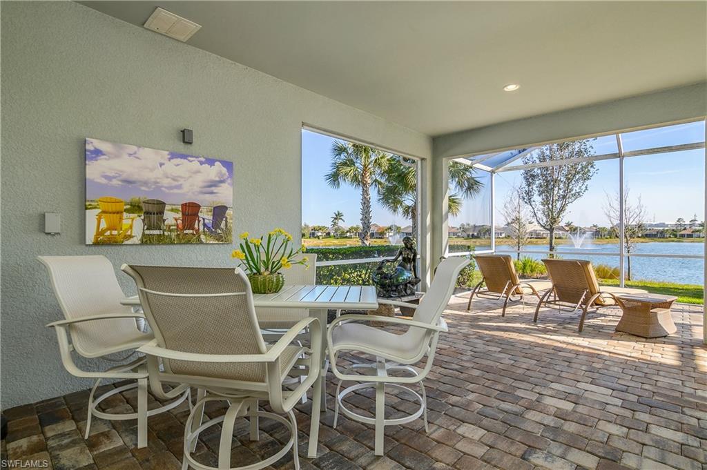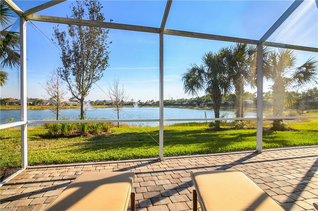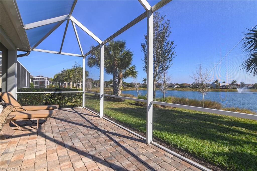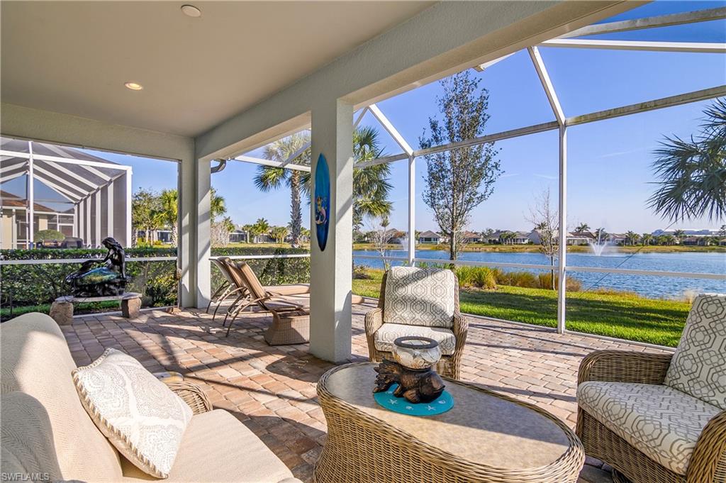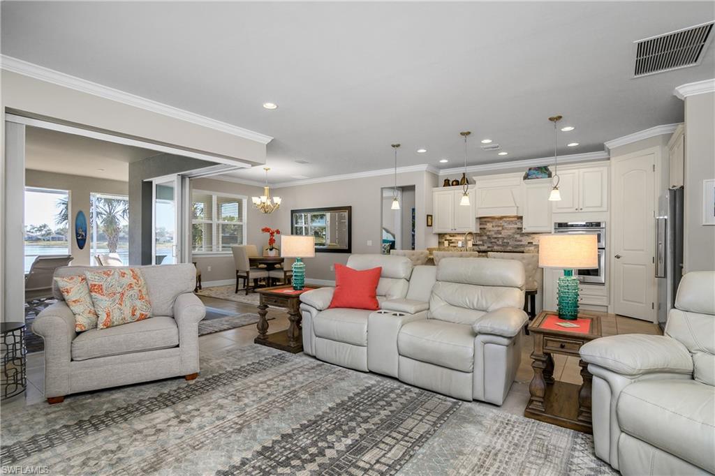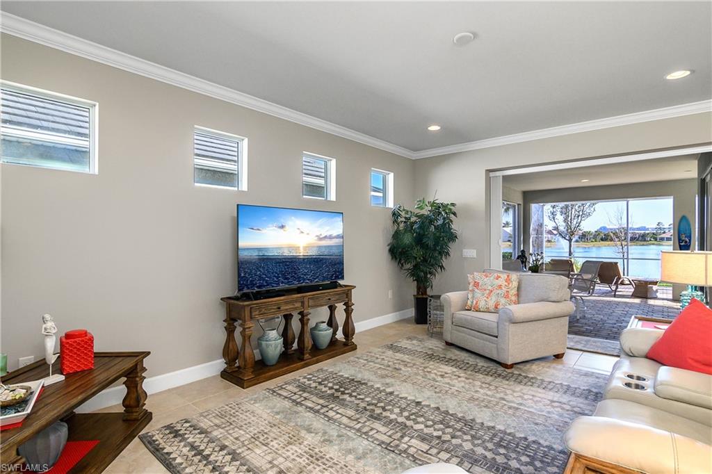 Premier location. This stunning two-bedroom, den house from the DelWeb Builder Series is situated in the highly sought-after TIDEWATER Community. Future stunning additions include crown moldings, impact-resistant windows and doors, gourmet kitchen cabinets with a built-in oven tower, delicious furnishings throughout the house, exquisite Florida/contemporary décor, a custom shelf in the master closet, an extended patio, hook-up for your outdoor kitchen, and an extended insulated garage with a self-standing dehumidifier. Excellent 55+ community with a nice clubhouse and lots of amenities. You are invited to enjoy your morning coffee and the stunning lakeside from the screened-in patio. RSW International Airport, beaches, dining options, and shopping are all close by.