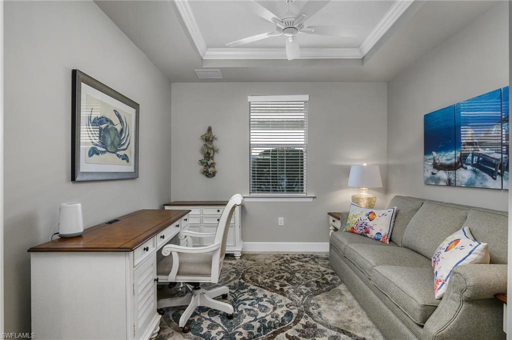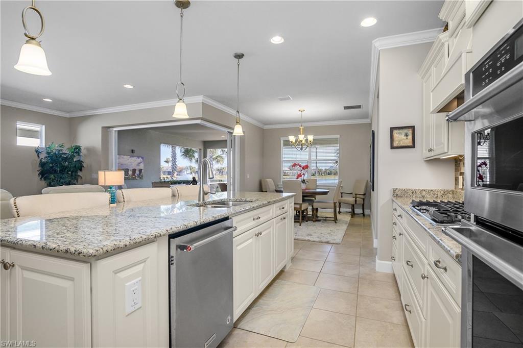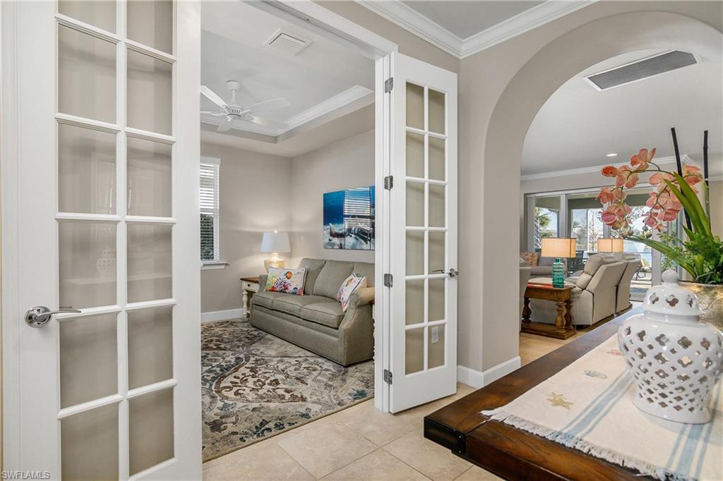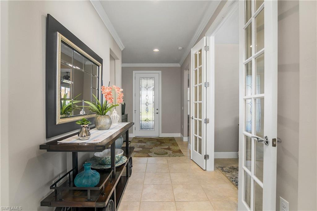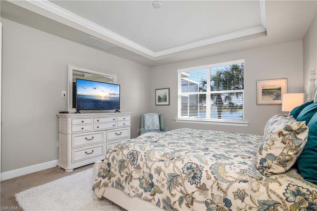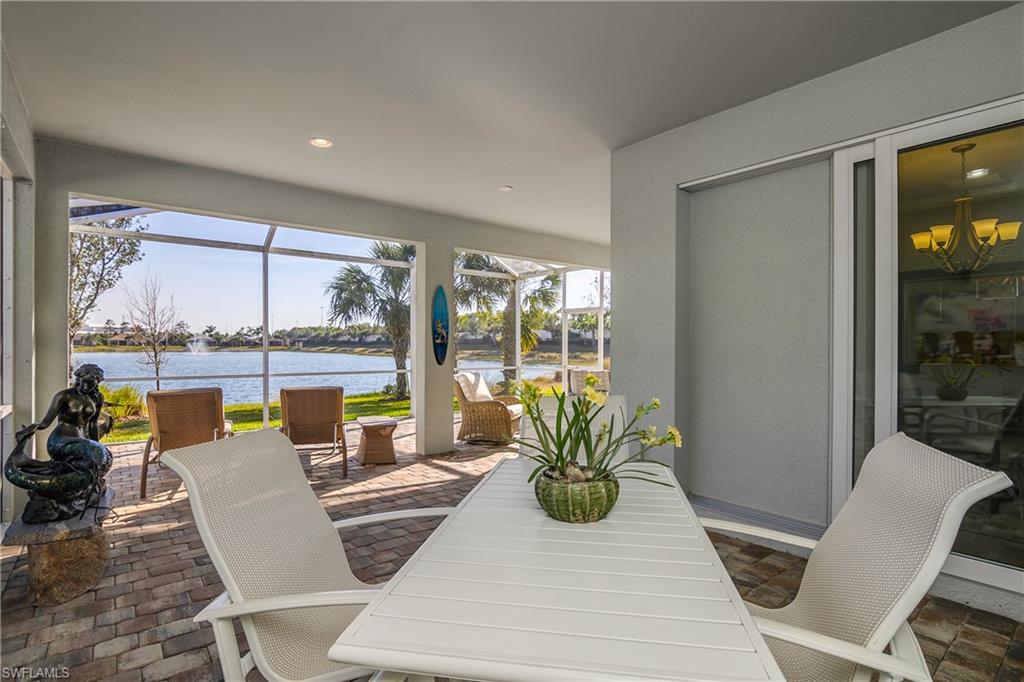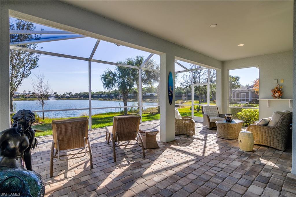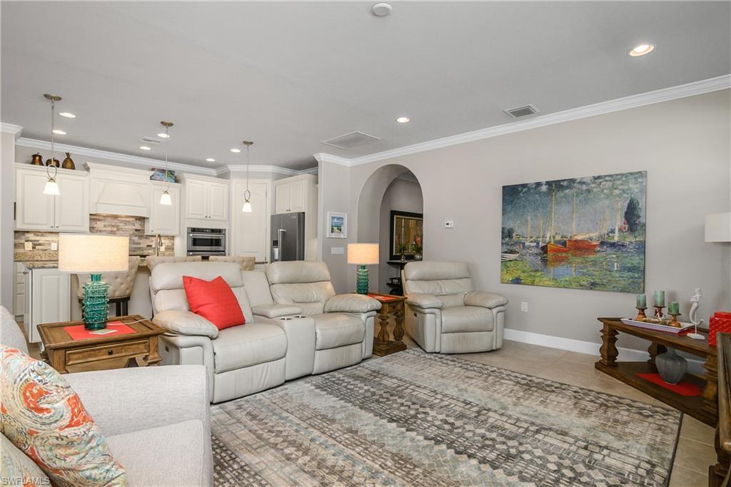 Premier location. This stunning two-bedroom, den house from the DelWeb Builder Series is situated in the highly sought-after TIDEWATER Community. Future stunning additions include crown moldings, impact-resistant windows and doors, gourmet kitchen cabinets with a built-in oven tower, delicious furnishings throughout the house, exquisite Florida/contemporary décor, a custom shelf in the master closet, an extended patio, hook-up for your outdoor kitchen, and an extended insulated garage with a self-standing dehumidifier. Excellent 55+ community with a nice clubhouse and lots of amenities. You are invited to enjoy your morning coffee and the stunning lakeside from the screened-in patio. RSW International Airport, beaches, dining options, and shopping are all close by.