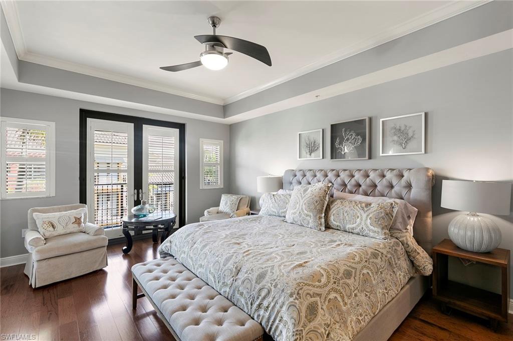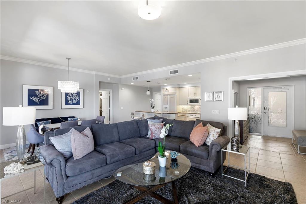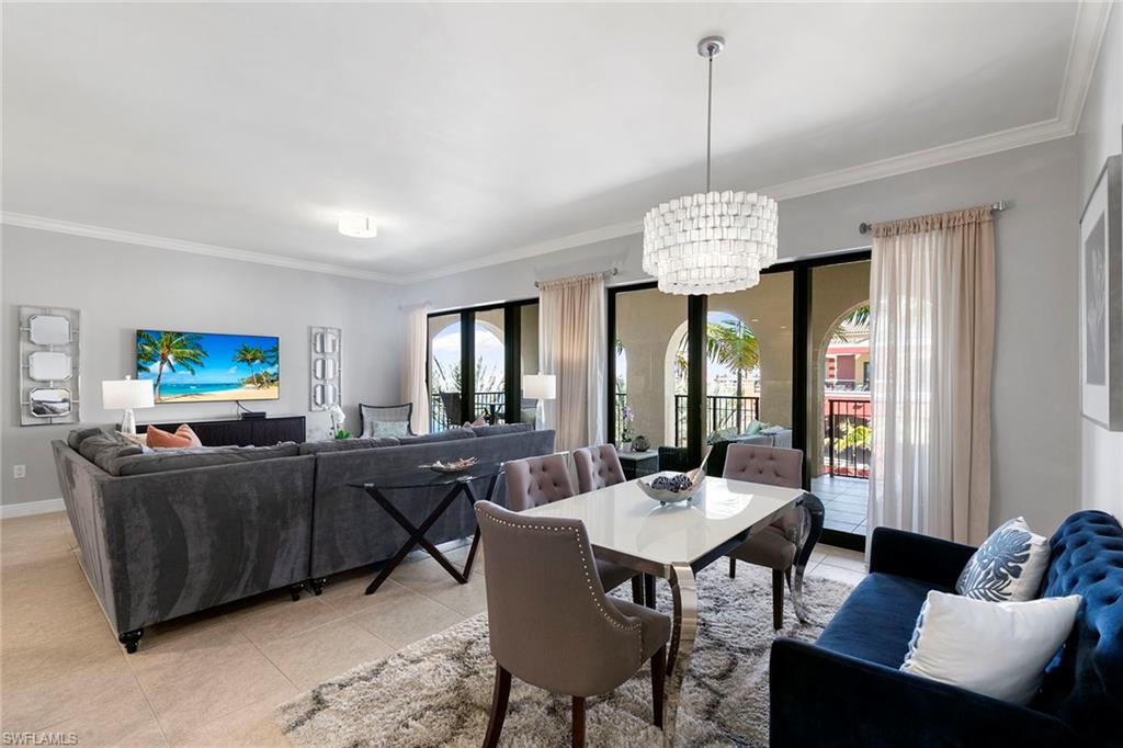 Step into this spacious three-bedroom, 2.5-bath condominium at the Esplanade on Marco Island, where tropical water views of the stunning marina meet the elegance of coastal living. This top-floor corner unit boasts a lavish 9-by-25-foot balcony, offering breathtaking views of Smokehouse Bay, the deepwater marina, and vibrant courtyard filled with boutique shops, restaurants and entertainment. Inside, the residence features wood flooring in the primary suite, ceramic tile in the main living areas and carpet in the guest bedrooms. The kitchen is designed for style and function, with upgraded cabinetry, a stylish backsplash, a Bosch dishwasher and KitchenAid appliances, including a cooktop, microwave and refrigerator. Modern lighting and upgraded fans throughout add to the coastal charm. Residents enjoy exclusive access to a private fitness center, resort-style pool, personal storage and assigned covered garage parking. Whether you’re seeking a tranquil retreat or an investment property with weekly rental potential, this residence offers the ideal island escape. Live like you’re on a perpetual vacation with convenient access to Marco Island’s world-class dining, shopping, cultural events and outdoor adventures.