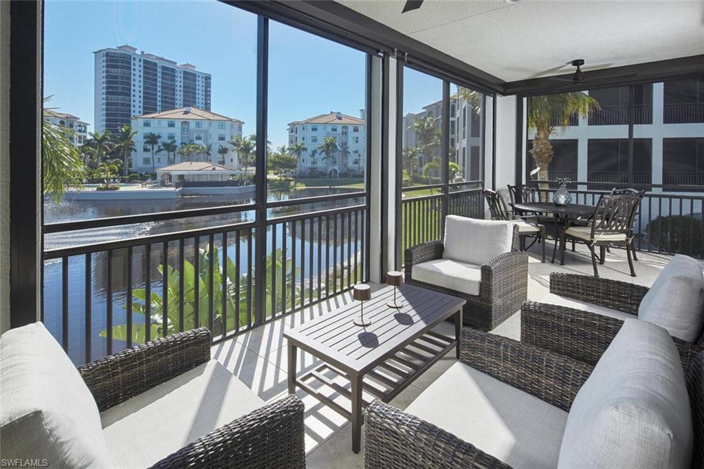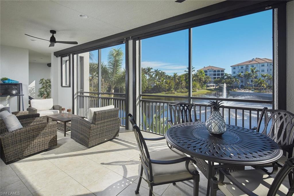 Luxury Living at Its Finest – 3BR, den, 3.5BA Cielo Condo at The Colony. Welcome to a beautifully designed residence offering stunning lake views, high-end finishes and top-tier amenities at Cielo in The Colony. Step into an updated open floor plan featuring wood floors throughout and a gourmet kitchen with stainless appliances and a GAS cooktop. The kitchen flows into the spacious living and dining areas ideal for entertaining which is surrounded by a wraparound lanai area that gives an indoor/outdoor living feel to the unit. Primary Suite has spa-inspired bathroom with built-in tub & private lanai with lake views. Two additional guest suites that have en suite baths and an additional den/home office with a private lanai. Built to the highest hurricane storm code, Cielo also includes one private garage parking space and one outdoor parking space. As a resident of The Colony, you'll enjoy access to resort-style amenities, including: The Bay Club - newly renovated Private waterfront dining and social club, Private Beach Park – Exclusive beach access for residents, Tennis & Pickle ball Courts, Canoeing & Kayaking, Sailing Club & Bocce. Exceptional Upgrades & Features include, Hurricane Shutters, 2022 HVAC System & Furnace, Radon Mitigation System with Humidifier, fully Wired with Built-In Speakers.
