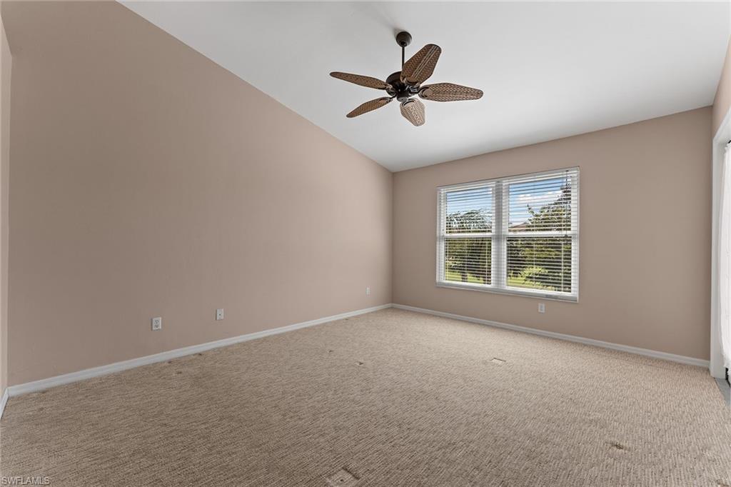 In the desirable Fairways II at Marco Shores community in Naples, this beautifully updated three-bedroom, two-bath condominium offers stunning golf course views and an abundance of natural light. Volume ceilings enhance the spacious feel, while some of the impact-resistant windows provide peace of mind. The screened-in lanai features upgraded screens, a shade screen and an electric aluminum hurricane shutter. Inside, the home boasts a wet bar, updated kitchen and baths, new ceiling fans throughout, and a new water heater in 2024. Enjoy the convenience of an assigned covered parking space and the luxury of a resort-style community pool. Ideally near downtown Naples, Marco Island, beaches, shopping and dining, this condominium is the ideal blend of comfort and location.