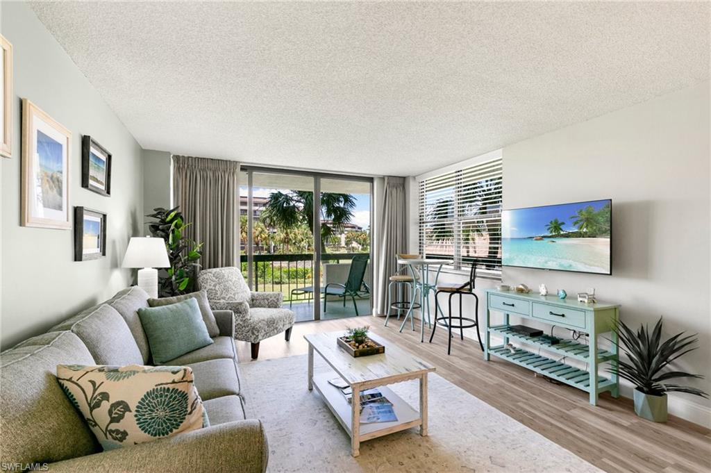 Welcome to coastal bliss! Discover the perfect blend of relaxation and investment potential with this updated 2-bed, 2-bath condo in the coveted South Seas East community on Marco Island. Savor panoramic views of the bay, Gulf, and sparkling heated pool from your expansive open balcony, where breathtaking sunsets paint the sky each evening. Turnkey furnished, this stylish retreat features sleek plank vinyl flooring and the convenience of in-unit laundry—ready for immediate enjoyment or to continue its impressive rental history. Boaters will delight in Gulf access with boat docks available for lease, while short-term rental options make this a versatile choice for vacationers and investors alike. South Seas East offers an array of resort-style amenities, including a heated pool, tennis and pickleball courts, bocce, a well-equipped exercise room, and a BBQ-picnic area. Take a leisurely bike ride to Marco Island's renowned Tigertail and Residents' beaches, just minutes away. Whether you’re seeking a serene getaway, a lucrative investment, or both, this condo is your gateway to the coastal lifestyle you’ve been dreaming of. Claim your piece of paradise today!