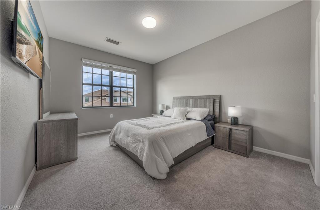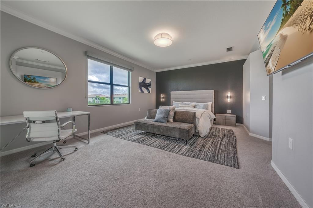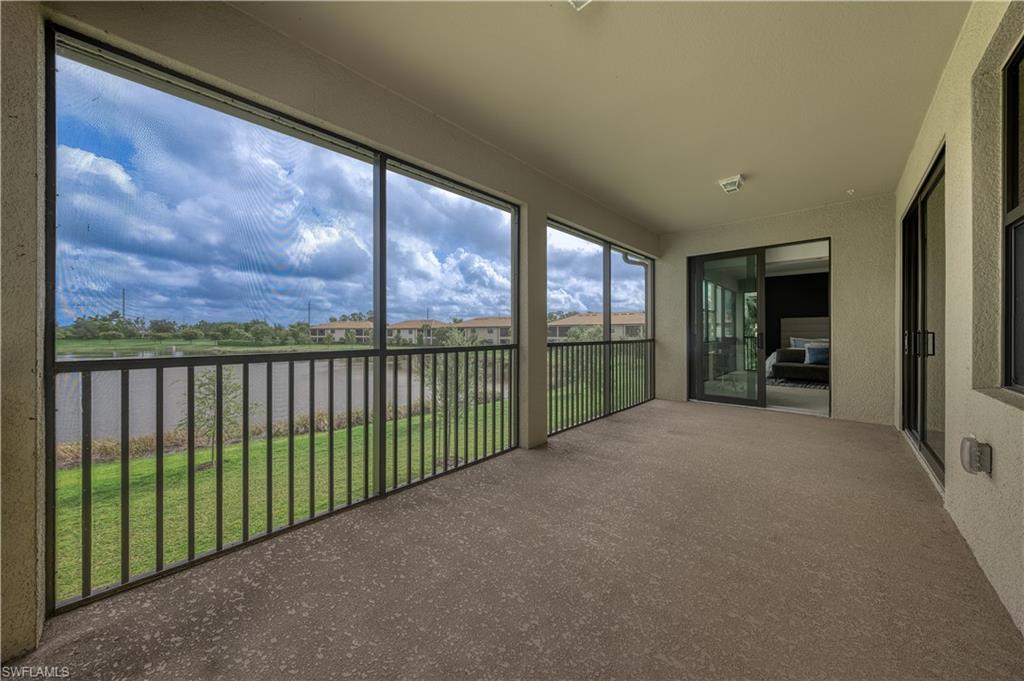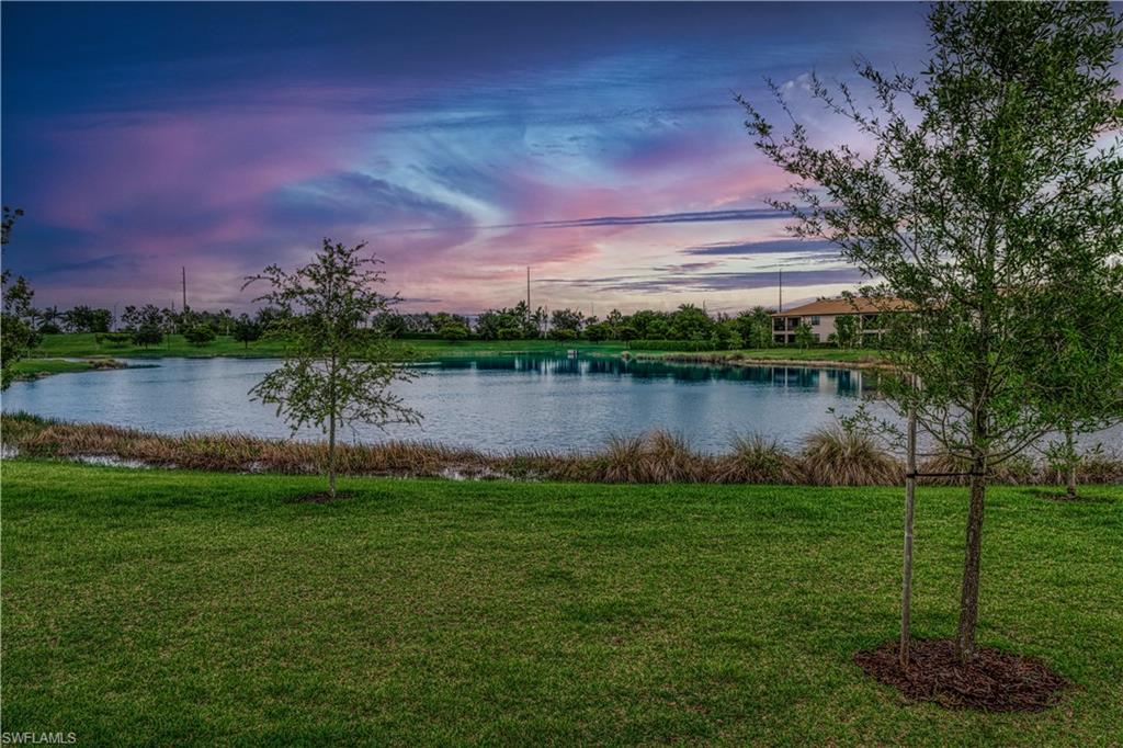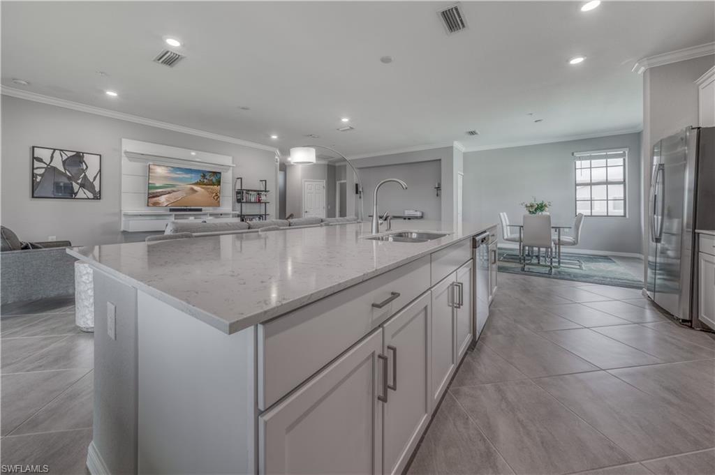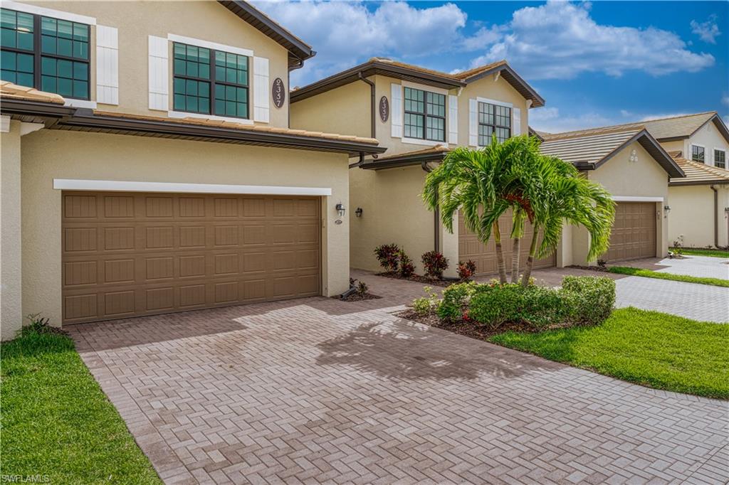 Opportunity awaits with this coach home showcasing an expansive lake view within the secure gates of Lamorada! This property combines the larger, functional space of a single family home (over 2100 sqft under air) and the minimal care of condo living. The open floor plan is highlighted with large neutral grey colored floor tile, crown molding, tailored window treatments, elegant quartz countertops, ample storage space in the form of two custom-built primary closets, walk-in guest closets and kitchen pantry, expansive 2+car garage, immense lanai space and more. The low density community of Lamorada offers something for everyone: poolside bar, tennis, pickleball, bocce, fitness center, resort pool with lap lanes, movie theatre, culinary arts studio and more! All of this is conveniently located to top-rated schools (Gulf Coast High School), everyday conveniences, hospitals, shopping, dining and entertainment.