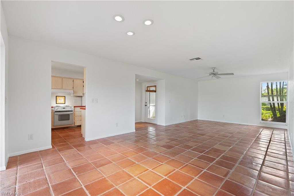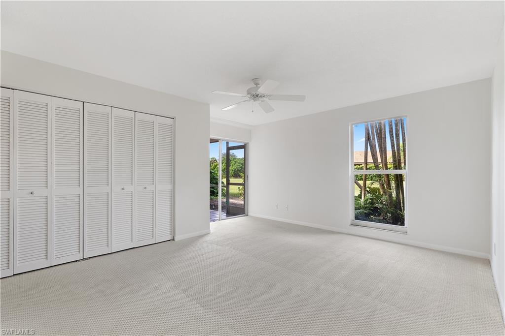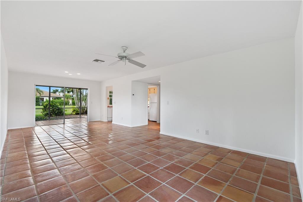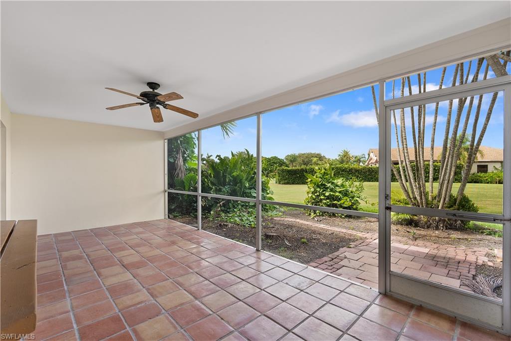 Rarely Available Lakewood Villas III – 2-Bedroom, 2-Bathroom Villa with Golf Course Views! Discover this freshly painted 2-bedroom, 2-bathroom attached villa with a 1-car garage, ideally located in the quiet, low-traffic area of Boca Ciega Circle within the established Lakewood community. This charming home boasts a desirable Southwest exposure, offering views of the golf course and mature trees—creating a serene setting that perfectly blends comfort, convenience, and outdoor enjoyment. Designed for relaxed living, the comfortable floor plan features a spacious and airy living room, ideal for gatherings and unwinding. The centrally located kitchen is highlighted by a picturesque window with convenient pass-through to the lanai. The primary suite offers an en-suite bath and ample closet space, while the guest bedroom and second bath provide versatility—perfect for visitors, family, or a home office, both suites outfitted with new carpeting. Step outside to the screened lanai, an inviting space where you can enjoy year-round outdoor living while soaking in the tranquil golf course views. The attached garage provides secure parking, extra storage, and a laundry area for added convenience. This home presents an exciting opportunity for the new owner to enjoy as is or reimagine into your custom retreat. With low HOA fees, this property offers an exceptional value in a prime location just minutes from downtown Naples, Sugden Park and the Bayshore Arts District. Don’t miss this incredible opportunity—schedule your showing today!
