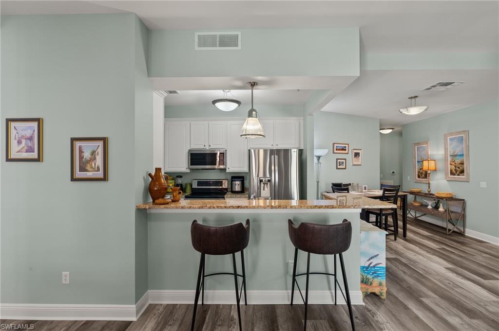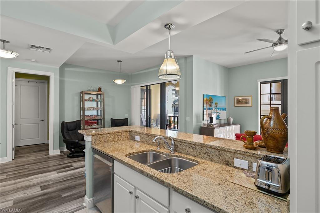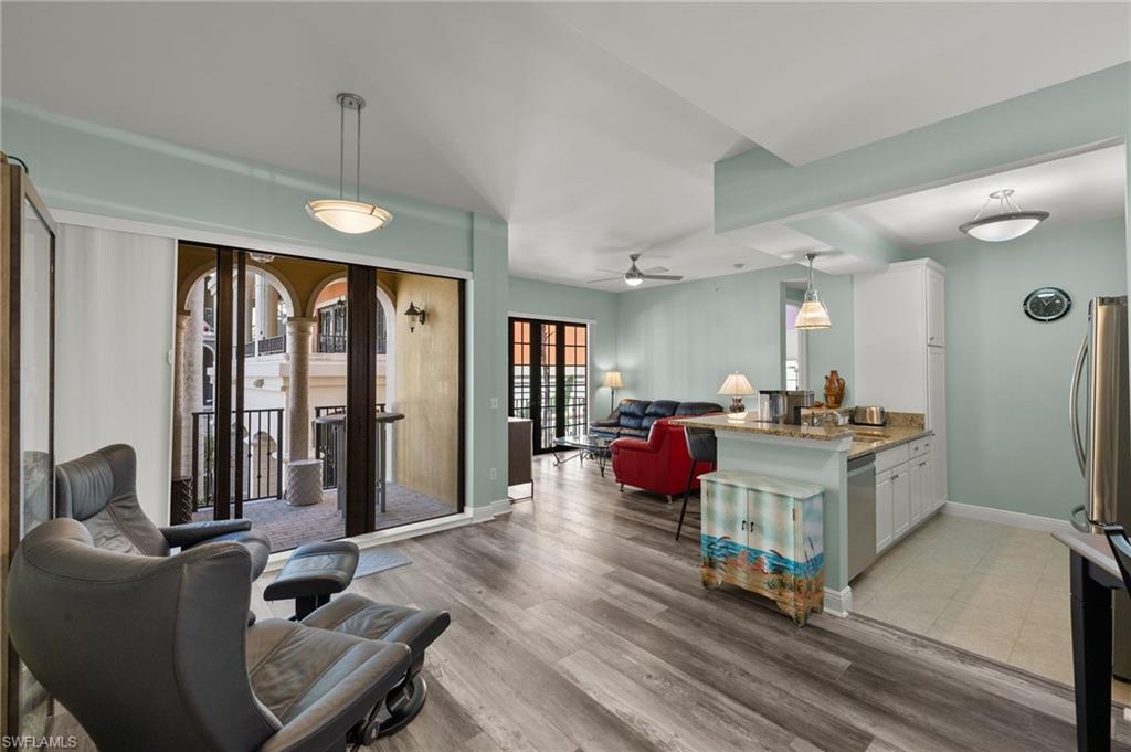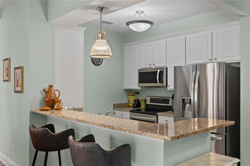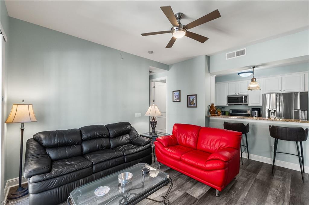 This condo offers you THE ULTIMATE LOCATION within the highly sought-after Residences at Coconut Point !! Overlook the RESORT-STYLE POOL AND COURTYARD from your private italian-tiled balcony !! Walk down a half flight of stairs right into the the resort-style amenities including a Heated Pool and Spa, a well-equipped Fitness Center, Grill Area, Community Center and a beautifully landscaped Courtyard. TWO RESERVED PARKING SPACES (5 & 6) directly beneath your building !! Currently, THE ONLY 3-bedroom Available !! This stunning 3-bed, 2-bath condo offers soaring 10’ ceilings, 8’ solid wood doors, and an open-concept great room floor plan designed for both comfort and style. The kitchen is equipped with granite countertops, stainless steel appliances and a cozy breakfast bar. An ample primary bedroom welcomes you to relax and unwind with an en-suite bath complete with dual, separate vanities, a luxurious soaking tub and glass-enclosed shower. METICULOUSLY MAINTAINED by its ORIGINAL OWNER, this unit has never been rented and has never had any pets. Designed for effortless living, this condo includes impact-resistant windows and doors. This maintenance-free lifestyle can be yours with HOA fees that cover High-Speed Internet, Premium Cable, Water, Sewer, and Trash. Living here means being just steps away from Coconut Point Mall, where you’ll find an incredible selection of high-end retail stores, award-winning restaurants, charming cafés, and entertainment options. Plus, you're only minutes from championship golf courses, Southwest Florida International Airport, and the stunning Gulf beaches, where you can experience breathtaking sunsets year-round!