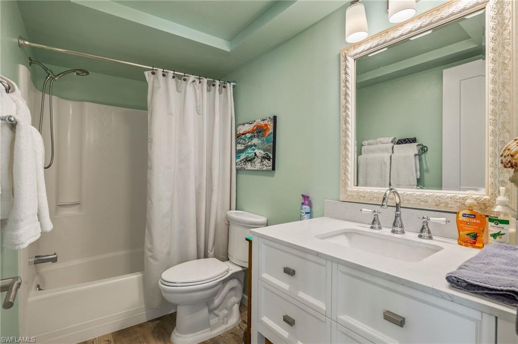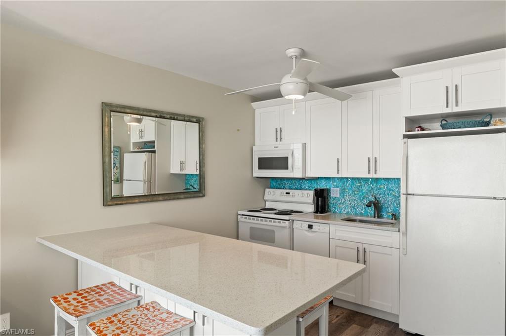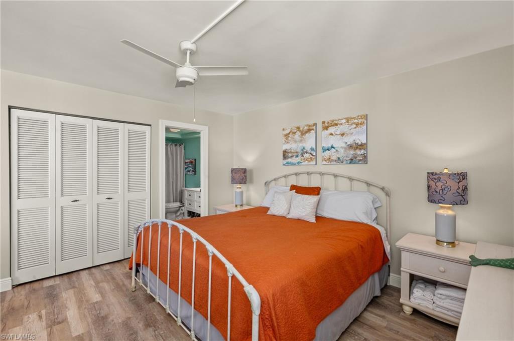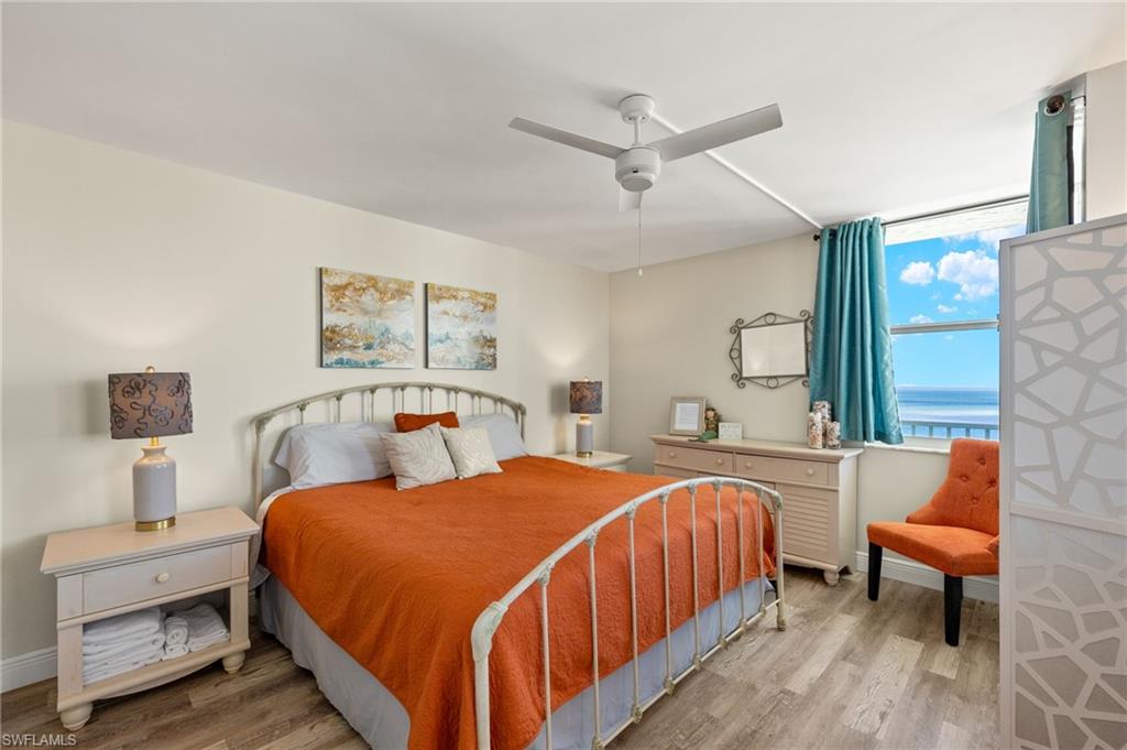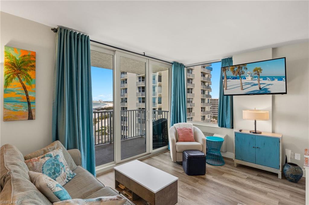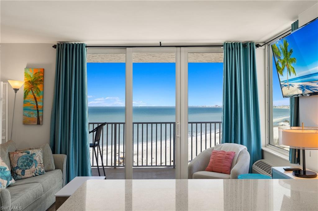 Take in breathtaking Gulf of Mexico views from your 8th floor balcony fully facing the water w/no obstructions at our 1BR condo w/open floor plan. Located S. end of island at Estero Beach & Tennis Club. Beautifully remodeled & professionally decorated in coastal colors and theme. WIFI, keyless entry lock, new AC unit, king size bed, 52” smart TV w/cable, microwave, dishwasher, lift top coffee table for your laptop, 2 lamps in the bedroom w/technology plug ins, full size fridge w/top freezer, stove w/oven, sleeper sofa, original coastal artwork, tub w/shower, black out lined silk draperies. Flooring is easy care luxury vinyl, scraped off popcorn ceiling for an up-to-date look, contemporary cabinetry and quartz countertops in the kitchen & bathroom. Two closets; one for the owner, one for guests. Amenities include FIRST & FOREMOST direct access to the beach especially as your first access is the VIEW from your living room, bedroom and private balcony w/tall seating (to see OVER the railing). A refreshing beverage on the balcony for sunset is heavenly. Look across and see Sanibel Island in the distance. An elevator ride & you can enjoy a sunny walk on the beach or a sunset stroll w/toes in the gulf waters. Fort Myers Beach is undergoing beach renourishment. When complete, you will see an expansive 250' feet of beachfront added to our shoreline. If not the beach, how about a dip in the beachfront communal heated pool? Or try your hand at grilling at the outdoor barbeque area, or friendly match of tennis or pickle ball. For your convenience there is a ground level charge card operated laundry and on site free parking w/pass.
