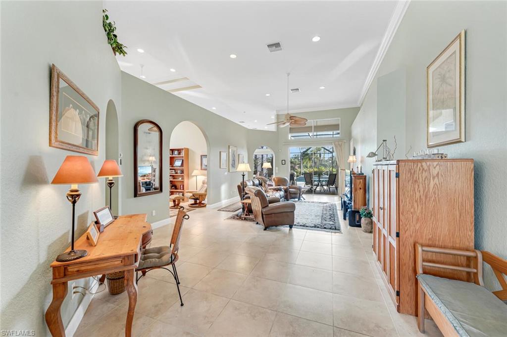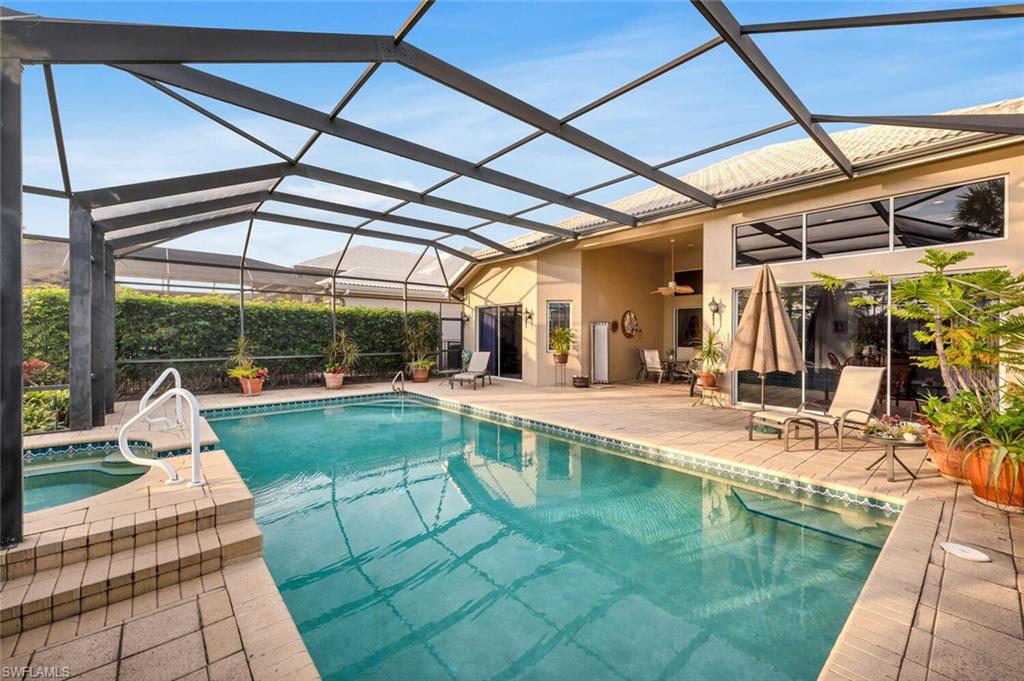 **BRAND NEW ROOF TO BE INSTALLED**Welcome to this very grand, yet cozy, home in the exclusive Ascot neighborhood in Pelican Landing. With nearly 2,500 sq.ft., the open space greets you right at the front door as you step down into the great room with a library/den off to the side. Looking straight through, enjoy the view of the heated pool and spa with the golf course and lake beyond. What a location to sip a glass of wine while enjoying the southwestern sunsets! The primary suite opens out to the lanai and features generous closets and a comfortable bathroom with a soaking tub and double sinks. In the kitchen, beautiful maple cabinets and stainless appliances pair perfectly with granite countertops with lots of space for the gourmet chef. Eat at the counter, or sit in the adjacent dining room while enjoying the outside breeze and views. Two additional guest rooms, each with private baths, will make sure your visitors have plenty of space and privacy. Pelican Landing offers unparalleled amenities for its residents. Competitive pickleball and tennis programs, bocce, an attended fitness center, use of canoes and kayaks are just the beginning! Enjoy the miles of shaded walking paths or bike throughout the many unique neighborhoods. Best of all, enjoy the private water taxi over to the 34-acre private beach park on Big Hickory Island! Pelican’s Nest Golf Club offers optional golf and social memberships with fine dining and activities, subject to waiting lists.