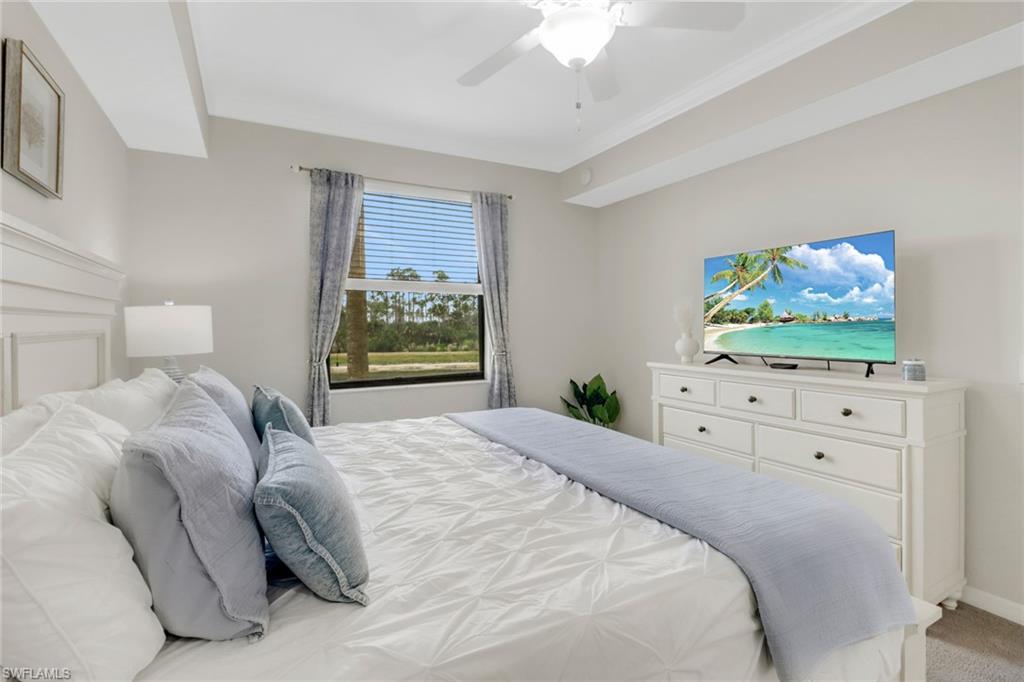 Welcome to refined living in prestigious Treviso Bay, where luxury meets leisure in this beautifully appointed two-bedroom, two-bath condominium. This residence comes with a coveted FULL GOLF Membership to the TPC-designed championship course, offering an unparalleled golfing experience at your doorstep and access to other private TPC golf courses throughout the country. Positioned to capture stunning long lake views, this turnkey furnished home feature spacious living room, elegant finishes throughout, including granite countertops, stainless steel appliances, crown molding throughout, new AC and Water Heater. This unit comes with an assigned covered parking space and a storage room. Enjoy Acqua neighborhood's pool and BBQ picnic areas just steps away from the building. The community of Treviso Bay delivers an active lifestyle with world-class amenities. At its heart stands a magnificent 64,000-square-foot main clubhouse, offering fine dining experiences complemented by panoramic golf course views. The 15,000-square-foot Villa Rilassare serves as a wellness and recreation hub, featuring both resort-style lagoons and lap pool along with poolside dining for year-round enjoyment. Sports enthusiasts will appreciate the professional-grade tennis courts, pickleball facilities, bocce courts, basketball areas and walking and biking paths throughout the community. The state-of-the-art fitness center and full-service spa provide opportunities for both exercise and relaxation. This highly desirable community perfectly balances active living with luxurious amenities, creating an environment where every day feels like a vacation. Experience the epitome of Florida living in this meticulously maintained residence, where resort-style amenities and natural beauty combine to create an extraordinary lifestyle opportunity. Can be used as a great investment property. Last year’s 5 month rental was $33,000. Signed Lease is in place for next season , totaling $24k for 3 months. Treviso Bay is located within 10 minutes to Naples' white sand beaches, shopping, dining and entertainment on 5th Avenue, 3rd St and Design District.