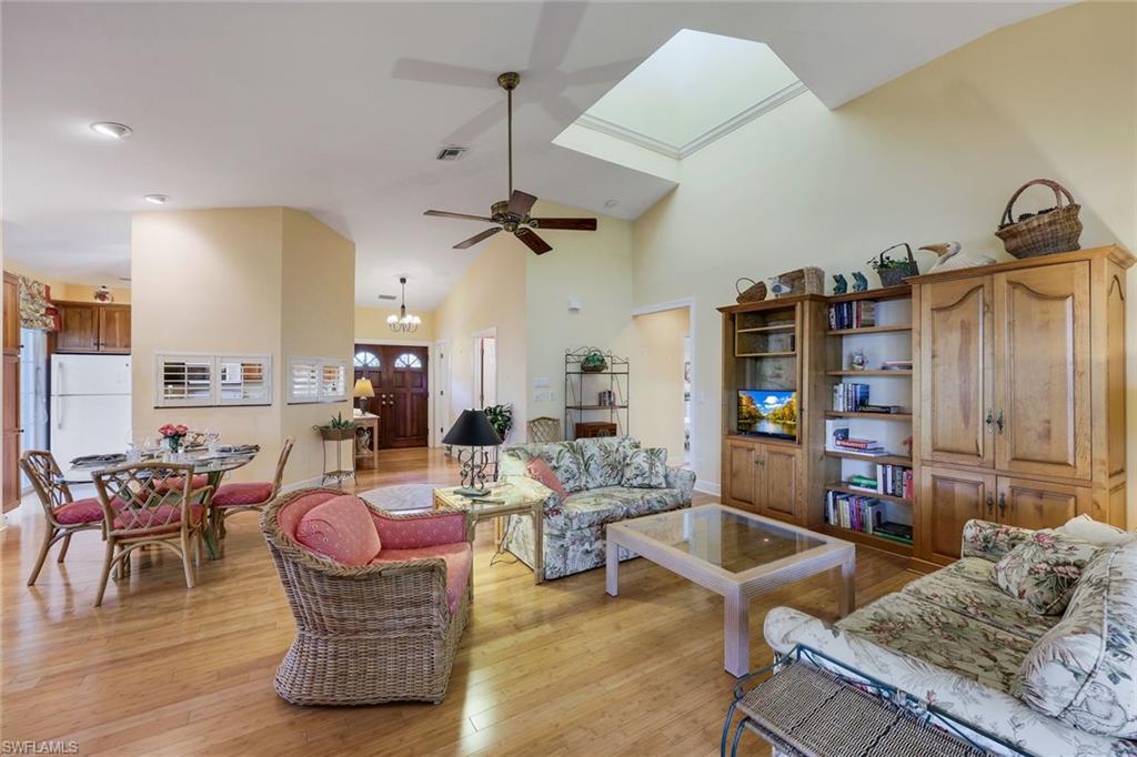 Tucked away in the lush paradise of Cracker Cove within the prestigious Bonita Bay community, 3812 Survey Circle invites you to experience the perfect blend of comfort, convenience, and natural beauty. This charming 2-bedroom, 2-bathroom home with an oversized garage, large enough for 4 cars, includes ample finished storage on the ground level, is designed for effortless living, featuring an elevator for easy access to a single-level floor plan. A skylight bathes the living space in warm, natural light, creating a bright and inviting atmosphere. Step onto the screened lanai and immerse yourself in the serene surroundings, where electric hurricane shutters offer peace of mind. Cracker Cove is a true hidden gem—an intimate enclave embraced by nature, yet just moments from the Gulf of Mexico via a private beach park with shuttle service. With quick access to the airport, shopping, and dining, this community provides the ideal balance of tranquility and convenience. Life in Cracker Cove is as welcoming as it is picturesque. A central gathering area with a sparkling swimming pool and a charming community building brings neighbors together for informal monthly gatherings, fostering a friendly and connected atmosphere. For those seeking an elevated lifestyle, optional membership at the exclusive Bonita Bay Club opens the door to world-class amenities, including 90 holes of championship golf, top-tier tennis courts, cutting-edge fitness facilities, and a private full-service marina. Whether you are in search of a peaceful escape or an active community, 3812 Survey Circle offers the best of both worlds in a truly idyllic tropical setting. Welcome home!