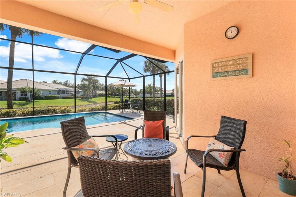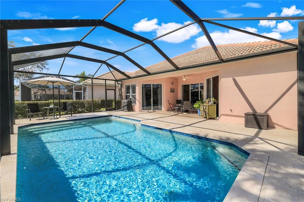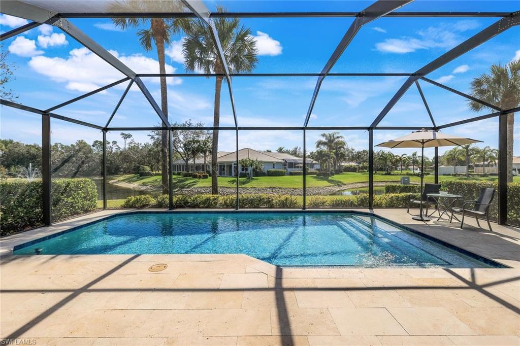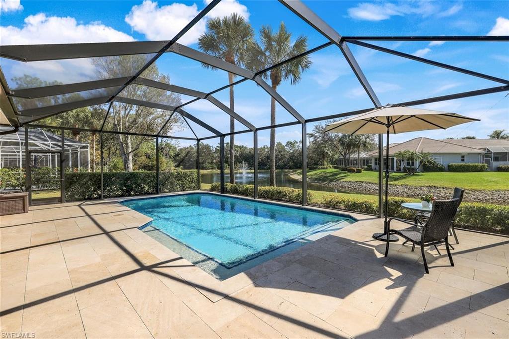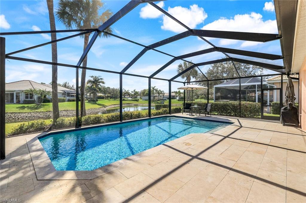 Gorgeous lake & fountain views can be found from the oversized lanai of this single family pool home located in the North Naples gated community of Carlton Lakes! This ever popular floor plan features 3 bedrooms plus a den, large family room, formal dining room, eat in kitchen space & 2 full baths. Notable features include volume ceilings, decorative archways and plantation shutters. You can enjoy relaxing pool side on your back lanai overlooking your large salt water pool with travertine decking and plenty of covered space for dining alfresco. Many improvements have recently been completed including a new Lennox AC, newer water heater (22), newer washer/dryer, newer kitchen appliances and closet organization systems. Carlton Lakes offers resort style amenities including clubhouse with 60 ft lap pool & hot tub, fitness room, tennis courts, bocce courts & fishing pier. Perfect for the Naples lifestyle. You are minutes to shopping, dining and Naples gorgeous white sand beaches. Sold with a 1 year home warranty for the new buyer at closing.