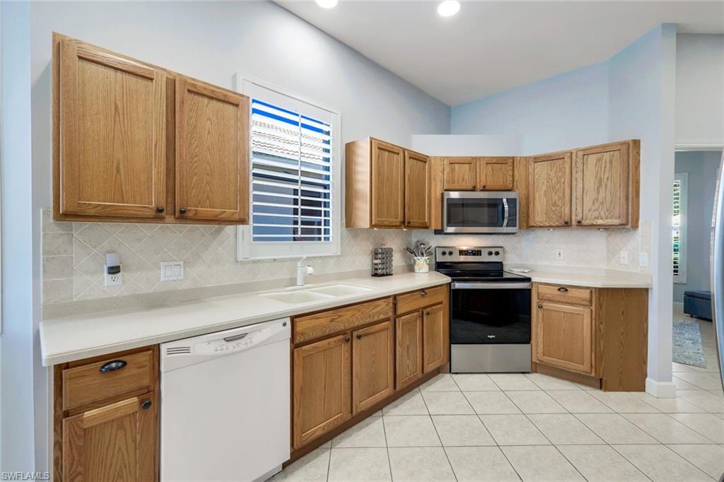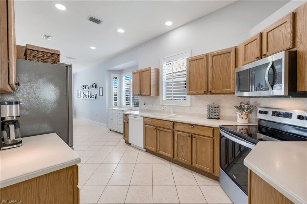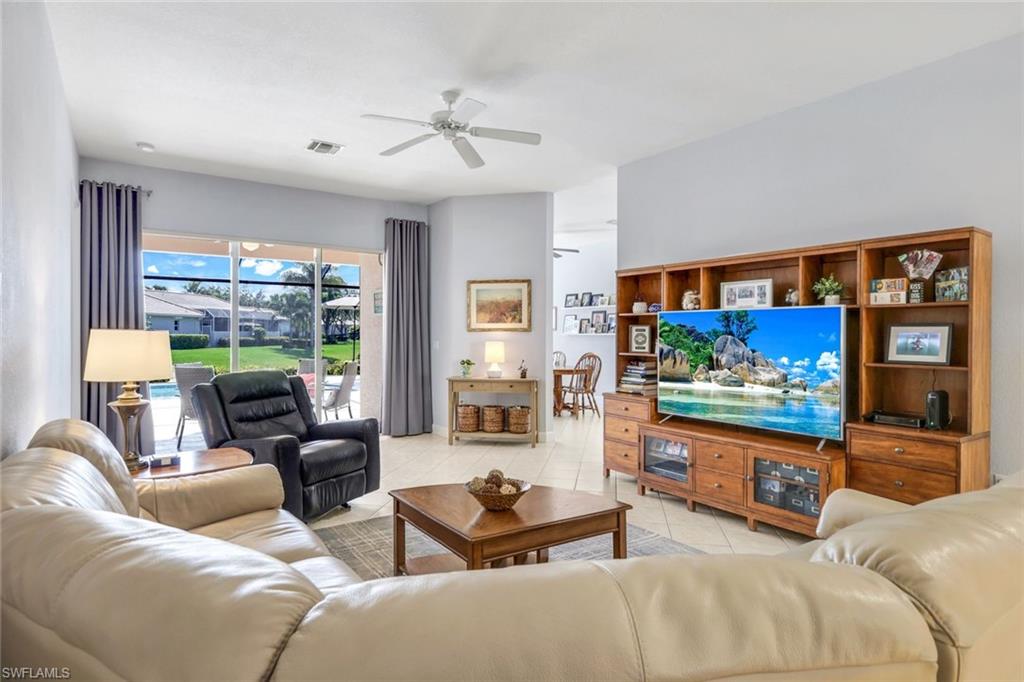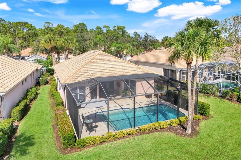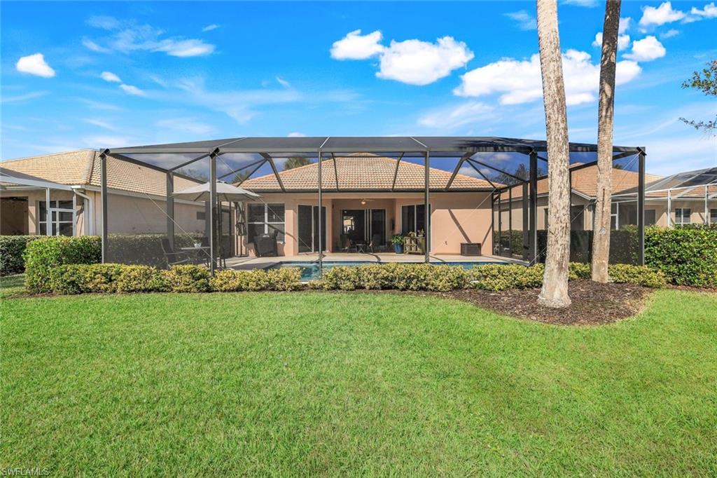 Gorgeous lake & fountain views can be found from the oversized lanai of this single family pool home located in the North Naples gated community of Carlton Lakes! This ever popular floor plan features 3 bedrooms plus a den, large family room, formal dining room, eat in kitchen space & 2 full baths. Notable features include volume ceilings, decorative archways and plantation shutters. You can enjoy relaxing pool side on your back lanai overlooking your large salt water pool with travertine decking and plenty of covered space for dining alfresco. Many improvements have recently been completed including a new Lennox AC, newer water heater (22), newer washer/dryer, newer kitchen appliances and closet organization systems. Carlton Lakes offers resort style amenities including clubhouse with 60 ft lap pool & hot tub, fitness room, tennis courts, bocce courts & fishing pier. Perfect for the Naples lifestyle. You are minutes to shopping, dining and Naples gorgeous white sand beaches. Sold with a 1 year home warranty for the new buyer at closing.