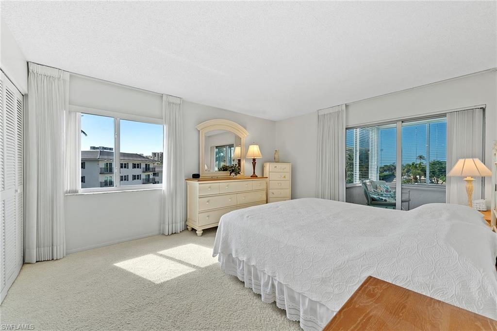 This two-bedroom, two-bath corner bayfront home at Harborside West is ideally in the highly desirable Moorings area. This meticulously maintained unit offers an open layout ready for your own personal customizations. The kitchen features a modern Samsung refrigerator, white appliances and granite countertops. With partial gulf views from every room and beach access directly across the street, you can enjoy the immaculate white sand beaches of Naples and soak in magnificent sunsets. Have peace of mind with secured entry, on-site management and a covered parking space. For those looking for income, you can lease your unit once a year for a minimum of 90 days. Be the first to experience the recently updated community room with a full kitchen ideal for entertaining, fitness room, extra storage, community pool, grilling facilities, bike and kayak storage and a fishing pier. Waterfront shopping and dining can be found at the nearby Venetian Village, as well as a host of additional shopping, dining and entertainment venues at 3rd St South, Mercato, Waterside Shops and historic downtown.