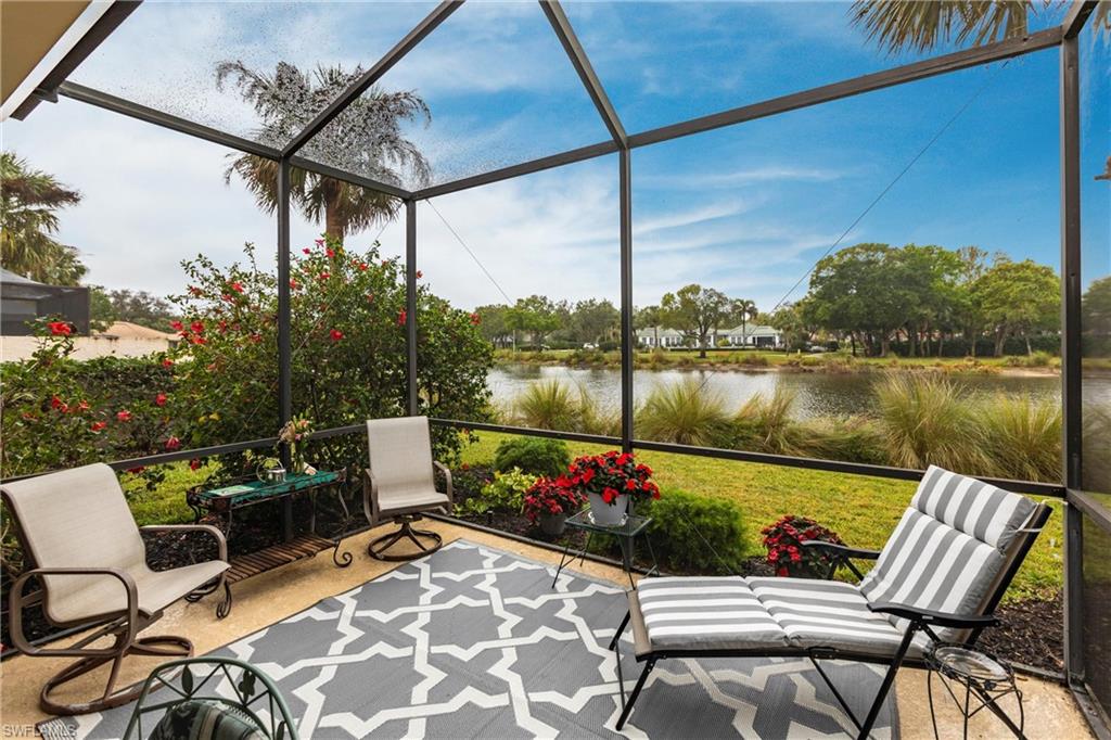 This property is one of the best positioned in all of Autumn Woods. It is across from the pool and perfectly captures lake sunsets. This turn key fully furnished 2- bedroom + den, 2 bath villa truly lives like a single family home. It is located in the highly desirable gated neighborhood of Autumn Woods in North Naples. The 1577 square foot home features a large, comfortable living area that opens up onto the spacious lanai overlooking the lake and across from the community center and pool area. It boasts a graciously sized dining area and kitchen with brand new appliances and plentiful cabinet space. The expansive en-suite primary bedroom overlooks the lake, has a large walk-in closet and full bathroom with an oversized shower and dual sinks. Highly sought after for both its family-friendly atmosphere and vibrant social life, Autumn Woods totes an array of amenities, including pickleball, tennis, and basketball courts, as well as two swimming pools, jacuzzi, playground, fitness center, clubhouse, and 24-hour security. The community of Autumn Woods encompasses 300 acres with many lakes and 26 acres of lush preserve and walking trails. Children attend Collier County’s top public schools: Seagate Elementary, Pine Ridge Middle, and Collier County High School. In addition, the private Village School is located right next door to the community.