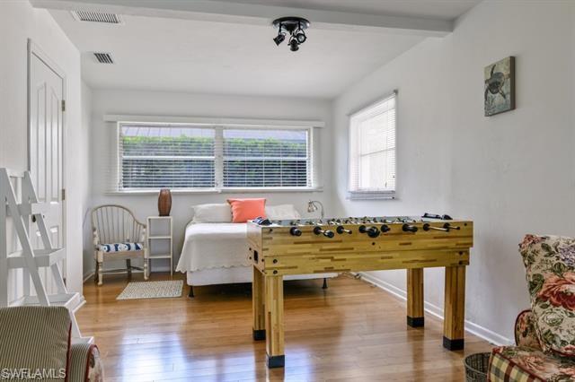 Prime location near downtown Naples, mall, shopping areas, restaurants, sugar-sand beaches and private beach facilities. Oversized beautifully landscaped lot. Build your dream home, remodel this home for yourself or rent it out. Sold As-Is with right to Inspect. Attached garage was converted in additional bedroom, bathroom and closet in 2014. Separate two-story garage building in rear for three or more cars, boat, kayak, etc. (Also has 2-story air-conditioned workshop, office or art studio.) The home stayed high and dry during Hurricane Ian and is located in a highly desirable X-zone. Moorings residents will appreciate the voluntary Moorings Beach club