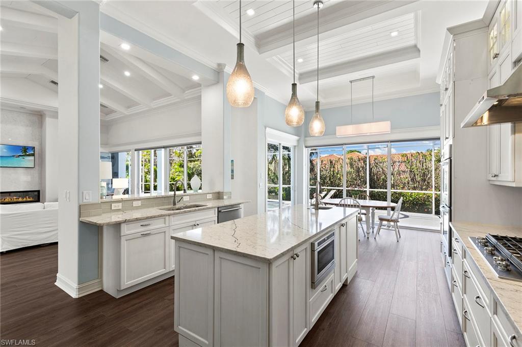 JUST REDUCED! HOME NOW PRICED AT $700K BELOW RECENT CARROLL & CARROLL APPRAISAL. This beautiful 2010 single-family home in the prestigious Park Shore neighborhood of Naples has been thoughtfully redesigned and updated throughout with luxurious finishes, and offers an open-concept floor plan featuring four bedrooms, three and a half baths, a study, and a formal dining room. Step inside to soaring ceilings, where the great room captivates with vaulted beams and an elegant built-in fireplace. Sliding doors across the whole back of the house overlooking the pool area. The adjacent chef’s kitchen is a masterpiece, showcasing quartz countertops, lighted display cabinets, a built-in stainless-steel refrigerator, a 5-burner gas stovetop, a double wall oven, and a wine cooler—ideal for effortless entertaining. The sophisticated study features exquisite trimwork and a coffered ceiling, creating an inspiring and versatile space. The primary suite serves as a serene retreat, complete with a spa-like ensuite bath, oversized walk-in closets, and private access to the outdoor living area. Designed for seamless indoor-outdoor living, the expansive screened lanai boasts an outdoor kitchen, a covered lounging area, and a saltwater pool and spa, all enveloped by lush tropical landscaping. Additional highlights include high quality surround sound, whole-home water filtration system and exterior leaf guards for enhanced comfort and convenience. Air conditioned garages for three cars - complemented by a circular paver driveway providing extra parking. Residents of Park Shore enjoy eligibility for membership in the Park Shore Association, offering exclusive beach park access and an unparalleled Naples lifestyle. Venetian Village is less than a mile away, providing upscale shopping, waterfront dining, and breathtaking bay views. This home is a must see!
