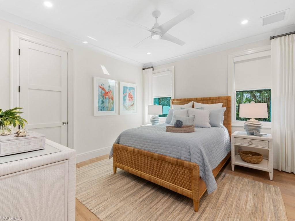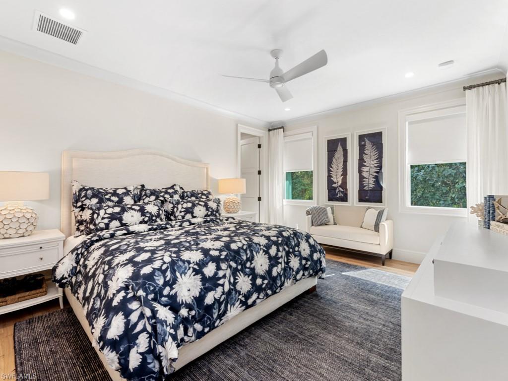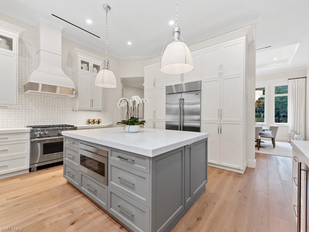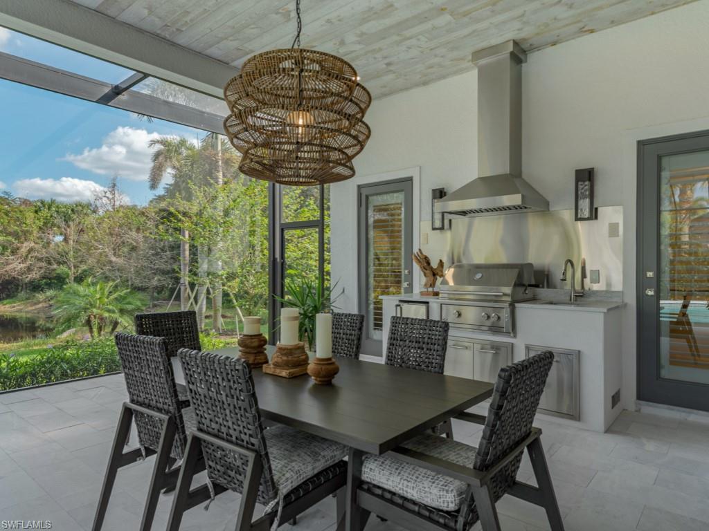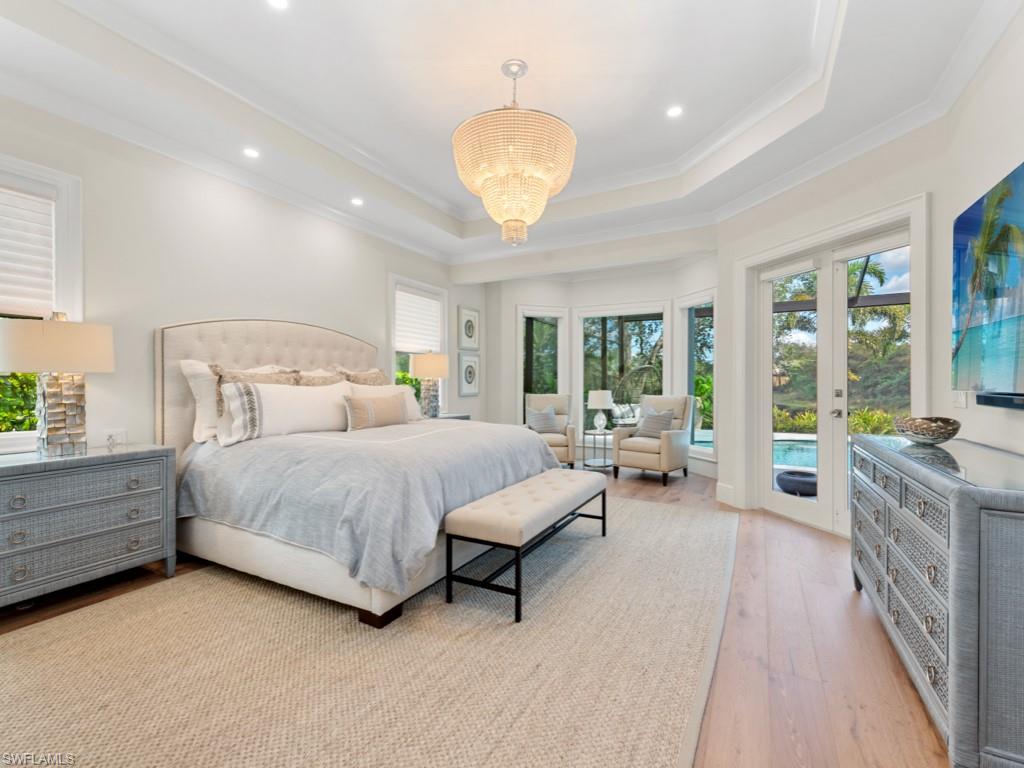 Located in the beautiful golf & country club community of Mediterra in Naples that offers a newly renovated private beach club, this totally updated estate exudes sophistication from the moment you step through the new rich carved hardwood front door into an ambiance of elegance. The heart of the home, a chef’s dream kitchen, features two expansive center islands, new premium cabinetry and appliances, including a SubZero refrigerator, a Wolf gas range, a wine cooler, a microwave drawer and a charming breakfast nook to the side. Flowing seamlessly from the kitchen, the formal living area is accentuated by a stunningly beautiful stone accent wall with a contemporary linear gas fireplace. In the family room the views are a bonus through the zero-corner sliding doors, inviting the outdoors in and leading to a breathtaking veranda with tasteful wood-planked ceiling. The formal dining room is adorned with custom-milled trim work and detailed tray and coffered ceilings, mirroring the home’s meticulous craftsmanship throughout. New designer light fixtures illuminate the exquisite wood and tile flooring that graces the living spaces. The primary suite, a private sanctuary with a sitting area, exclusive lanai access, two custom walk-in closets with built-ins and two en-suite baths that redefine indulgence, offering separate his-and-hers spaces with luxurious walk-in showers, a soaking tub, multiple shower heads, and a bidet. Designed for effortless indoor-outdoor living, the estate boasts impact windows and doors, a whole-home generator, and hurricane shutter screens for ultimate peace of mind. The outdoor oasis features a resort-style pool and spa with upgraded tile, a spacious covered lanai, a stone-accented fireplace with casual seating, and an outdoor kitchen and dining area—all set against a serene lake backdrop with new landscaping, including avocado trees. A three-car, air-conditioned garage, a comprehensive security system with cameras, linear A/C vents, and meticulously updated ceilings further elevate the home’s grandeur. Mediterra is a prestigious luxury golf & country club community featuring Two championship Tom-Fazio golf courses for avid golfers, a private beach club with restaurant & bar, multiple tennis courts, pickle-ball & bocce, fitness center, pristine bike & jogging trails, and luxurious dining at the private country club restaurant. The Mediterra Beach Club offers an escape to a 10,000 sq. ft two-story private oceanfront paradise on the Gulf of Mexico. Featuring a restaurant & bar that serves members via indoor & outdoor dining, this private facility boasts a heated swimming pool, a sundeck, and cabana beach service for chairs, umbrellas & refreshments.