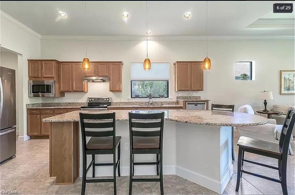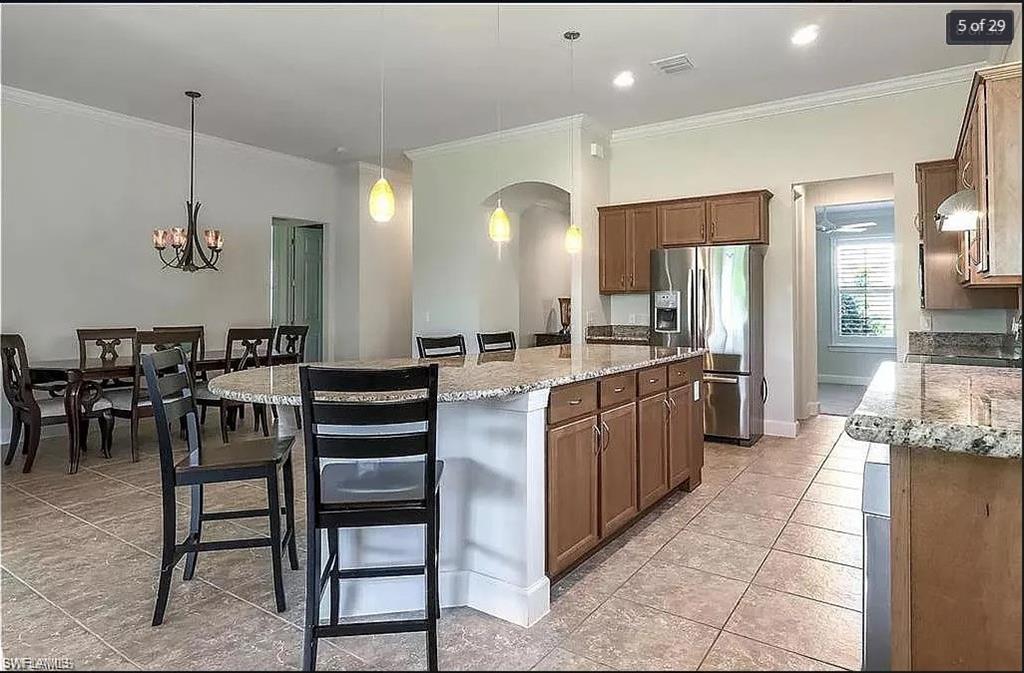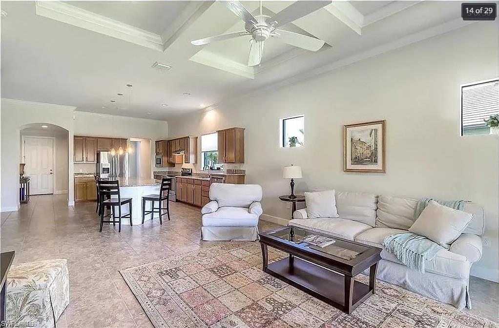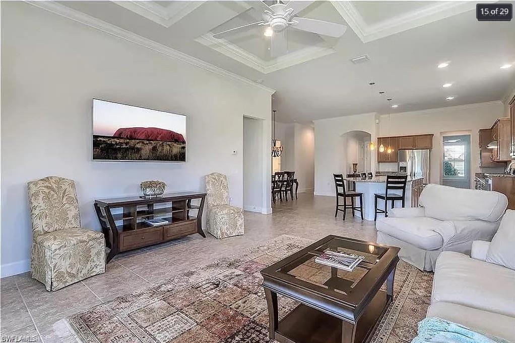 Nestled in the prestigious gated community of Corkscrew Shores, this beautifully maintained 3-bedroom, 2-bath home offers an open-concept design with elegant tile flooring throughout. The gourmet kitchen boasts granite countertops, wood cabinetry, stainless steel appliances, and a spacious island overlooking a bright living area with coffered ceilings. The tranquil primary suite features a tray ceiling, an en-suite bath with dual vanities, a walk-in shower, and a generous closet. Step outside to the screened lanai and enjoy peaceful preserve views. Corkscrew Shores is centered around a breathtaking 240-acre turquoise lake, stocked with sport fish and offering a kayak launch, fishing dock, and fire pit. Residents enjoy world-class amenities, including a resort-style pool, clubhouse with a restaurant and outdoor bar, fitness center, and courts for pickleball, tennis, and bocce. With miles of scenic walking trails and a vibrant community atmosphere, this home offers the perfect balance of luxury and nature. Schedule your private tour today!