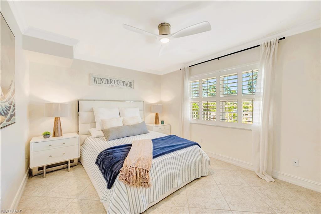 Bring your boat and your toothbrush! This unique waterfront, second floor end unit #109 offers a fully furnished, open floor plan with two screened lanais, two covered parking spaces, and easy boating access to Naples Bay. Features include three bedrooms, two bathrooms, an updated kitchen, 19-inch tile throughout, in-unit laundry, wheelchair accessibility, hurricane impact windows, plantation shutters, new lighting, new ceiling fans, and fresh paint. Conveniently located less than a mile from Tin City and the 5th Avenue restaurants, this charming Sea Eagle community includes 18 units which are hurricane resistant due to the building’s elevated structure. No units have been damaged by any hurricanes. Enjoy the beautiful pool and the spacious covered patio area with your guests and neighbors. Other amenities include an elevator, individual storage lockers, a bicycle storage room, and a conveniently located garbage chute. Sea Eagle is a boater's paradise. Boat slips are available at no additional cost. Enjoy a short boat ride to dinner at The Boat House, The Dock, Celebration… etc. Take a leisurely ride along the intercoastal waterway to Keewaydin Island and Marco Island. Come check out this rare opportunity for yourself