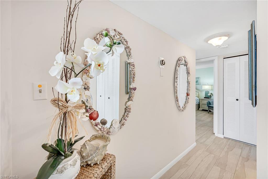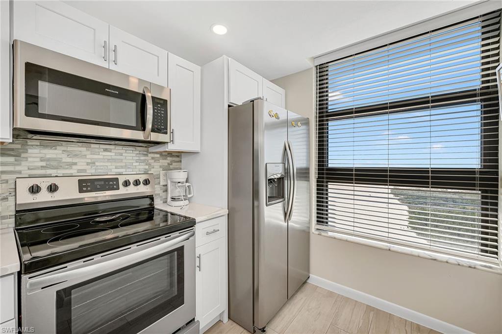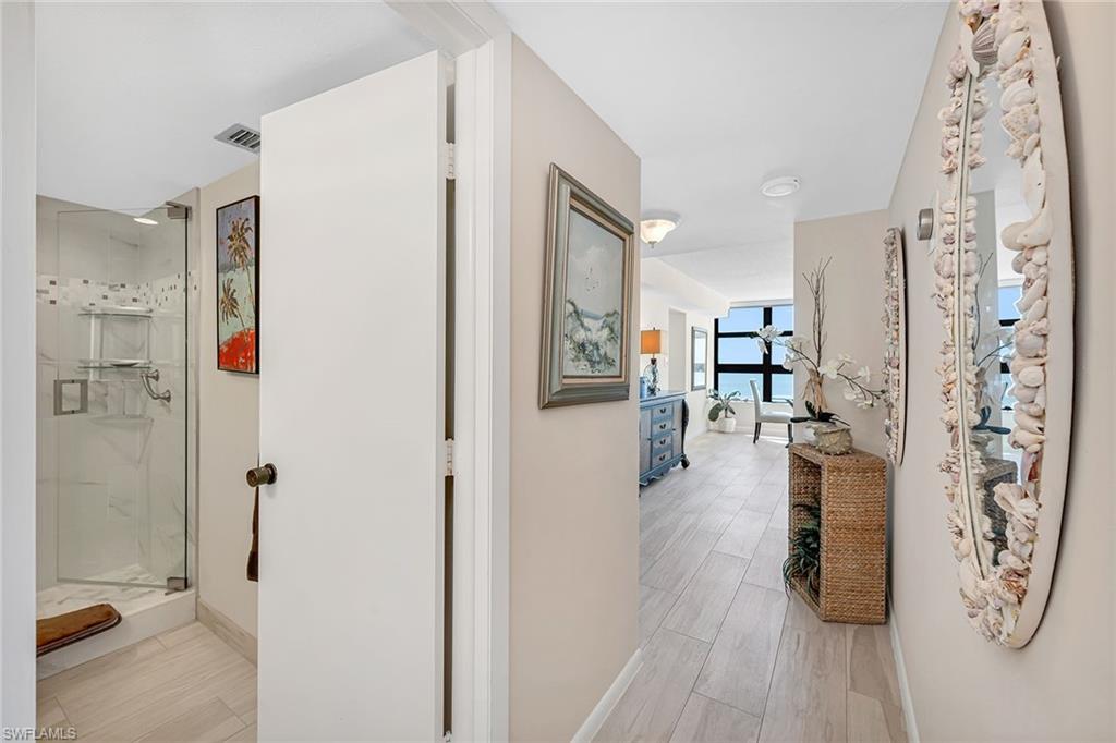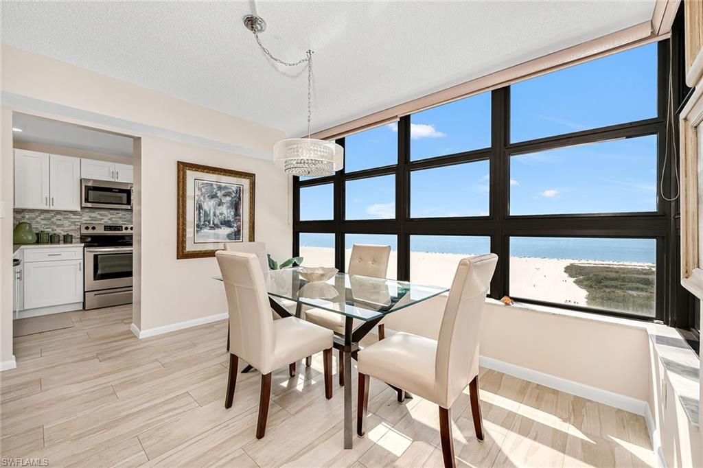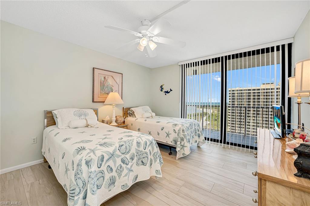 Experience unparalleled coastal living in this rarely available front-facing two-bedroom, two-bath condominium on the 15th floor of the newly remodeled second tower of South Seas. This residence boasts a wraparound balcony that offers wide, unobstructed views of Marco Island's pristine beaches and Gulf of Mexico, including the picturesque Tigertail Beach. Enjoy the sight of pelicans gliding by at eye level as you relax on your expansive patio. Inside, the unit has been meticulously updated to feature elegant tile flooring throughout, a modern kitchen adorned with high-end quartz countertops, contemporary cabinetry and top-tier appliances. Both baths have been tastefully remodeled with sophisticated tilework, and ample closet space is available to accommodate you and your guests. Impact-resistant glass doors and windows throughout the unit provide enhanced safety and tranquility. As a resident of the South Seas community, you'll have exclusive access to a private beach, pickleball and tennis courts, available boat slips, a new state-of-the-art fitness center and a golf practice putting green. Additional conveniences include covered parking and a dedicated storage locker. Seize this rare opportunity to own a stunning waterfront retreat that ideally blends luxury with nature's beauty.