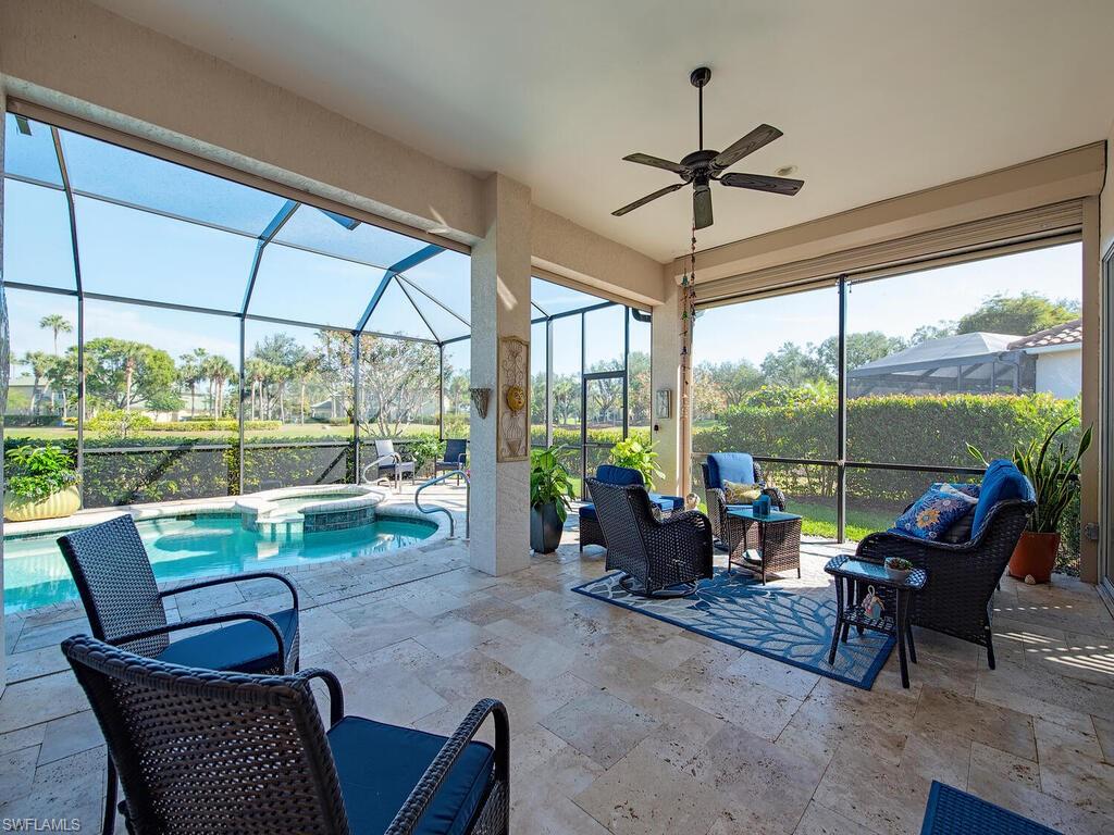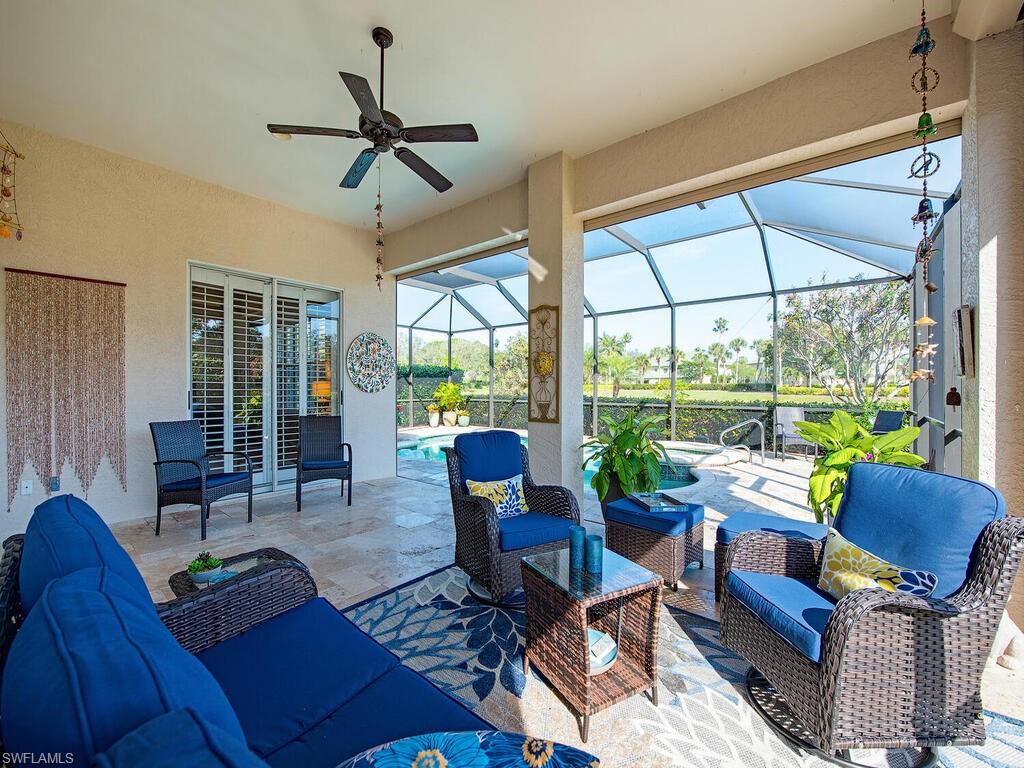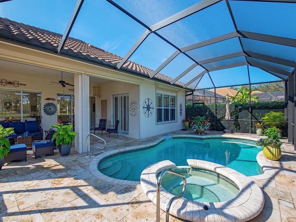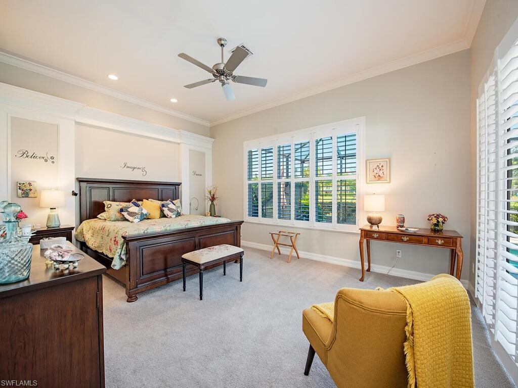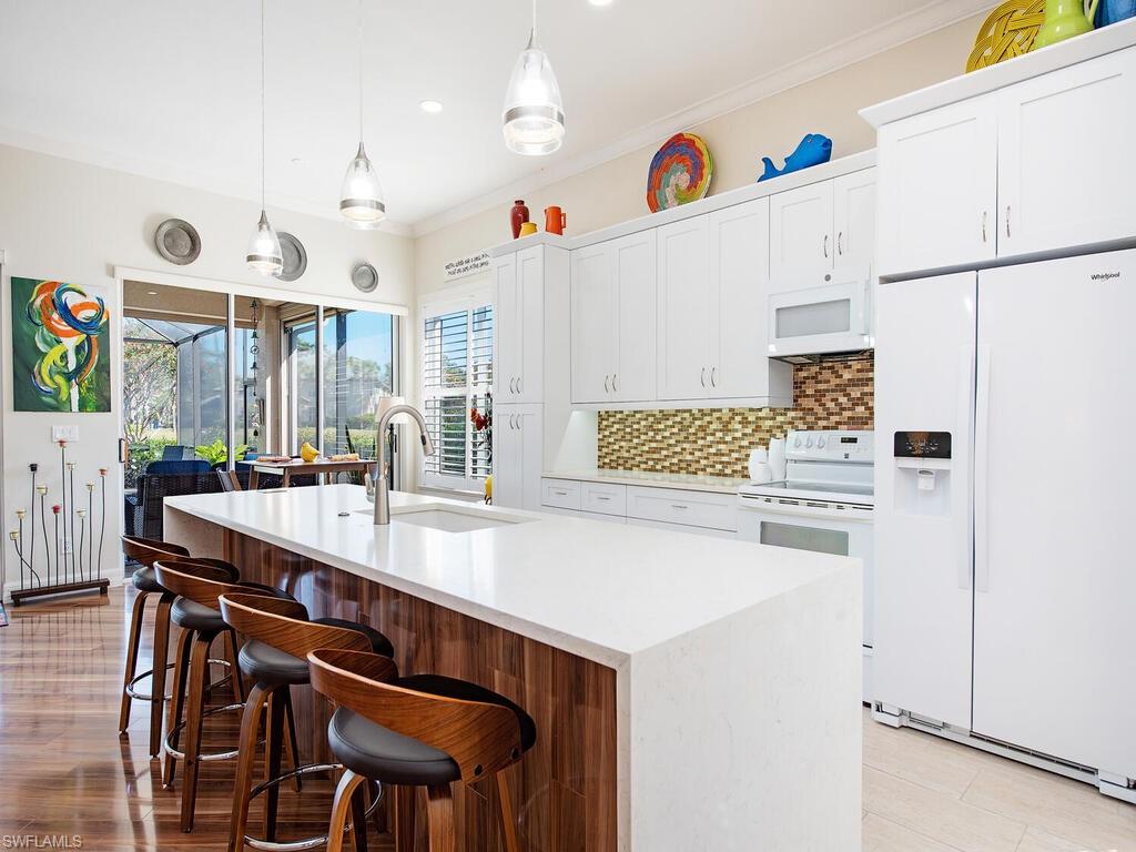 Plenty of light and views of the lake will greet you as you enter this updated 3 bedroom/den, 2.5 bathroom home in the sought after community of Capri in Pelican Landing. Pelican Landing is one of the premier communities in Bonita Springs offering unparalleled amenities including a private beach club on Big Hickory Island. The recently designed open concept great room layout in this home is surely what you've been looking for! Volume ceilings, plantation shutters and crown molding are just a few of the high end finishes that make this home a standout! The updated kitchen offers plenty of storage and counterspace with its oversized, waterfall island, opening to the great room. The great room layout is perfect for entertaining with plenty of seating at the formal dining area, eat in kitchen and breakfast bar. The expansive primary bedroom has plenty of room for a seating area or desk, and has access to the lanai. A split bedroom floor plan offers privacy for you and your guests. The lanai, recently updated with travertine pavers has plenty of room for time in the sun or undercover shade and is a quiet retreat with plenty of privacy. The lake, directly behind the home allows you to take in all the beautiful wildlife Pelican Landing and SWFL have to offer. Pelican Landing offers numerous amenities including: a private beach club on the beautiful Big Hickory Island, 12 Har-tru tennis courts, Pickleball and Bocce ball. Canoe, kayak and sail on Estero Bay while exploring the beauty of Florida and its wildlife. Golf and Social Memberships may be available at The Nest, two 18-hole Tom Fazio designed golf courses. While here you can enjoy countless activities due to the proximity of Naples and Ft. Myers. When the day is done, relax and enjoy the privacy and beautiful lake views from your lanai. Pelican Landing is a gated community located west of 41 and minutes from fine dining and shopping. A quick 20 minutes from RSW airport is a plus! Don’t miss your chance to make this house YOUR home!