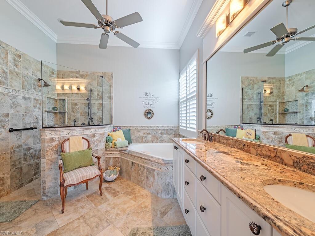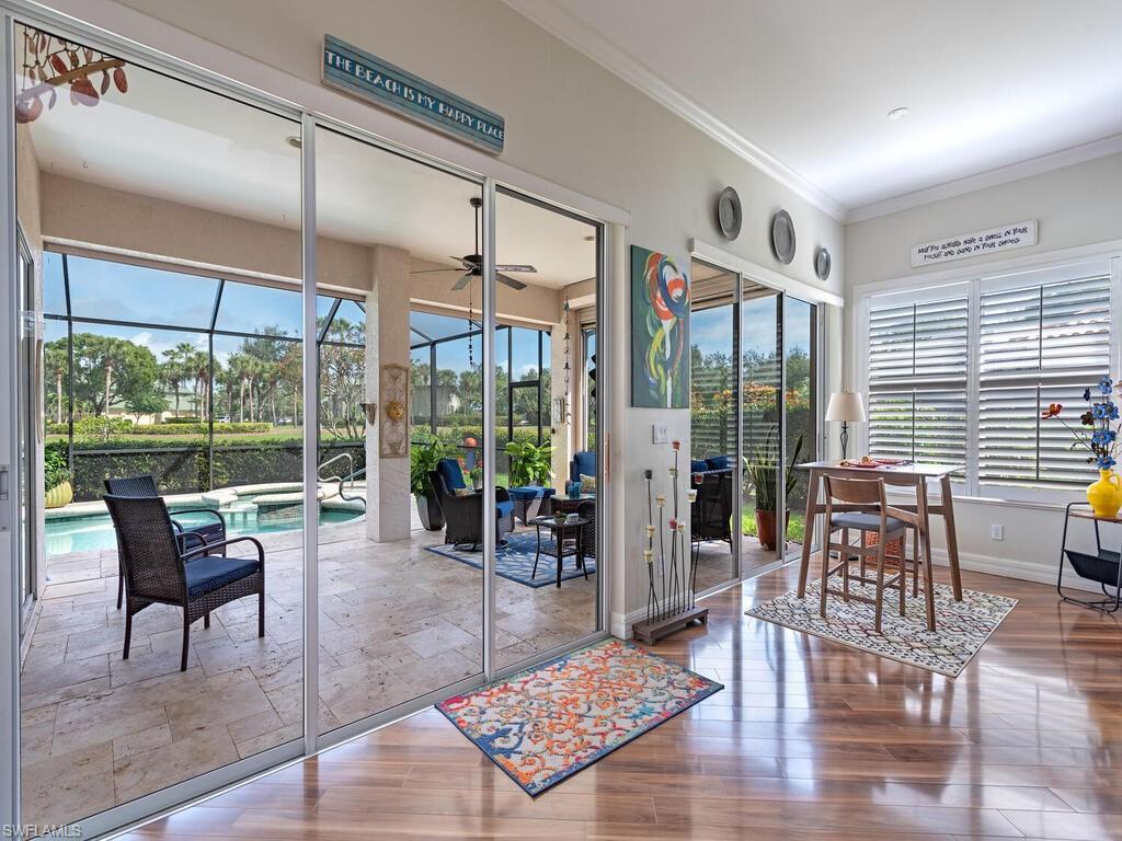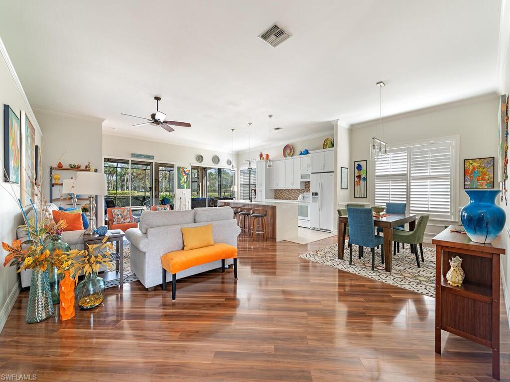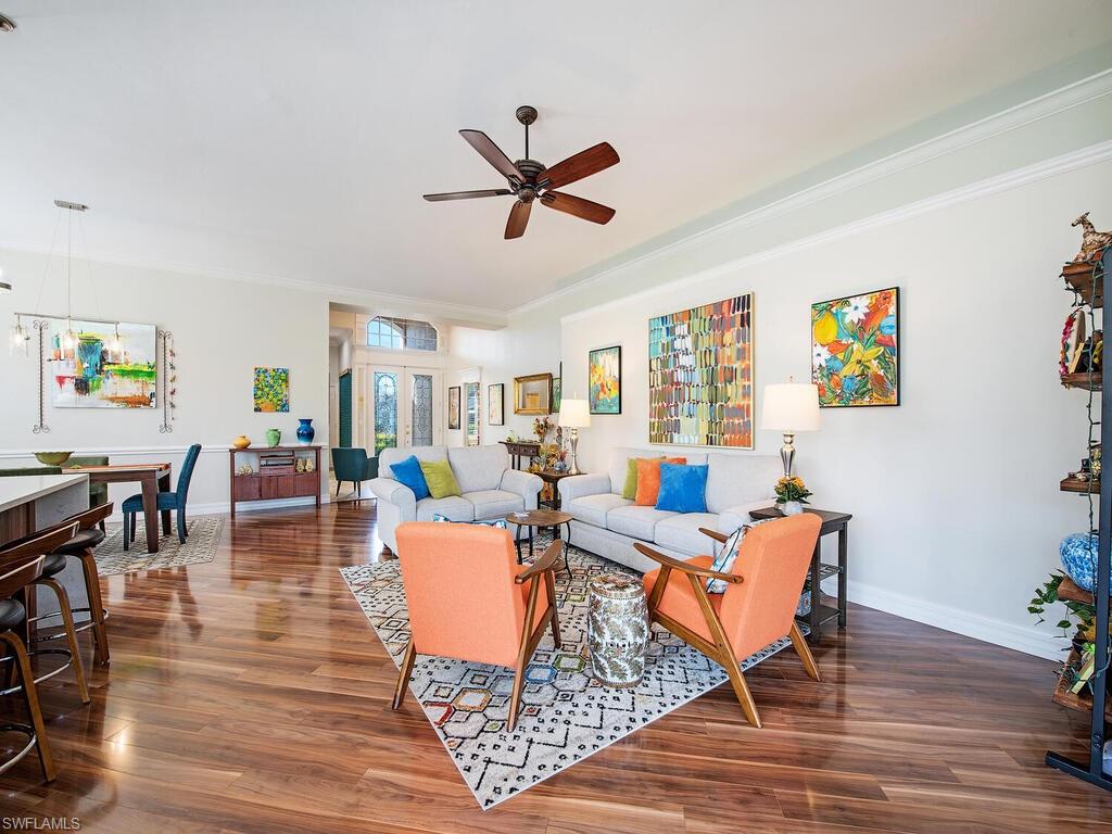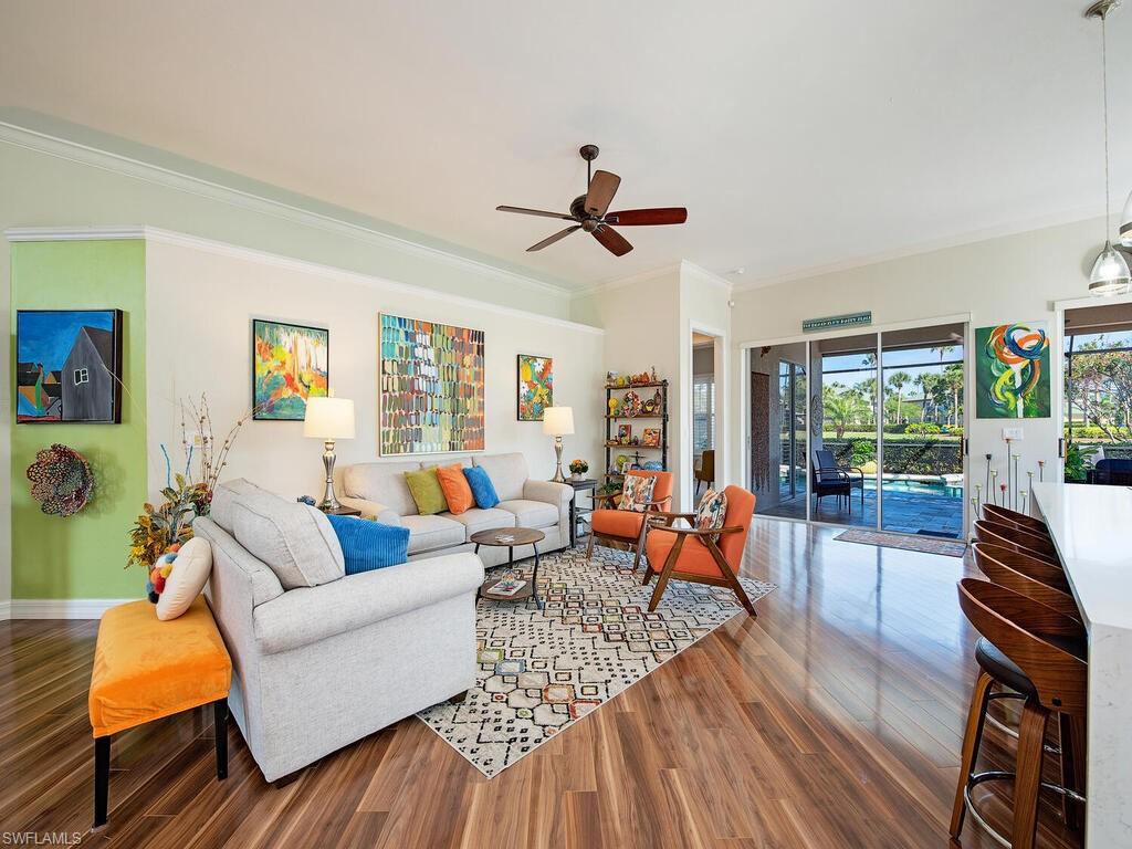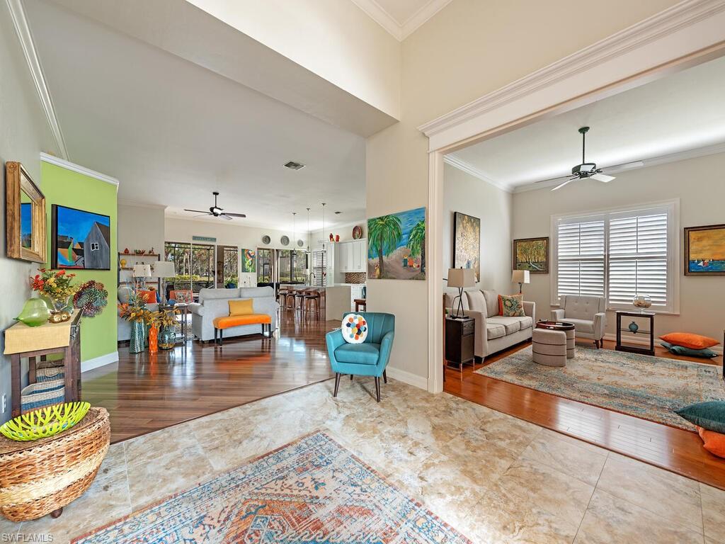 Plenty of light and views of the lake will greet you as you enter this updated 3 bedroom/den, 2.5 bathroom home in the sought after community of Capri in Pelican Landing. Pelican Landing is one of the premier communities in Bonita Springs offering unparalleled amenities including a private beach club on Big Hickory Island. The recently designed open concept great room layout in this home is surely what you've been looking for! Volume ceilings, plantation shutters and crown molding are just a few of the high end finishes that make this home a standout! The updated kitchen offers plenty of storage and counterspace with its oversized, waterfall island, opening to the great room. The great room layout is perfect for entertaining with plenty of seating at the formal dining area, eat in kitchen and breakfast bar. The expansive primary bedroom has plenty of room for a seating area or desk, and has access to the lanai. A split bedroom floor plan offers privacy for you and your guests. The lanai, recently updated with travertine pavers has plenty of room for time in the sun or undercover shade and is a quiet retreat with plenty of privacy. The lake, directly behind the home allows you to take in all the beautiful wildlife Pelican Landing and SWFL have to offer. Pelican Landing offers numerous amenities including: a private beach club on the beautiful Big Hickory Island, 12 Har-tru tennis courts, Pickleball and Bocce ball. Canoe, kayak and sail on Estero Bay while exploring the beauty of Florida and its wildlife. Golf and Social Memberships may be available at The Nest, two 18-hole Tom Fazio designed golf courses. While here you can enjoy countless activities due to the proximity of Naples and Ft. Myers. When the day is done, relax and enjoy the privacy and beautiful lake views from your lanai. Pelican Landing is a gated community located west of 41 and minutes from fine dining and shopping. A quick 20 minutes from RSW airport is a plus! Don’t miss your chance to make this house YOUR home!
