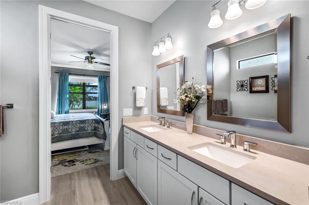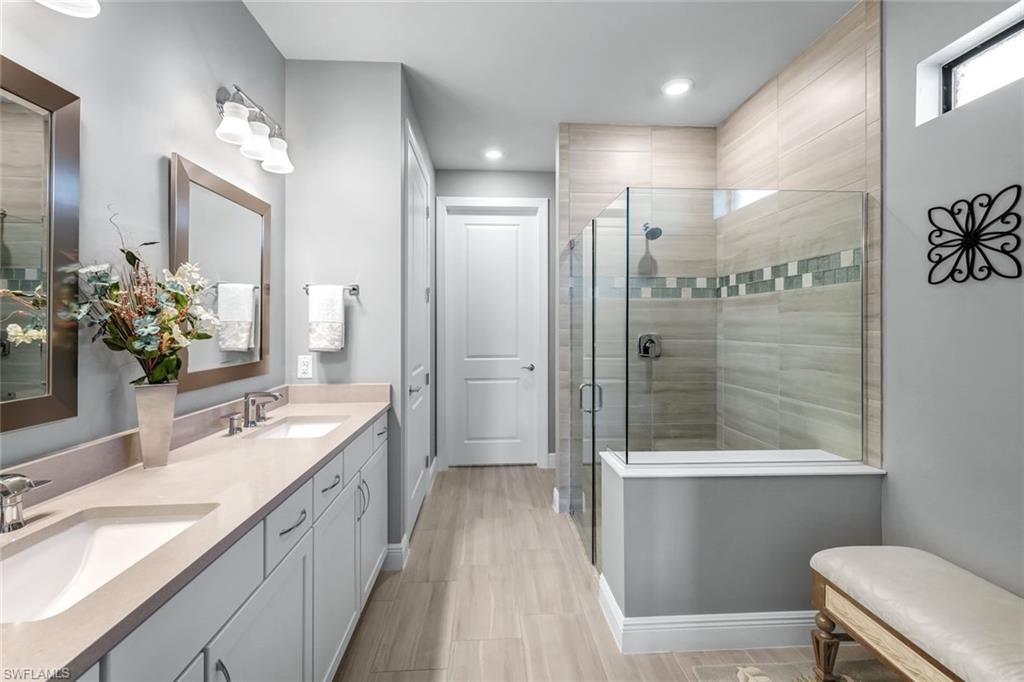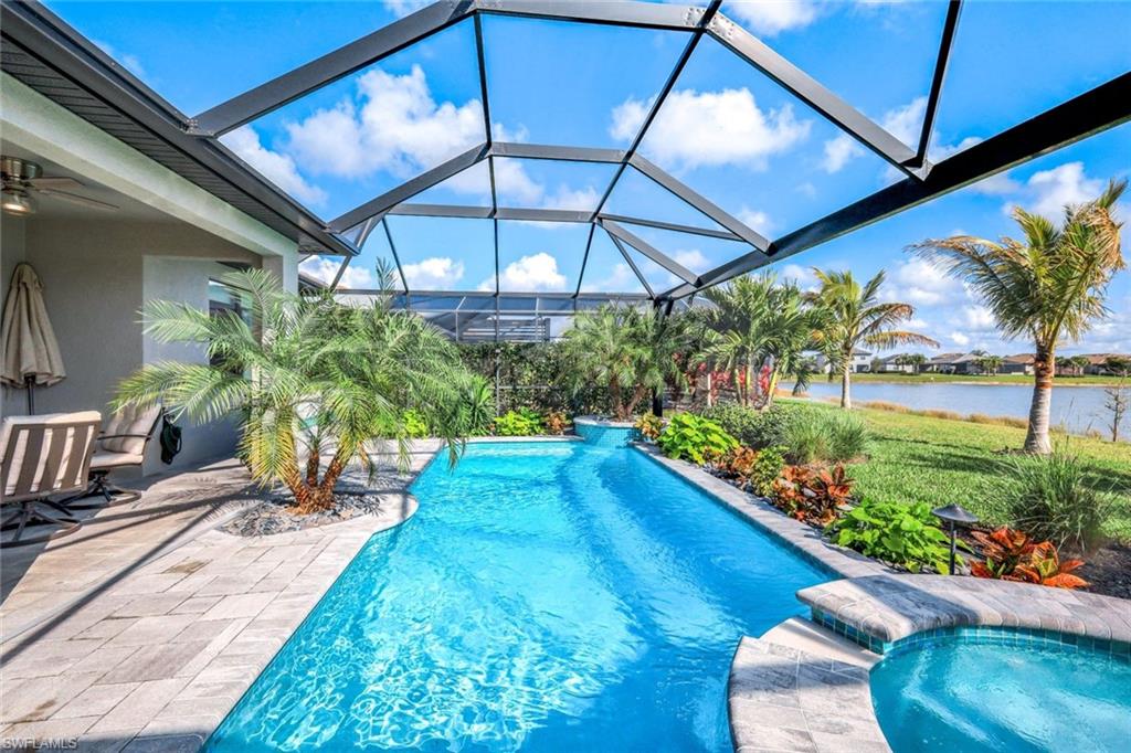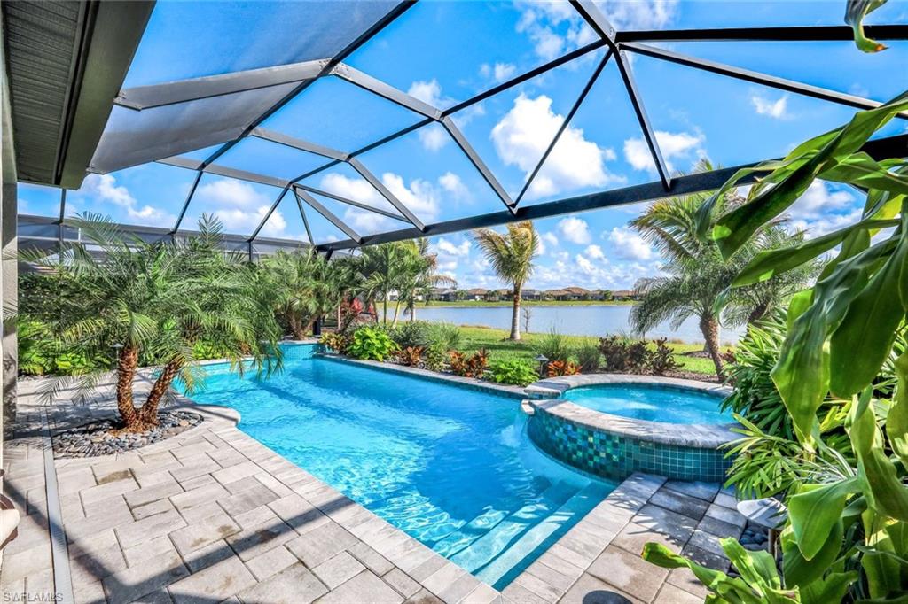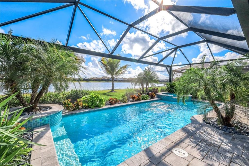 Imagine a breathtaking lakefront home that exudes luxury and serenity, nestled in a pristine, beautifully landscaped setting. This stunning Summerwood home features a lush pool and spa area that feels like a private resort. The custom pool is surrounded by tropical greenery, swaying palms, and vibrant flowering plants, creating a tranquil oasis with unobstructed views of the shimmering lake. The outdoor area is enhanced with expansive covered lanai seating, landscape accent lighting, creating a magical evening atmosphere by the water. This home is also equipped with impact windows and doors. Inside, the home is in pristine condition, showcasing high-end finishes and meticulous attention to detail. The grand entry opens to an expansive living space with sleek porcelain tile flooring that gleams with natural light. The open-concept design with custom wood detail throughout flows effortlessly into the gourmet kitchen, featuring quartz countertops, top-of-the-line stainless steel appliances, and a large center island with bar seating. The primary suite is a luxurious retreat, with tranquil lake views, and a spa-like bathroom with a spacious glass-enclosed shower and dual vanities with quartz countertops in addition to a custom walk-in closet providing ample storage space with built-in organizers. The entire property is a showcase of fun features and tasteful finishes for the most decerning buyer. The Place at Corkscrew in Estero, Florida, offers a wide range of amenities designed to provide a luxurious and active lifestyle for its residents which includes Resort-Style Pool Area, Dining and Social Venues, Fitness and Wellness, Sports and Recreation with plenty of Additional Features for the family to enjoy!