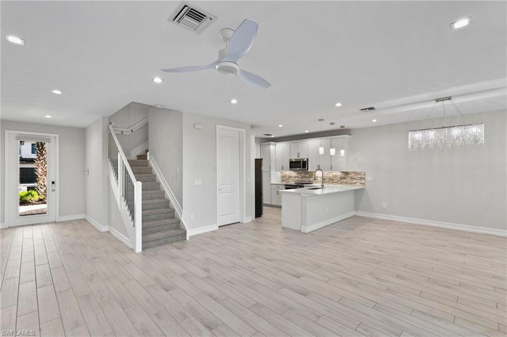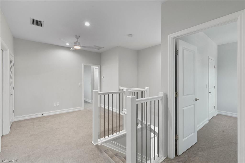 Welcome home to this beautifully appointed 3-bedroom, 2.5-bathroom townhouse, featuring the highly sought-after Breakers floor plan. Designed for modern living, this home boasts an open-concept layout with upgraded appliances, stylish flooring, and plantation shutters on all windows. Impact windows and doors provide peace of mind, while ceiling fans in every room ensure year-round comfort. Enjoy gorgeous western exposure lake views from your extended screened-in lanai—an ideal space for relaxing or entertaining. The spacious bedrooms offer ample storage with walk-in closets, and the primary suite is complete with a luxurious frameless glass shower door. Located in a top-rated school district and just minutes from the beach, shopping, dining, and entertainment, this home combines convenience with tranquility. Plus, with low HOA fees that include cable and WiFi, you’ll enjoy both comfort and value. Perfect for a second home, primary residence, or investment property! No flood insurance required! Don’t wait—schedule your showing today!
