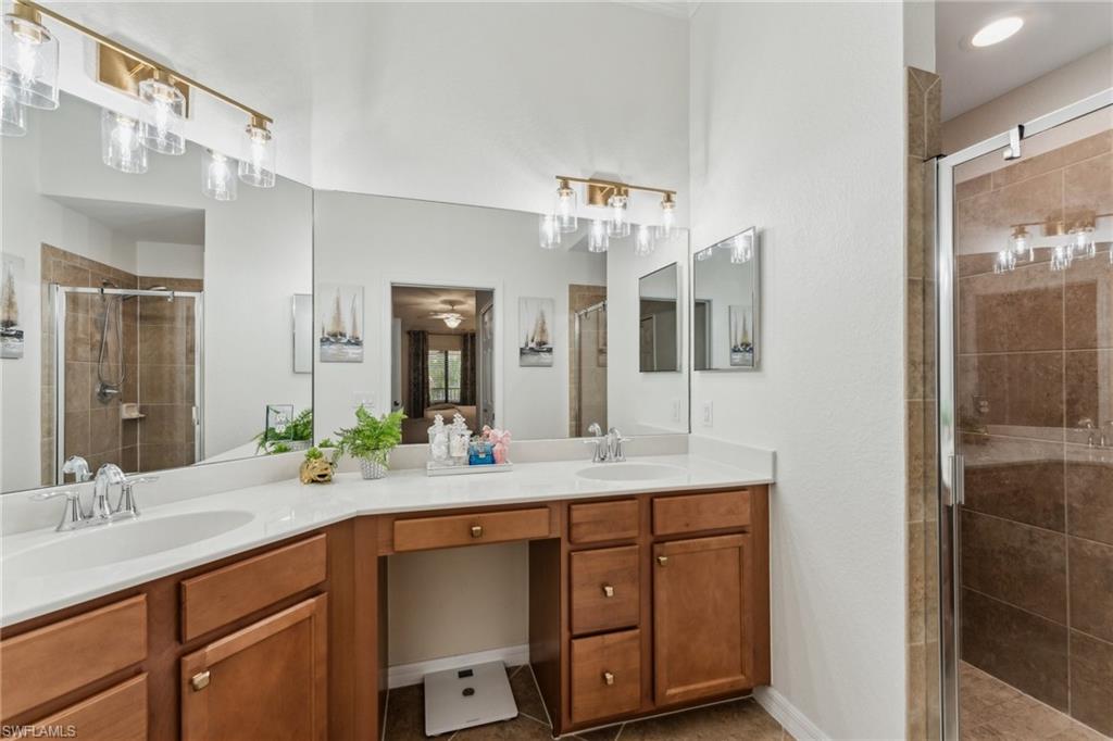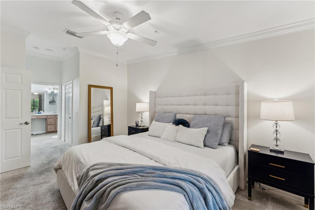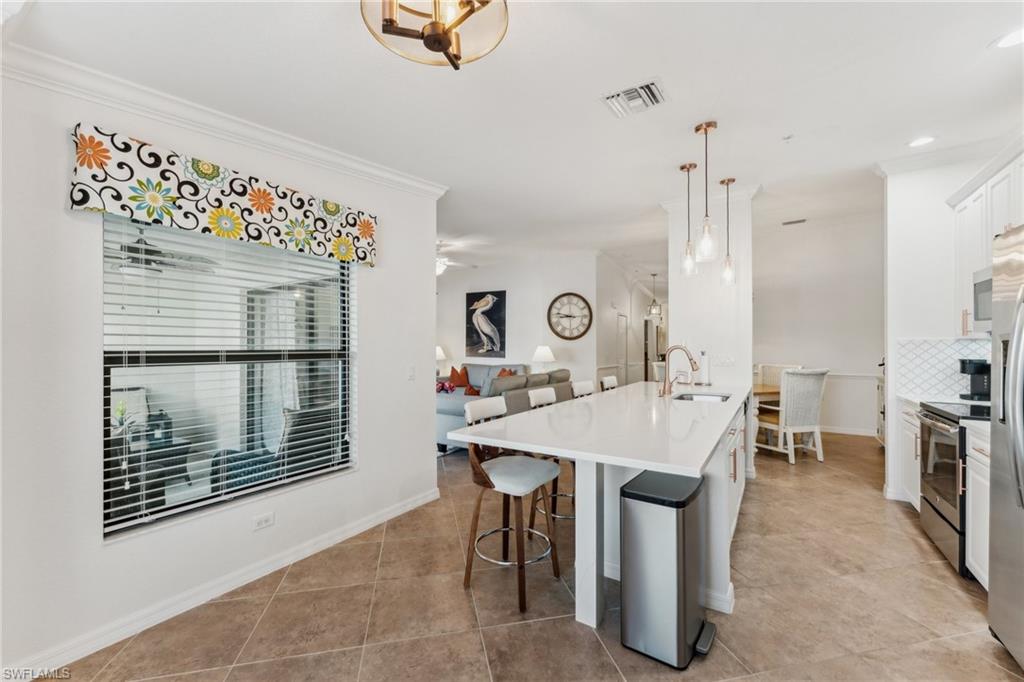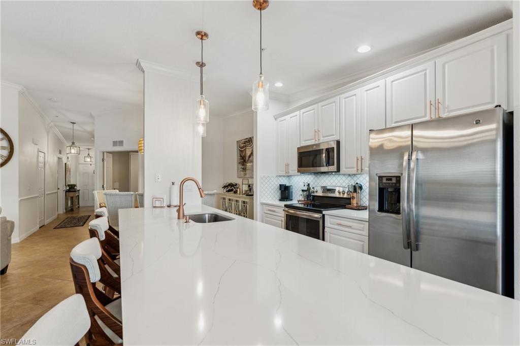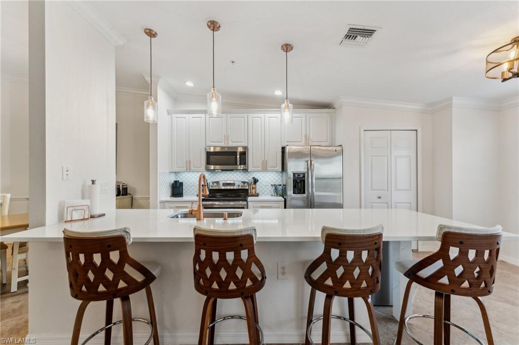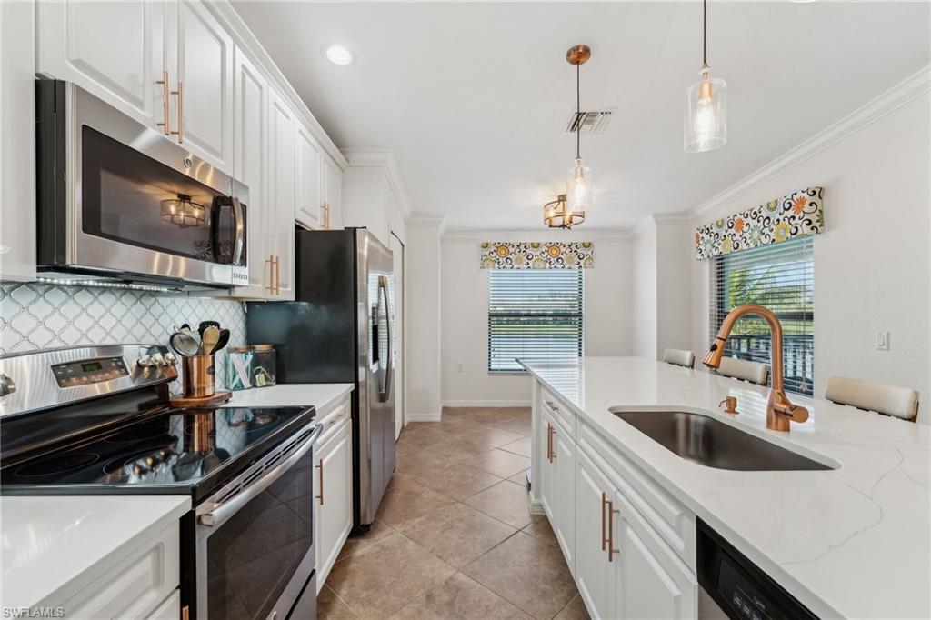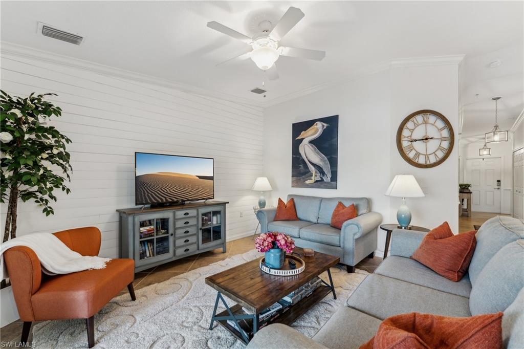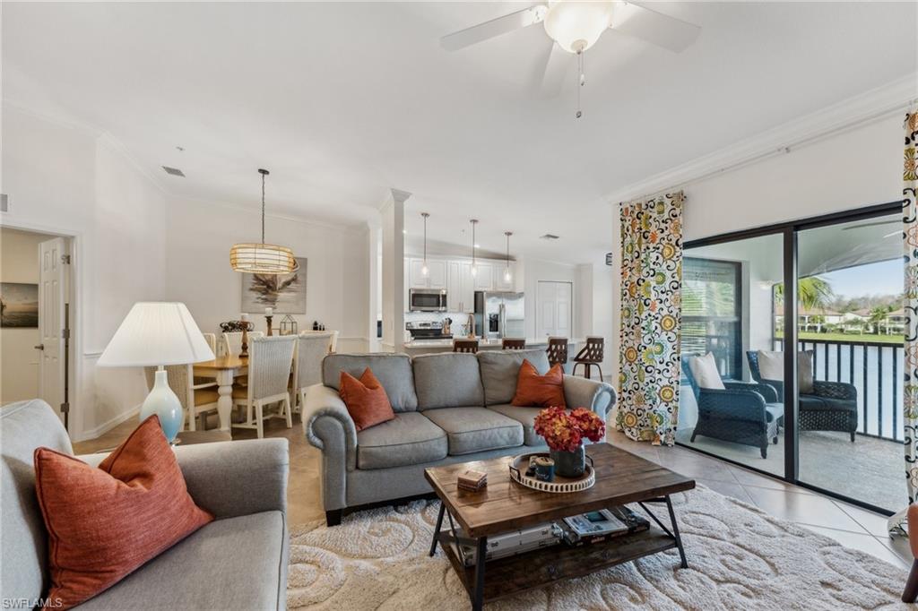 Immaculate, upgraded second-story Veranda unit in the highly sought-after gated community of Treviso Bay! This lake-view, 2 Bed + Den and 2-Bath condo in Avellino is being sold turnkey-furnished and ready for move in. The many upgrades include a brand new modernized kitchen featuring quartz countertops, a single-basin sink, tiled backsplash, and fresh white cabinets. Also, enjoy custom window treatments throughout, upgraded light fixtures, new paint, wall wood trimming, meticulous living room wall wood work, and a custom pulldown bed in the den to utilize space. Enjoy the many 5-star amenities: two clubhouses with dining, a resort-style pool, pickleball, tennis, basketball, bocce, aerobics and fitness facilities, spa and beauty salon, sauna, hot tub, grills, the 18-hole Arthur Hills golf course, and much more. Treviso Bay is located only a short drive from downtown 5th Ave, the Isles of Capri, Marco Island and the many beaches of southwest Florida.
