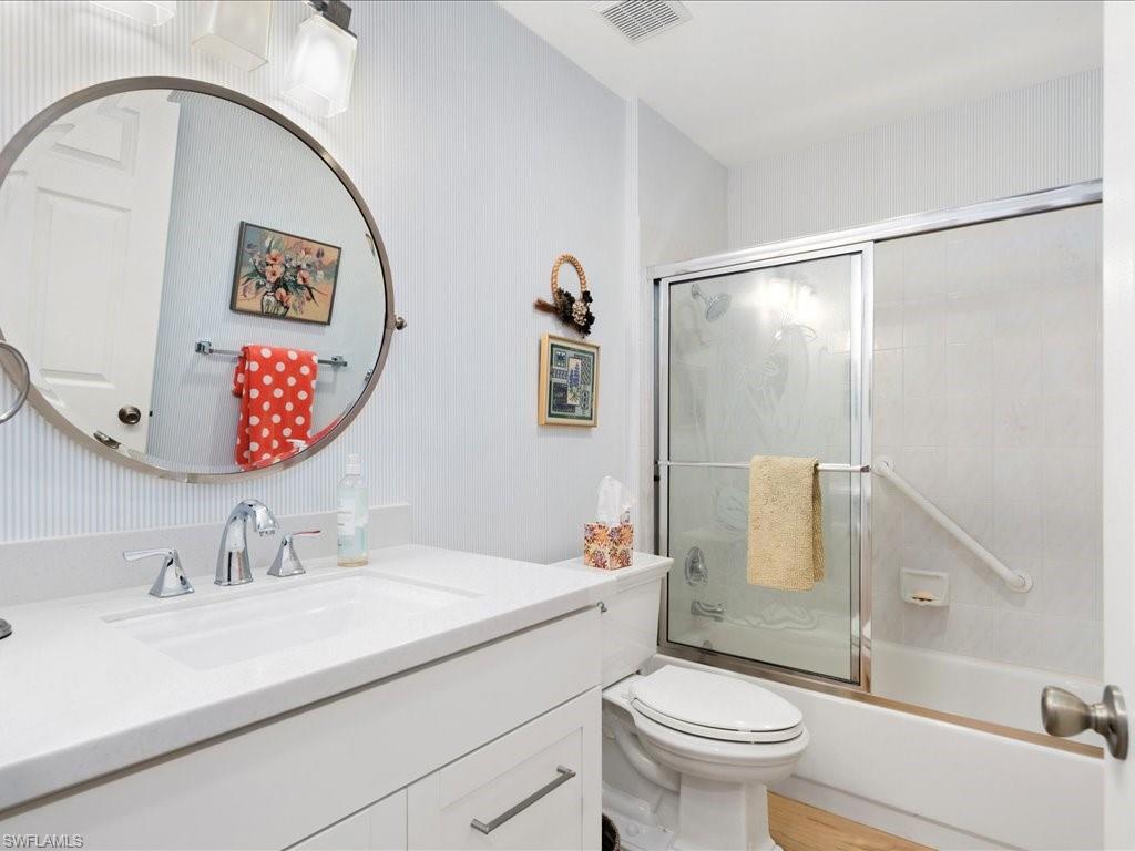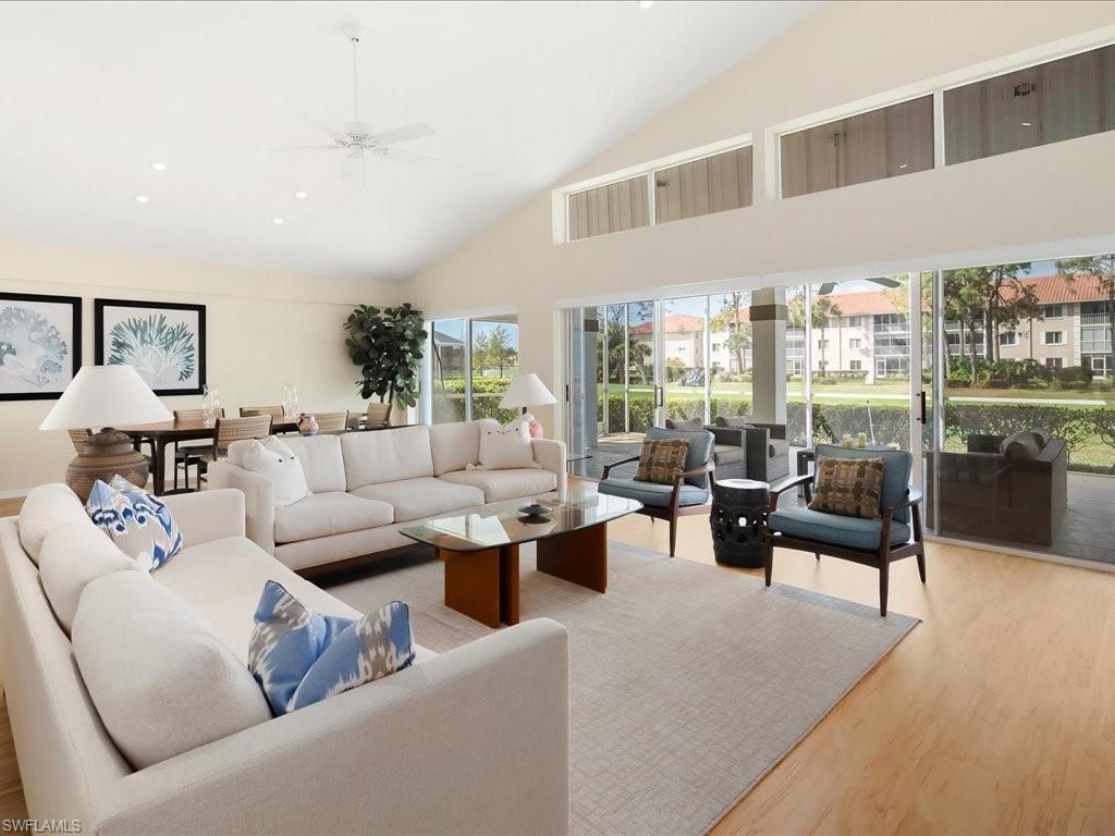 IMMEDIATE GOLF membership with purchase! Gorgeous sweeping golf course views greet you in this 3 bedroom, 2 full bath Royal Wood Golf and Country Club home. Hard surface flooring throughout all main living areas, fully remodeled primary bath with oversized walk in primary closet which has built in shelves. Primary bedroom has private walk out to the lanai. Vaulted ceilings in Living area which flows out to outdoor living area with a full wall of sliders to enjoy the large lanai. Kitchen is well laid out including large pantry and walk out to second patio for outdoor grilling. Spacious corner lot adds additional privacy. Close proximity to the newly renovated Clubhouse, restaurant and fitness Center. Royal Wood boasts an 18 hole championship Golf Course, practice area, putting green, yoga studio, social calendar of activities, 6 tennis courts, community pool and spa. New roof, whole home generator and freshly painted inside and out round out this beautiful home.