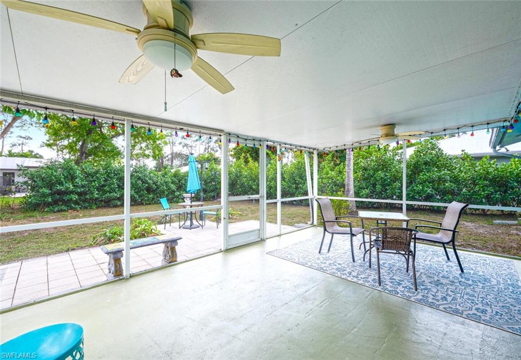 4 miles from the BEACH!! A rare find at this price in the heart of Naples! This bright and well-maintained 2-bedroom, 2-bath home offers a split-bedroom floor plan. Nestled in a deeded community with unbelievably low fees—just $50 a year—this home provides easy access to schools, downtown Naples, and all the best shopping, dining, and entertainment. Relax on the spacious screened lanai, where lush private grounds offer shade and tranquility. Designed for both comfort and entertaining, the open living and dining areas create a welcoming atmosphere. With a newer roof (2021) , A/C (2018) and new flooring in both bedrooms, this is an incredible opportunity to own in a prime location for under $400K—truly a hidden gem! Offering a one-year home warranty. Great investment property!!