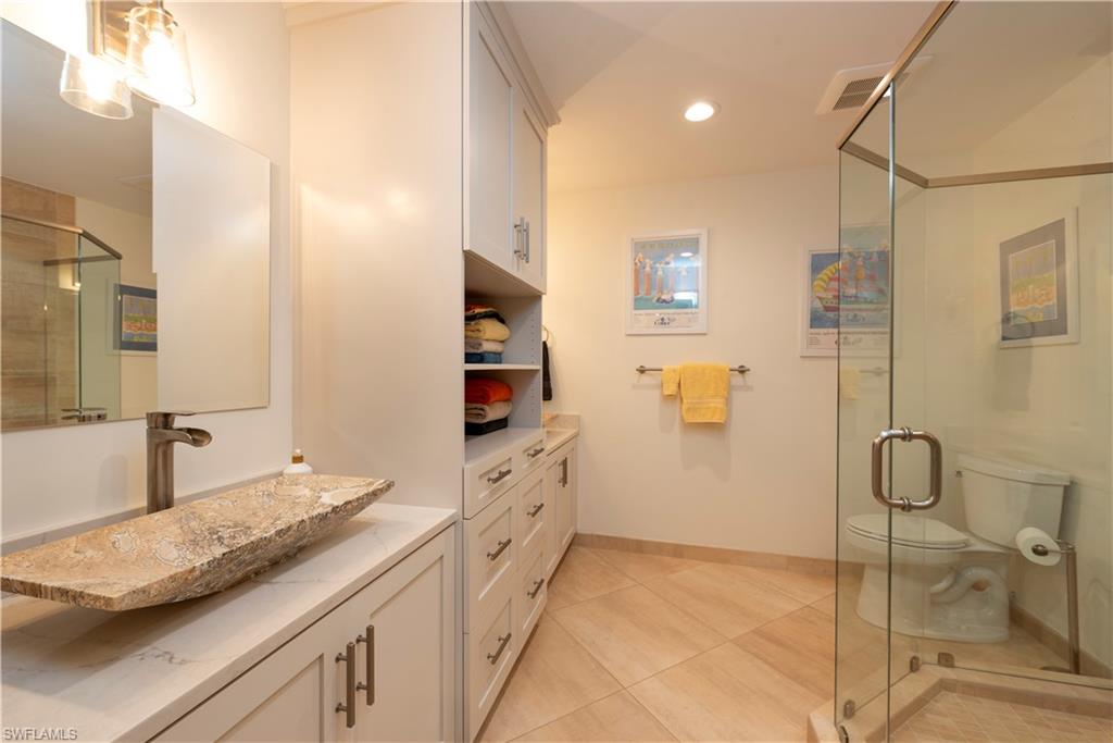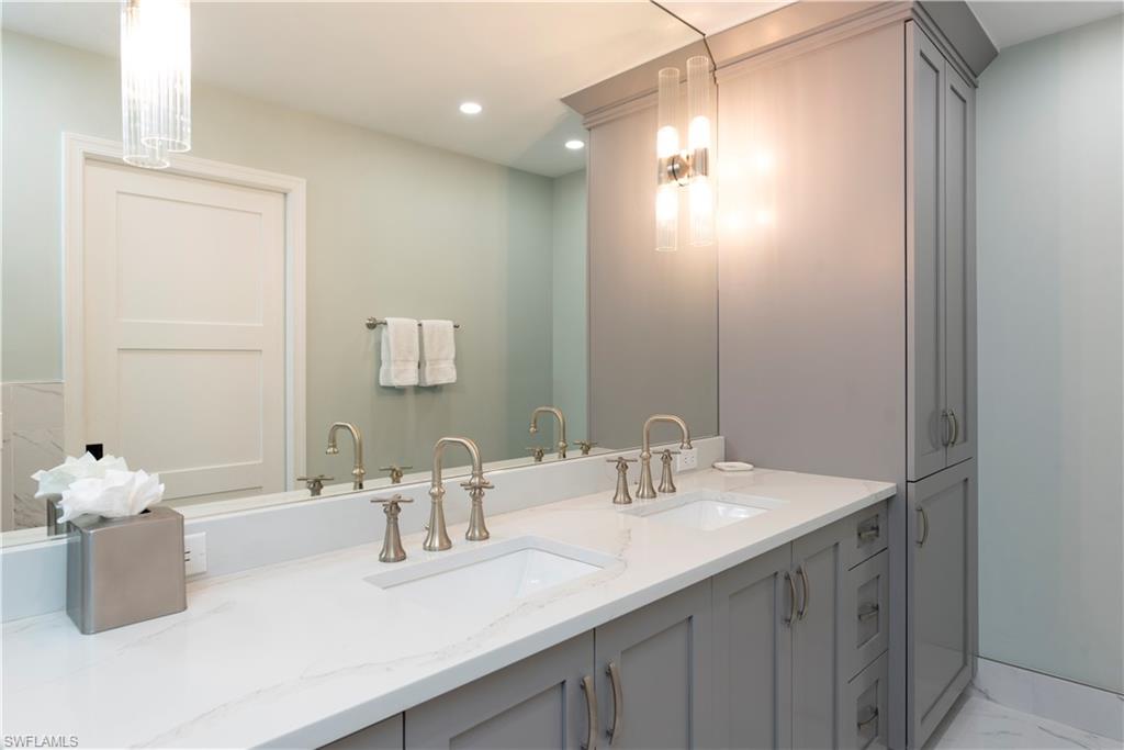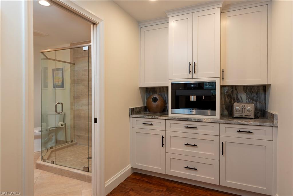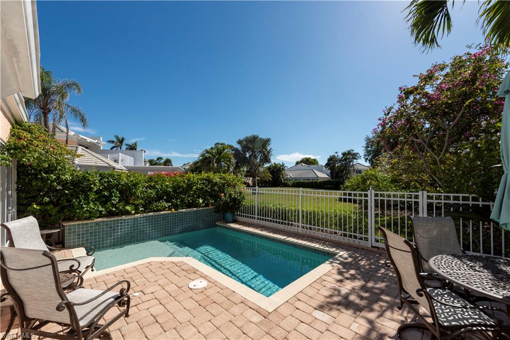 Wonderful opportunity to make this elegantly updated villa your home in the vibrant community of Pelican Bay. This residence, thoughtfully enhanced in 2021, features an abundance of built-in elements and state-of-the-art lighting, creating a bright and inviting atmosphere. Unwind on your private garden patio, complete with a pool, where you can relish stunning sunsets overlooking tranquil neighborhood greenspace. The gourmet kitchen is a chef's dream, showcasing exquisite stone countertops, a spacious island with a second sink, custom cabinetry, and fully integrated appliances. The Master Suite offers a serene retreat, featuring a generous balcony and a fully remodeled bath adorned with dual sinks and marble finishes. The Guest Bedroom, accompanied by an en-suite bath, boasts lovely views to the north and east. A versatile home office can easily be transformed into additional guest accommodations with a pull-out console bed and a beautifully appointed bath. This villa also provides ample storage solutions and an attached two-car garage for your convenience. Living in Pelican Bay grants access to a premier lifestyle unparalleled in Florida, complete with exceptional amenities such as private beachfront dining, dedicated beach services, canoe and kayak rentals, sailing opportunities, an active racquets program, pro shops, a full-service fitness center, wellness studio, and a vibrant community center hosting events throughout the year. Large dogs welcome with loads of greenspace. Discover the perfect combination of luxury and leisure in this remarkable villa!