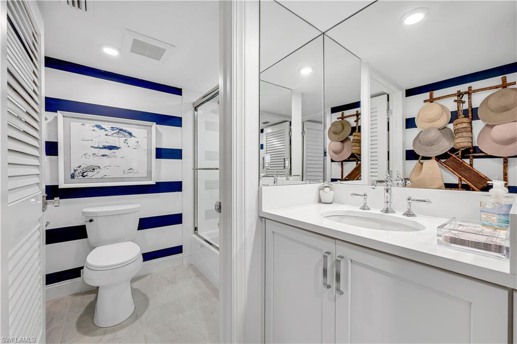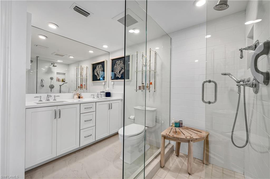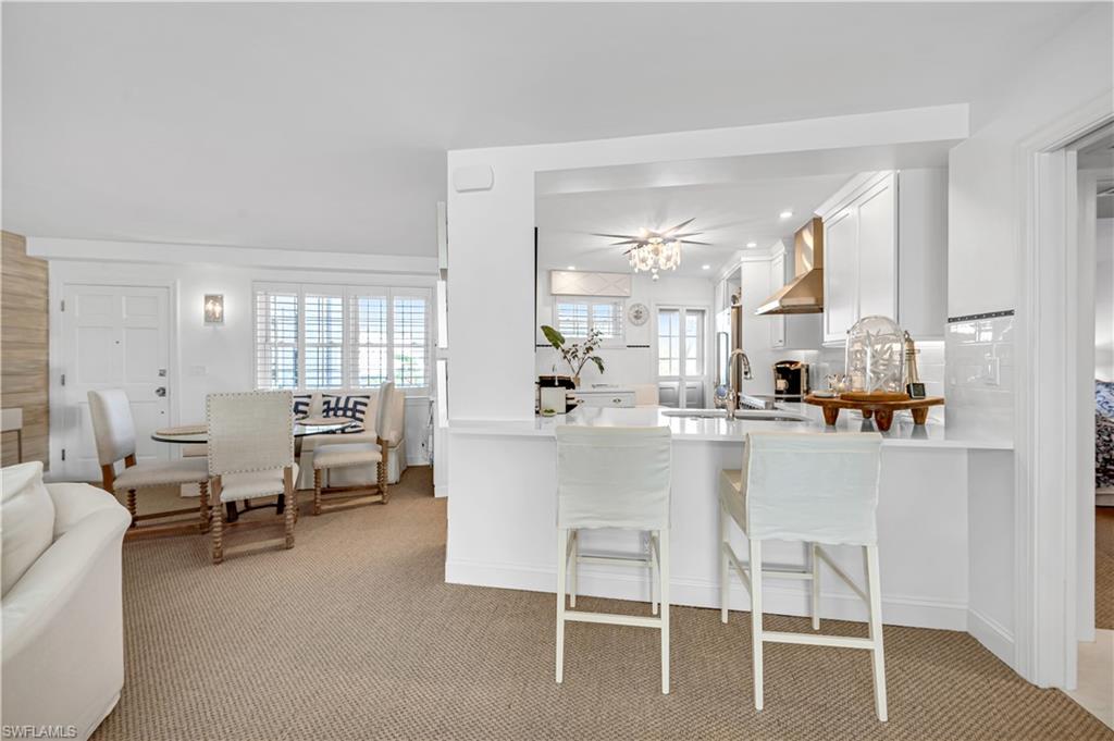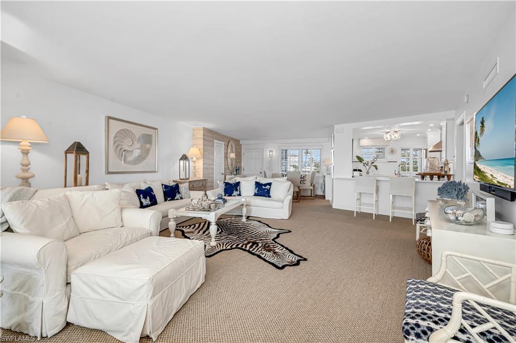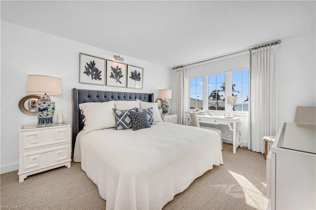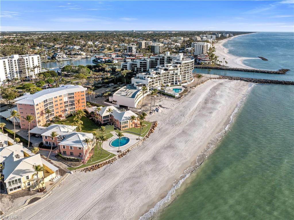 This luxurious condo offers courtyard views of The Gulf and features 2 bedrooms, 2 bathrooms, and 1518 sq/ft under air. Located on the 3rd floor this unit boasts a gourmet kitchen with Quartz countertops and Viking appliances, opened up to showcase Gulf views. A wine refrigerator is conveniently located near the dining room. The living area is adorned with sisal flooring, while the baths are tiled. The remarkable built-in bookcases with lighting adds a touch of class. The master bedroom enjoys glorious Gulf views, and the master bath is well-appointed with dual sinks and large walk-in shower. Guest bedroom includes California Closet built-in cabinets with plenty of storage. New AC has been recently installed. Additionally, the open-air front balcony is a delightful benefit adding to the total square footage. The Shores #33 has a pleasant, well put-together-feel, and the furnishings are included with the sale. Located on the quietest and perhaps the most beautiful stretch of Gulf Shore Blvd, less than 2 miles from the great restaurants and shops of Venetian Village. On a quiet and almost private part of the Gulf beach, less than 100 yards from Doctors Pass that provides easy access to peaceful kayaking and paddle boarding.