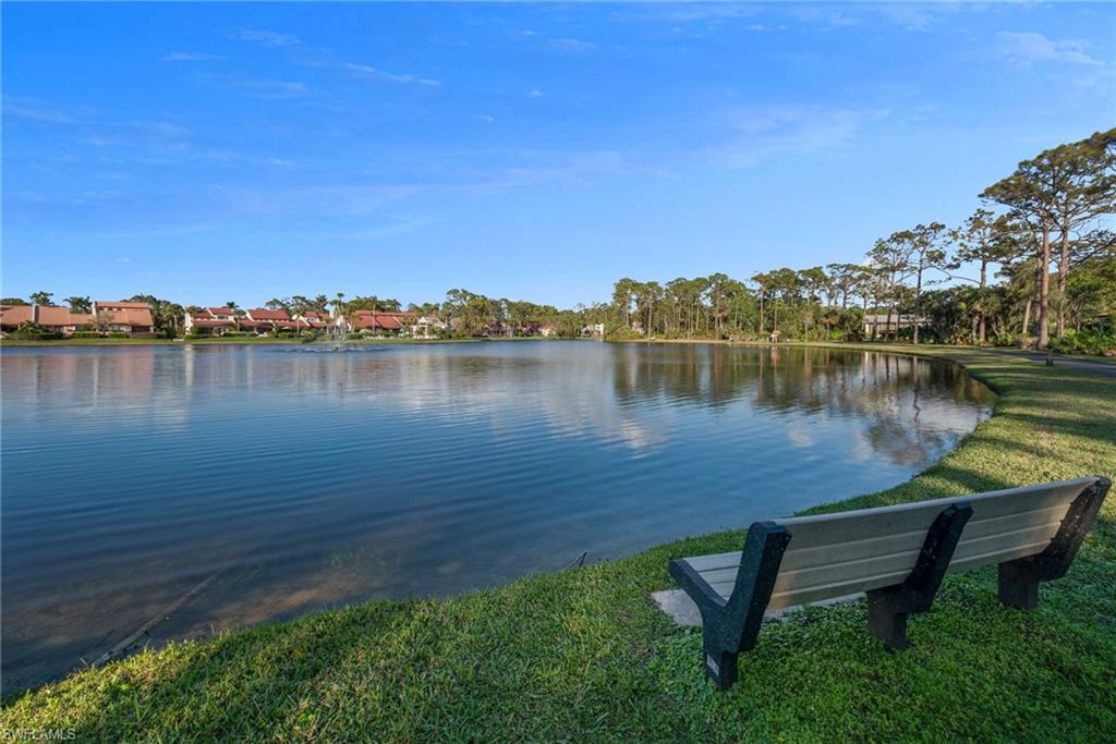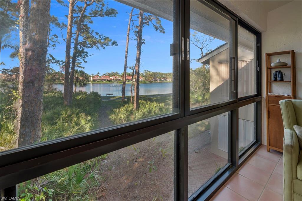 It would be very hard to beat the pristine lake view off the Florida room and Primary bedroom. Bay Forest prides itself on lush tropical landscapes combined with access to estuary, wildlife and preserves. This condo allows one to enjoy a morning coffee or afternoon cocktail while overlooking the tranquility of an expansive lake and wooded pine. Sandy Pines offers a single detached garage, and a lower density compared to many units in Bay Forest. Sandy Pines also offers a community pool, spa and amenity for only 37 owners and their guests. This subdivision is steps away from the community center; complete with tennis, pickleball, and work out facility. Take advantage of Bay Forest's newly renovated 2500 ft boardwalk which stretches out into Delnor Wiggins Park and Barefoot Beach.