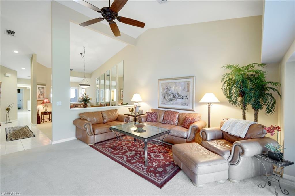 SELLER IS OFFERING A $25,000 CREDIT to Buyer at closing, contingent upon receipt of an acceptable offer and fully executed purchase agreement. Discover the perfect blend of comfort and luxury in this light-filled, single-story home nestled in the Village at Wildcat Run. Featuring two spacious bedrooms and 2.5 bathrooms, this beautifully designed residence boasts soaring vaulted ceilings, a Great Room with a cozy fireplace and wet bar, and both formal and casual dining spaces. The neutral décor and open layout create a welcoming ambiance, while the enclosed Florida room offers additional living space to relax and enjoy. The primary suite is a private retreat, complete with a walk-in closet and a bathroom featuring oversized diagonal tile, a granite vanity with dual sinks, a deep soaker tub, a glass-enclosed shower, and a generous linen closet. The guest bedroom also offers an en-suite bath for added convenience. The kitchen features Silestone countertops, a double sink, and stainless steel appliances. Beyond the home’s impeccable interior, residents enjoy access to an array of upscale amenities. The Village at Wildcat Run features a community pool and tennis courts, while membership opportunities at Wildcat Run Golf & Country Club unlock additional perks, including a prestigious Arnold Palmer Signature 18-hole golf course, four Har-Tru tennis courts, Bocce and Pickleball courts, a state-of-the-art fitness center with an on-site trainer, and two exceptional dining venues. Ideally situated just minutes from I-75, Southwest Florida International Airport, Florida Gulf Coast University, and premier shopping and dining destinations, this home provides both tranquility and convenience. Plus, the stunning Gulf beaches and the Estero Bay Waterway are just a short drive away, perfect for those who love outdoor adventures and coastal living. Whether you're seeking a year-round residence or a seasonal retreat, this exceptional property offers the best of the Southwest Florida lifestyle. Don’t miss your chance to own a piece of paradise in Estero!