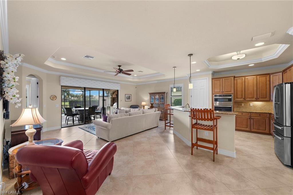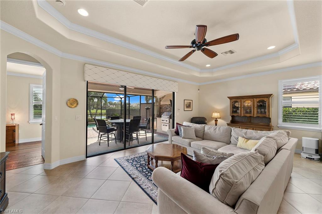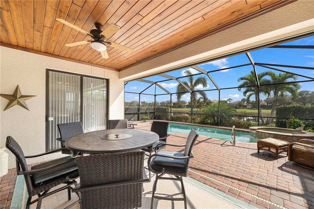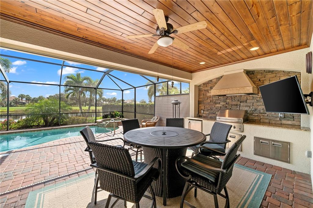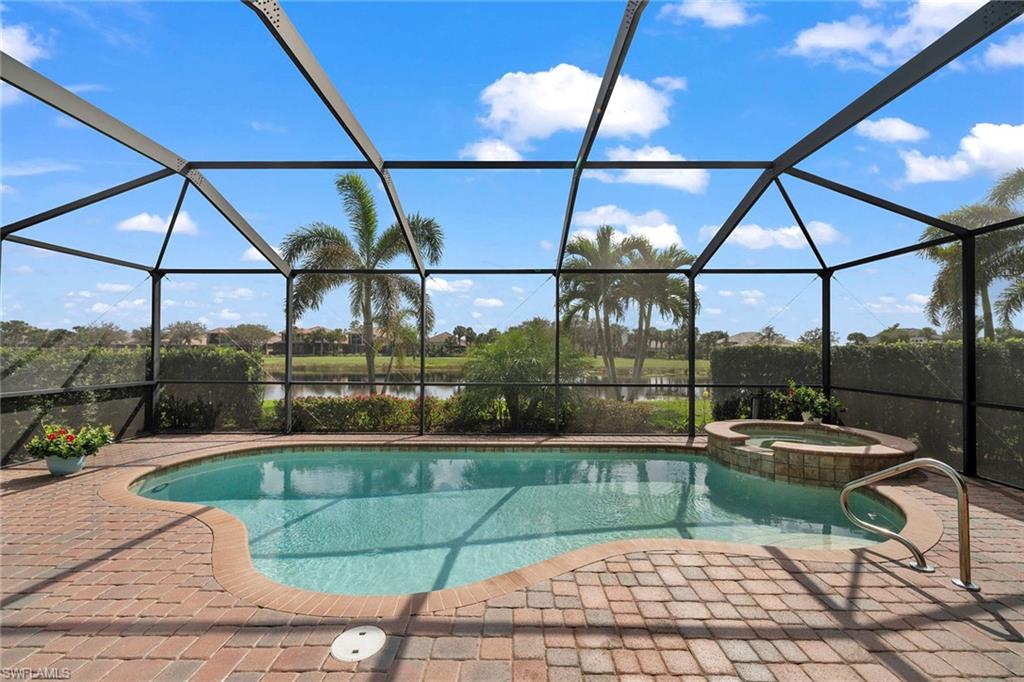 Step into the elegance of this Isabella floor plan featuring three bedrooms plus den and two full baths featuring full golf membership. Designed for comfort and style, this home boasts tile and wood flooring throughout, adding warmth and durability to every space. The expansive lanai with sought-after southern exposure, is an entertainer's dream. Complete with a private pool, spa and outdoor kitchen, all positioned to capture breathtaking lake and golf course views. Whether enjoying a morning coffee or hosting an evening gathering, this outdoor retreat offers tranquility and sophistication. Pride of ownership shines through, with a new high-efficiency air conditioner installed in 2024 and meticulous maintenance ensuring this home is in pristine condition. In the prestigious TwinEagles Club, this residence with full golf membership offers access to 36 holes of championship golf, making it a golfer's paradise. Recent community enhancements include an expanded and modernized clubhouse, a renovated Talon Golf Course and a host of resort-style amenities, providing an unparalleled lifestyle in Southwest Florida.