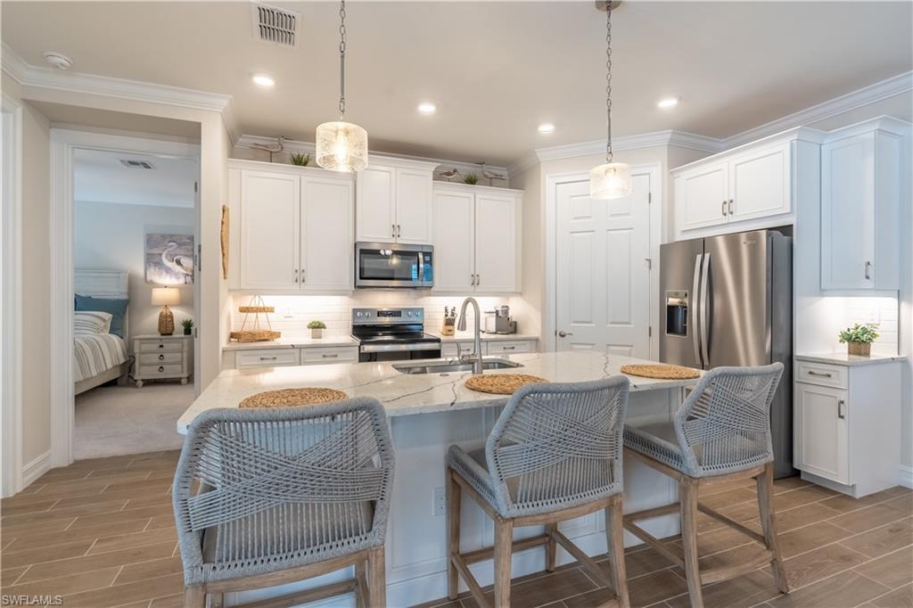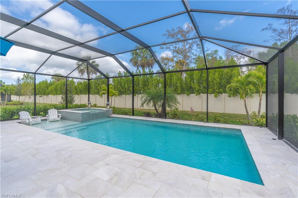WOW !!!! THIS IS THE BEST DEAL IN TAMARINDO WITH EVERY UPGRADE YOU CAN IMAGINE INCLUDING CUSTOM POOL. THIS IS A MUST SEE THIS WELCOMING Clifton MODEL WITH IT'S Open concept, three bedrooms/two bath single family home seated on a private cul de sac . So many enhancements have been added, this home must be seen to appreciate the full quantity.( THIS IS ONE OF THOSE HOMES THAT MAKE YOU FEEL YOU ARE ON VACATION EVERDAY !!!!!!) Nine foot ceilings wrapped with crown molding and extra tall interior doors add a lofty atmosphere to the home. Neutral paint shades, tile plank flooring in the main living space and carpeted bedrooms offer multiple decorating options. Both kitchen and baths have soft close cabinetry with pull outs. Custom lighting, fans and plantation shutters are but some of the many upgrades. Your outdoor oasis has a French pattern marble tile, covered lanai opening onto an oversized screen enclosed pool deck. Herein lies your custom, saltwater pool with sun shelf, six person spa and waterfall feature. The epoxy floor, two car garage has overhead and wall shelves for plentiful storage. Impact glass windows and door and a power hurricane shade on lanai plus upgraded electric for a generator keep you storm ready. Three RING cameras and Smart Home controls for garage, front door and thermostat keep you connected. Come visit, what can be your Naples retreat.