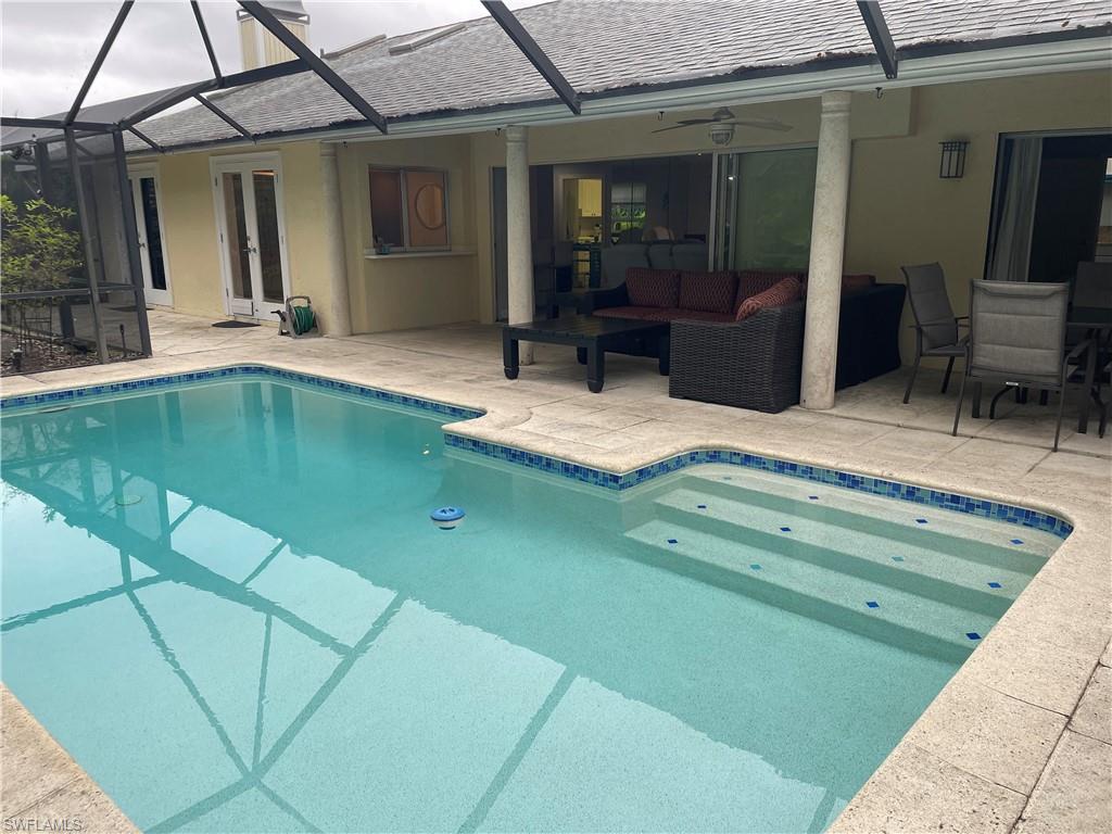 Lakewood is the community you've been waiting for—conveniently located near shopping and the beach. This beautifully renovated 3 bedroom home. 3rd bedroom has fireplace and shelving (Would make a great Den) The home includes a spacious 2-car garage, a stunning screened pool, and a private lanai. The kitchen boasts top-of-the-line appliances, and the water heater is only 2 years old. Air Conditioner 2021, Roof permit 2002. The $518 quarterly fee covers internet, cell service, TV, and irrigation water. The home is fully furnished and offers seasonal golf passes, with no golf fees. You do not have to join club. There are no rental restrictions in documents