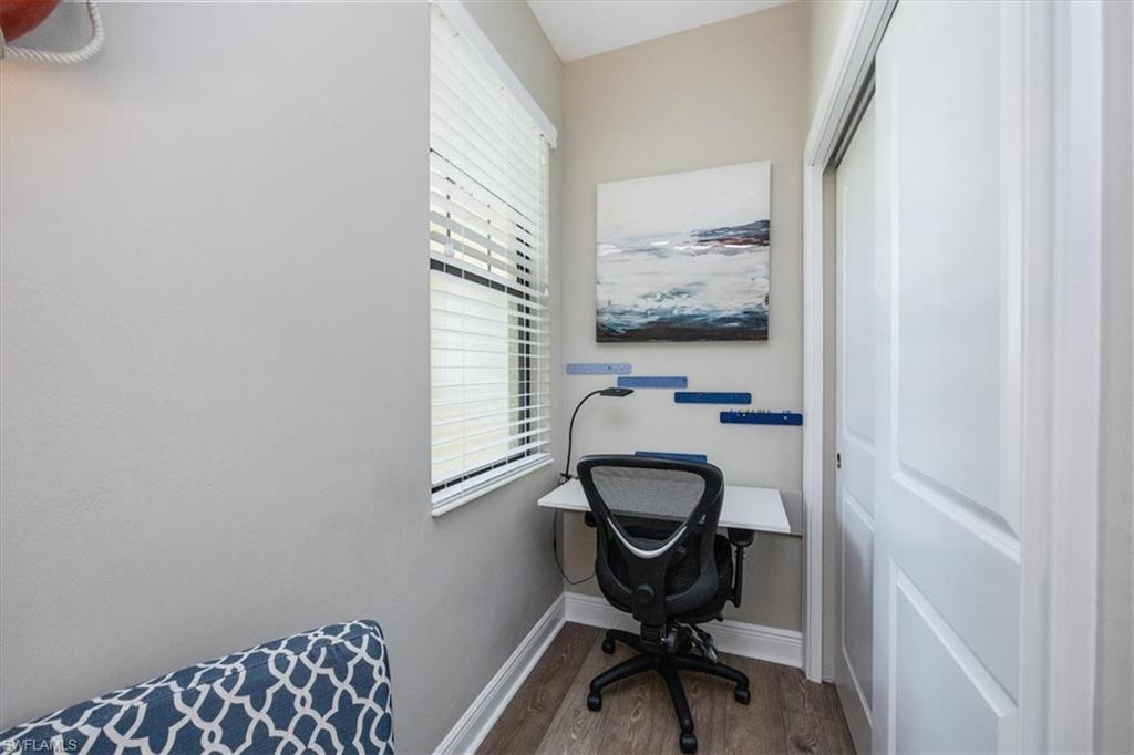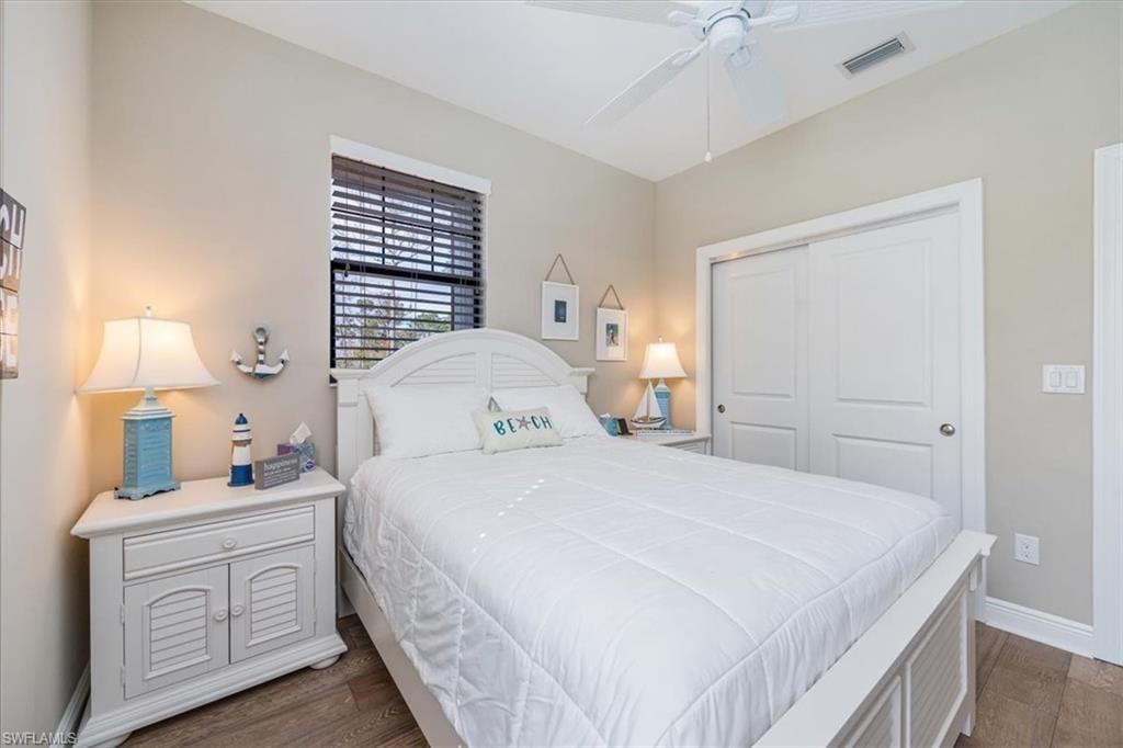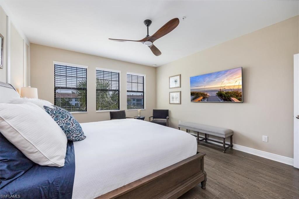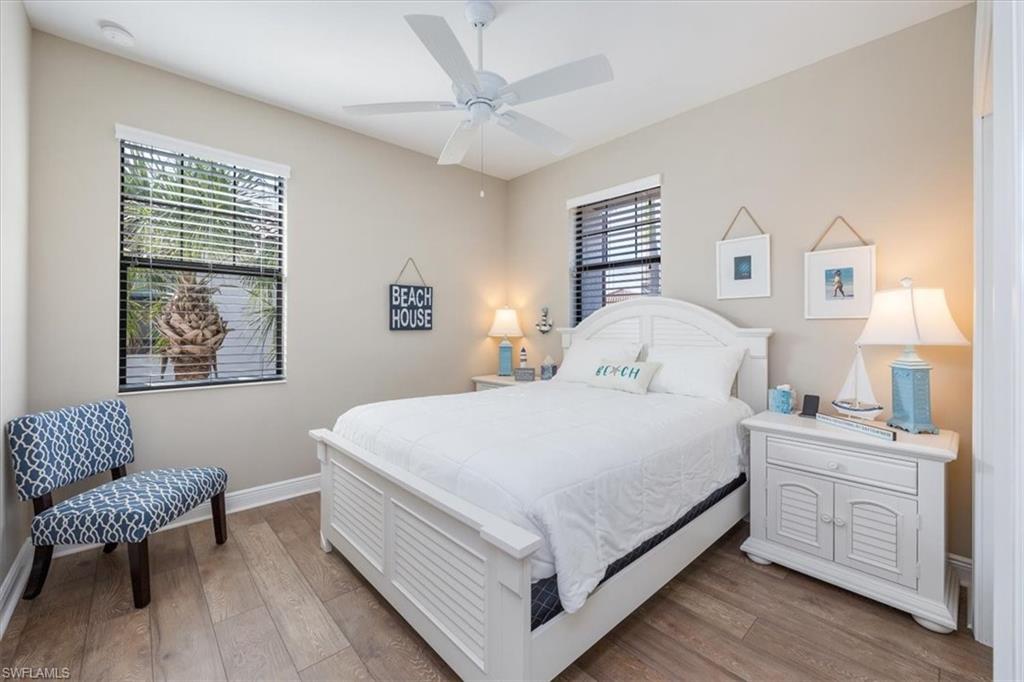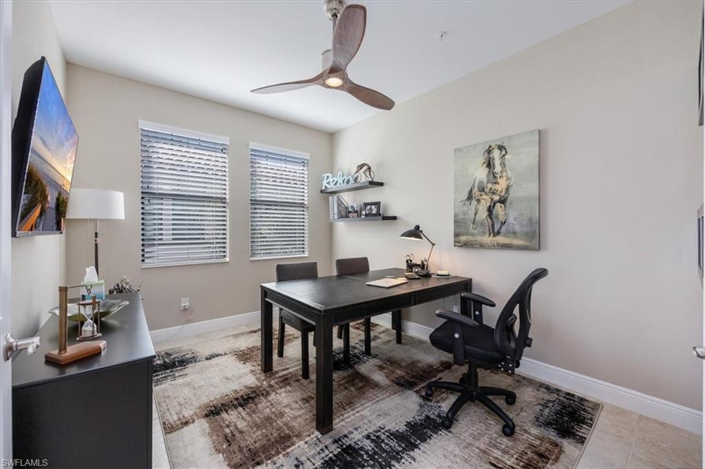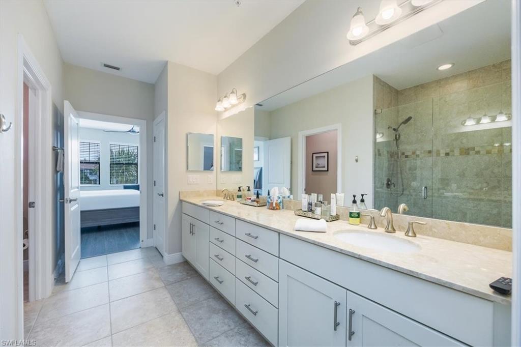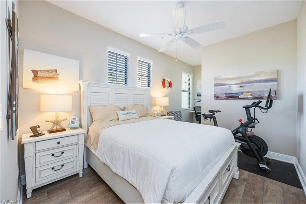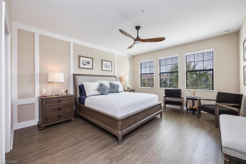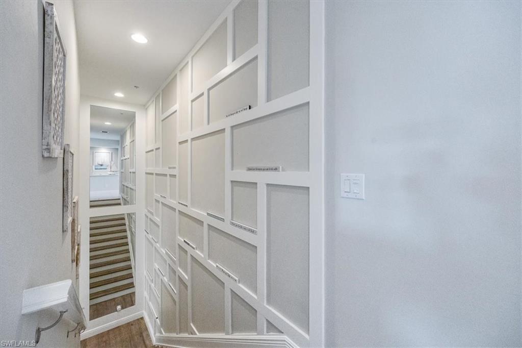 Welcome to this exquisite coastal-inspired retreat, where style meets comfort in the most breathtaking way. Second floor, end unit with southern exposure. The open-concept design is highlighted by the kitchen featuring an oversized granite island, a built-in wine cooler, and striking gold pendant lighting that adds a touch of elegance. The seamless flow into the spacious living and dining areas, framed by floor-to-ceiling sliding glass doors, invites in natural light and gorgeous lake and fountain views. One of the few Carriage Homes offering 3 true bedrooms plus a den. All bedrooms have engineered hardwood flooring. Geometric wall molding enhances the master bedroom wall as you head into the master bath with double vanity, floor to ceiling tiled shower with glass doors and reach your final destination of a masterfully created custom closet that maximizes storage space. Thoughtful details and modern finishes create a warm yet sophisticated ambiance throughout. Whether you're entertaining guests or enjoying a peaceful evening on the lanai, this home offers the perfect blend of luxury and relaxation. Impact windows and doors. Epoxy floor in the double garage. Nestled in the heart of North Naples, Livingston Lakes is a pet-friendly, gated community. With just 230 homes, this charming neighborhood boasts resort-style amenities, including a sparkling pool with lap lanes and cabanas, two built-in gas grills, a stylish clubhouse with a catering kitchen, a state-of-the-art fitness center, and a cozy outdoor fireplace and fountain—all with remarkably low fees. Next door to North Collier Regional Park, where miles of scenic nature trails, top-tier sports facilities, a water park, and the Golisano Children's Museum await. Plus, you’re less than five miles from the breathtaking white-sand beaches of the Gulf of Mexico. With endless shopping and dining options in every direction and convenient access to I-75 and multiple international airports, Livingston Lakes is the perfect place to call home.