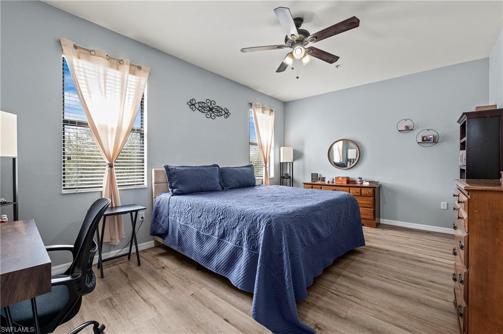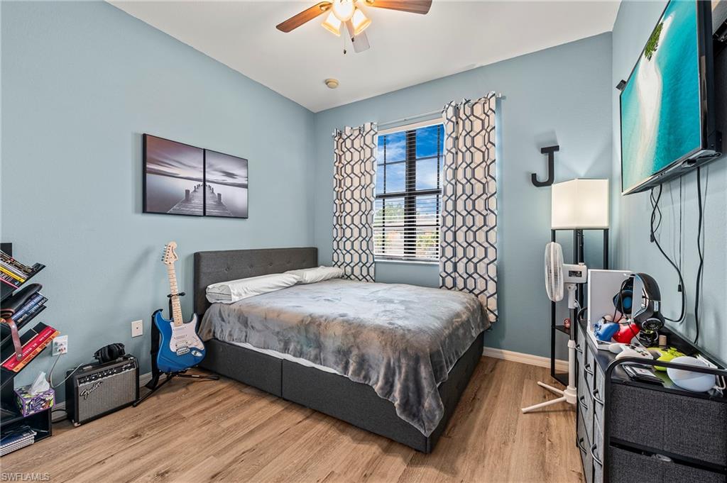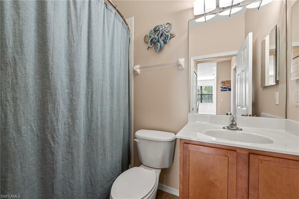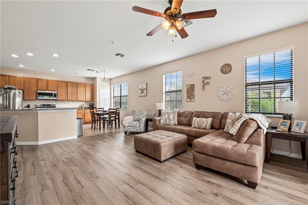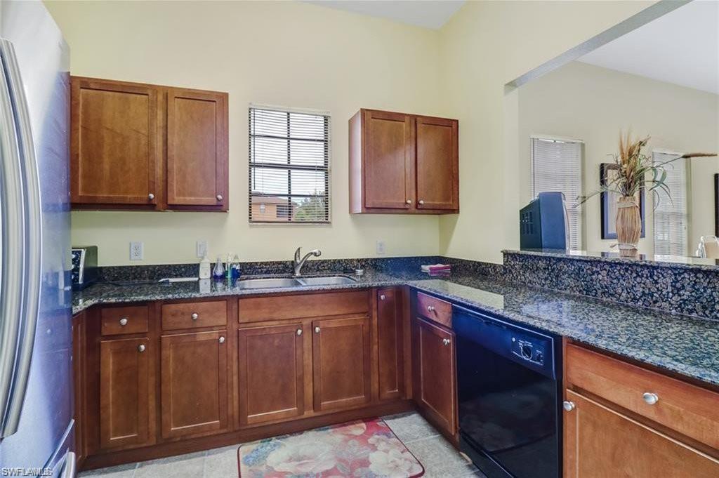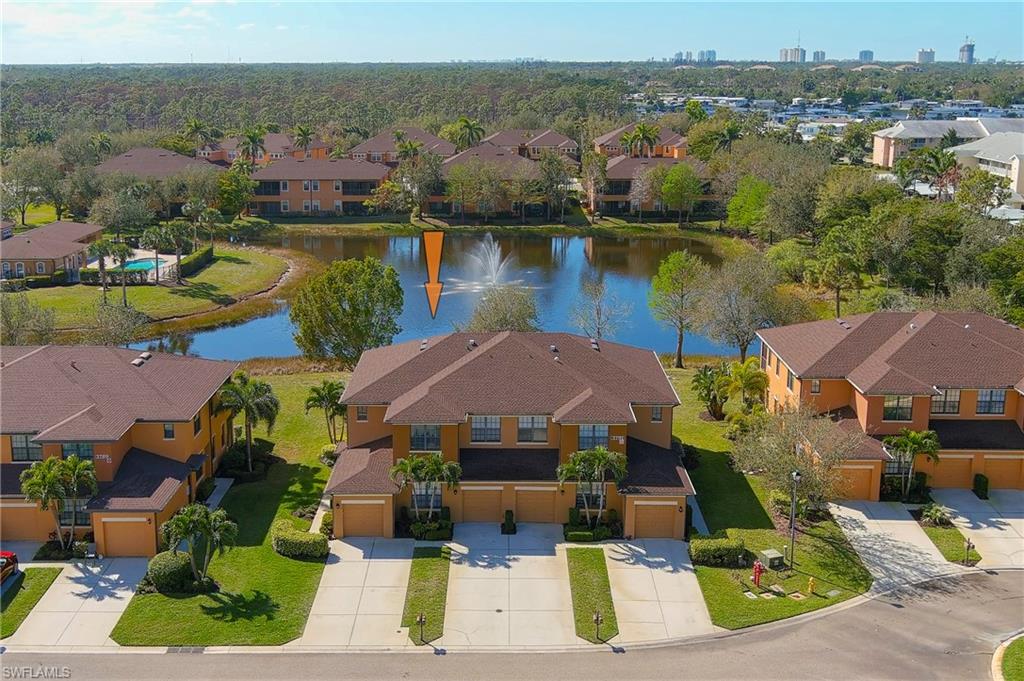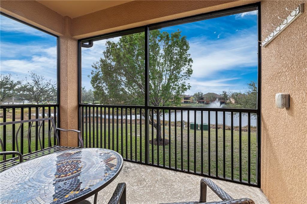 Enjoy one of the most stunning views in Terra Vista from this beautifully designed second-floor condo with southern exposure. Featuring an open floor plan, this residence offers 3 bedrooms plus a versatile den, 2 full bathrooms, and an attached one-car garage with a spacious double driveway. The large kitchen boasts ample cabinetry, sleek granite countertops, stainless steel appliances (all replaced in 2023), and a seamless flow into the living area and lanai overlooking the lake and fountain—perfect for entertaining. The expansive owner’s suite includes a luxurious ensuite bath leading into a generous walk-in closet. Upgraded with tile flooring in the kitchen and bathrooms, and luxury vinyl flooring with extra soundproofing throughout the main living areas, this home is both stylish and practical. Additional highlights include a professionally installed storage system in the garage, a new water heater (installed fall 2024), a well-maintained AC unit (installed fall 2017), and a new roof installed in 2023. Relax on the lanai and take in breathtaking lake and fountain views with desirable southern exposure. Plus, enjoy peace of mind knowing this home is situated in Flood Zone X. Terra Vista is a quiet gated community with lots of green space, a clubhouse and community pool. Conveniently located near Shopping, dining, RSW International airport and the beautiful beaches of Southwest Florida. This condo is perfect for a seasonal retreat or full-time residence. Don’t miss the chance to own this exceptional Terra Vista Condo!