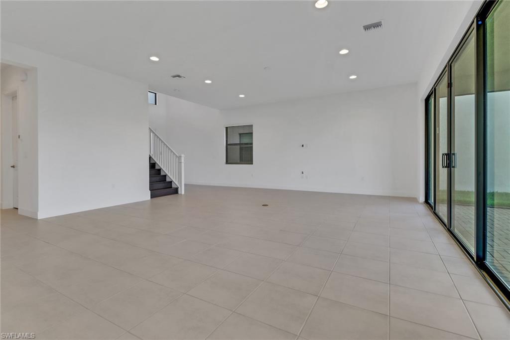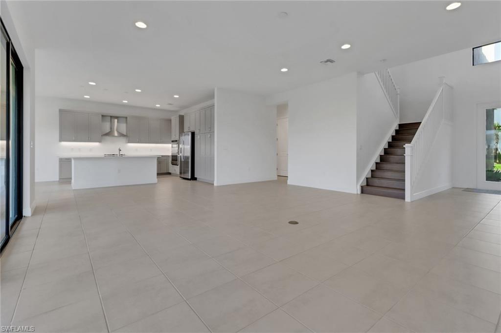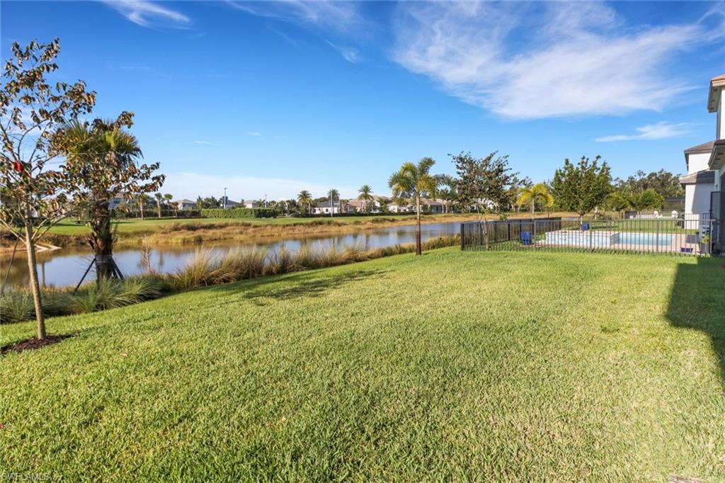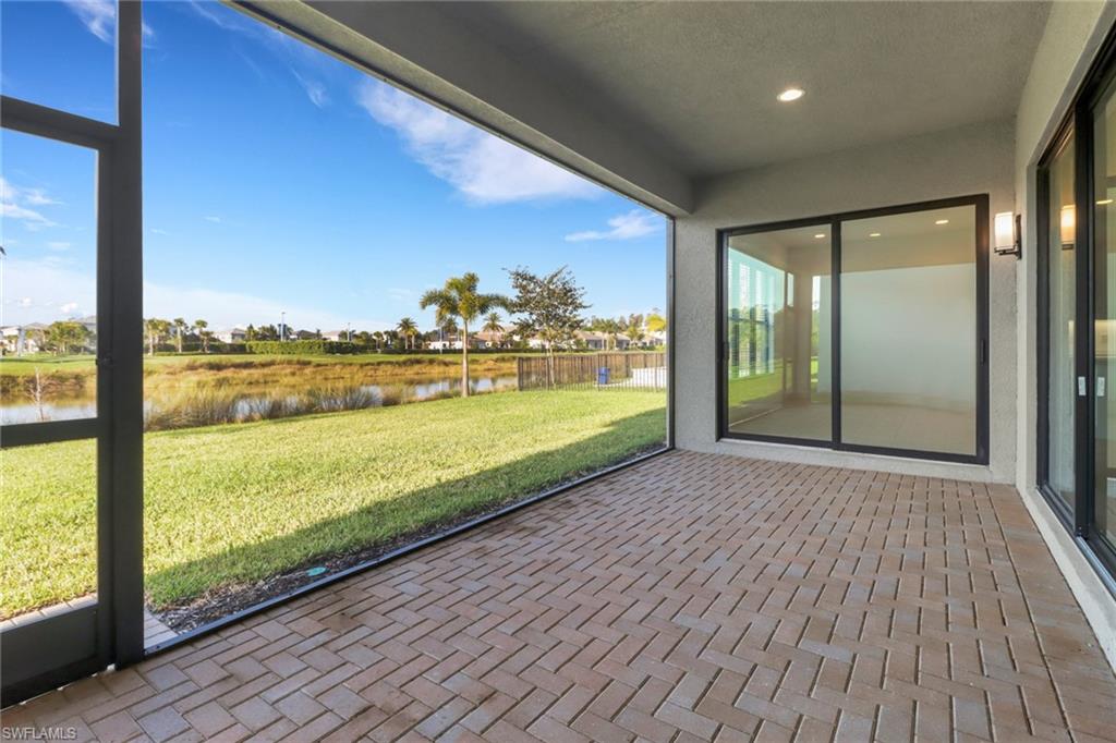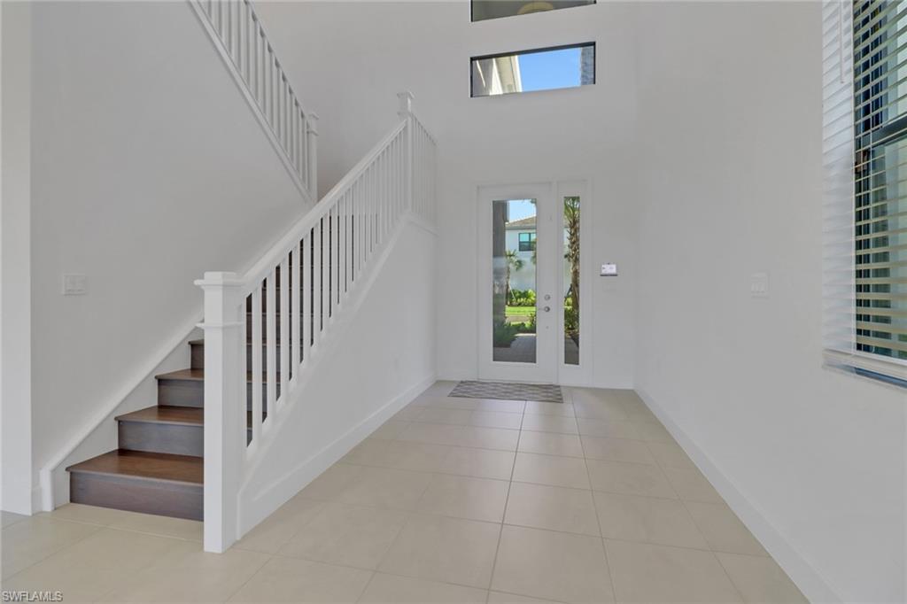 Welcome to your dream home in Rivercreek in Estero. The perfect Mother's Day gift! This brand-new, never-lived-in Olympia model has five spacious bedrooms, four luxurious baths, a versatile den, and an oversized 3-car garage. From the moment you step inside, you'll be wowed by the soaring ceiling, custom woodwork, upgraded lighting, and wood staircase to the upstairs. The chef's kitchen is a showstopper featuring top-of-the-line stainless steel appliances, quartz countertops, upgraded backsplash, and a huge island- perfect for entertaining. The open concept layout flows effortlessly to the great room, bathed in natural light from large glass sliders that lead to the screened lanai, overlooking the lake, and a yard with space for a pool. This home is conveniently located across from the clubhouse and community pool. Discover a guest suite and full bath on the main level- ideal for visitors or a live-in nanny. The owner's suite pampers upstairs with a spa-like bathroom, soaking tub, frameless glass shower, dual vanities, and massive walk-in closets. Three additional bedrooms, two baths, a large loft area, and a dedicated den/office space offer endless possibilities for family, hobbies, or work from home. River Creek is a resort-style gated community packed with a clubhouse, fitness center, resort pool, sports courts, pickleball, tennis, basketball, playground, and more. This home is ready for you to move in today!