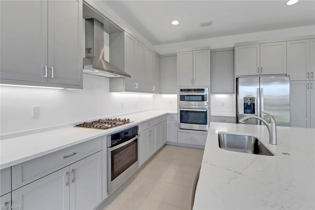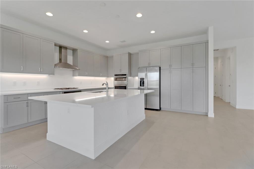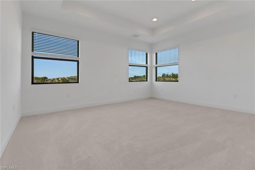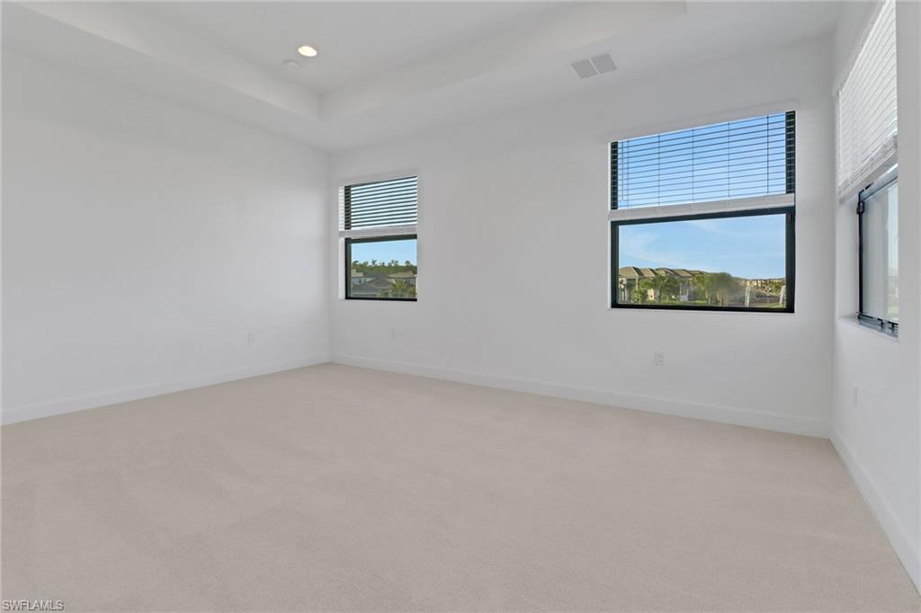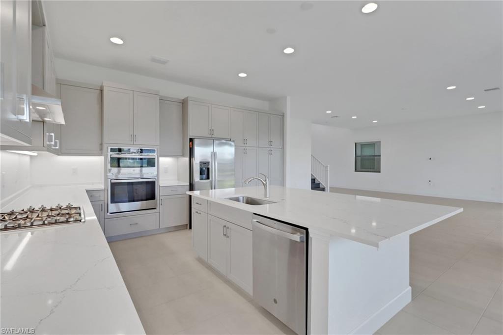 Welcome to your dream home in Rivercreek in Estero. The perfect Mother's Day gift! This brand-new, never-lived-in Olympia model has five spacious bedrooms, four luxurious baths, a versatile den, and an oversized 3-car garage. From the moment you step inside, you'll be wowed by the soaring ceiling, custom woodwork, upgraded lighting, and wood staircase to the upstairs. The chef's kitchen is a showstopper featuring top-of-the-line stainless steel appliances, quartz countertops, upgraded backsplash, and a huge island- perfect for entertaining. The open concept layout flows effortlessly to the great room, bathed in natural light from large glass sliders that lead to the screened lanai, overlooking the lake, and a yard with space for a pool. This home is conveniently located across from the clubhouse and community pool. Discover a guest suite and full bath on the main level- ideal for visitors or a live-in nanny. The owner's suite pampers upstairs with a spa-like bathroom, soaking tub, frameless glass shower, dual vanities, and massive walk-in closets. Three additional bedrooms, two baths, a large loft area, and a dedicated den/office space offer endless possibilities for family, hobbies, or work from home. River Creek is a resort-style gated community packed with a clubhouse, fitness center, resort pool, sports courts, pickleball, tennis, basketball, playground, and more. This home is ready for you to move in today!