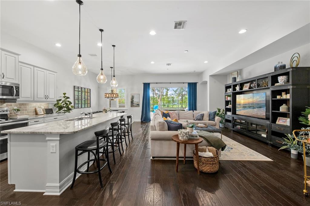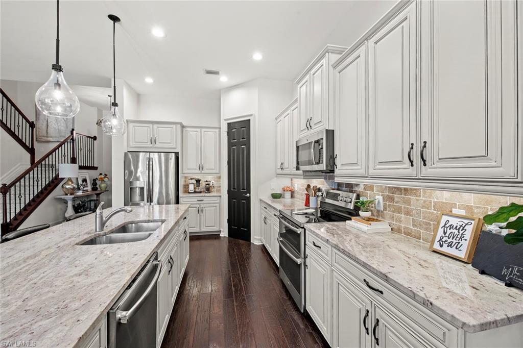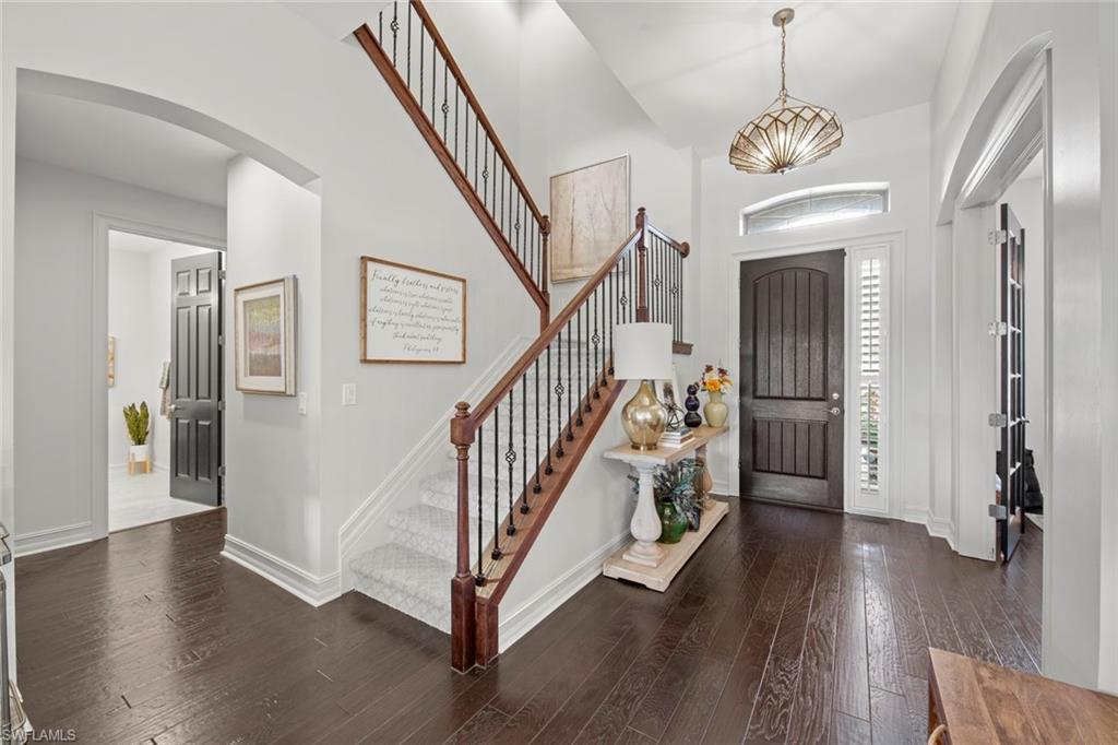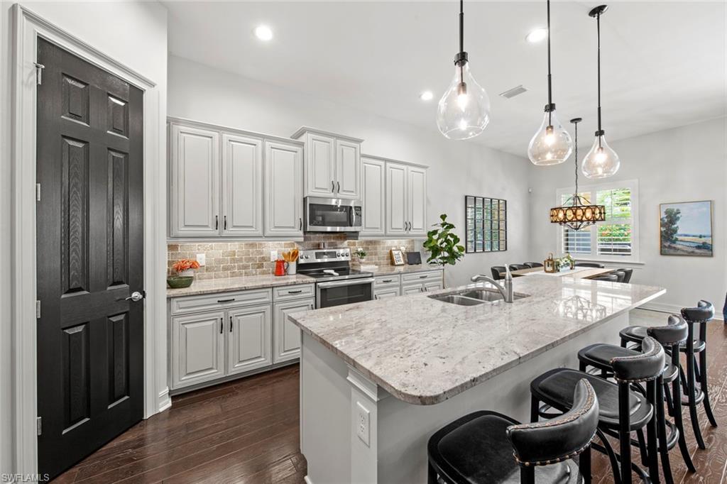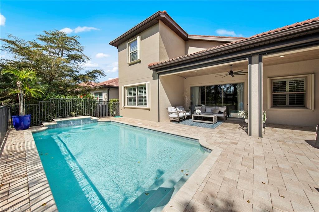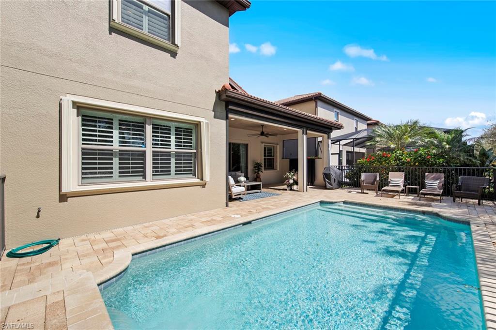 Step into this warm and inviting home in a prime North Naples location (WEST of 75), where comfort meets elegance in a well-loved and meticulously cared-for space. The first level features rich wood flooring, a spacious open great room floor plan, and an upgraded gourmet kitchen with beautiful granite countertops. A separate dining room (or home office!) adds flexibility, while a convenient half bath completes the space. The primary suite is also on the first floor, offering privacy and convenience. Upstairs, a large loft area provides versatile additional living space—perfect for a game room, playroom, media room, or home gym—accompanied by two guest bedrooms and a full guest bath. Step outside to an inviting covered lanai with elegant wood ceiling details, a large pool, and ample space for entertaining. Roll-down electric screens on lanai provide shade and comfort, while plantation shutters throughout add timeless style. The private backyard offers serene glimpses of the lake, creating a peaceful retreat. Located in Barrington Cove, a small gated boutique community, this home offers close proximity to North Collier Regional Park, Seed to Table, and top-rated Collier County schools. Just a short drive to 5th Avenue and the white sandy beaches of Southwest Florida, this is your perfect place to call home!