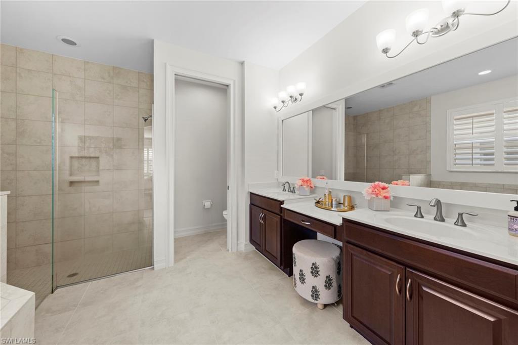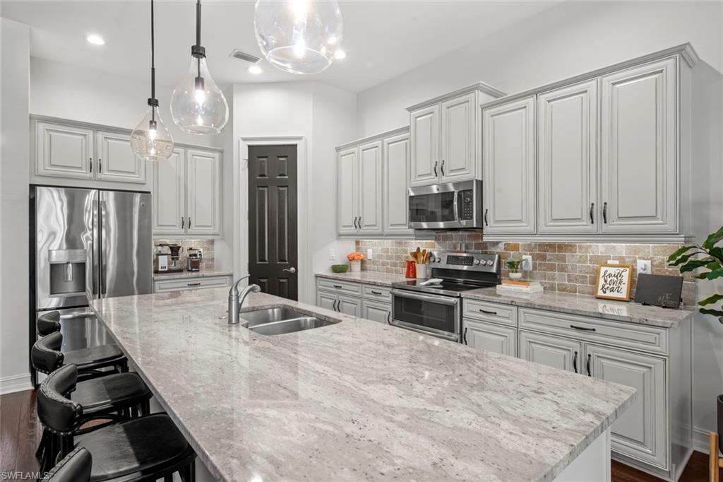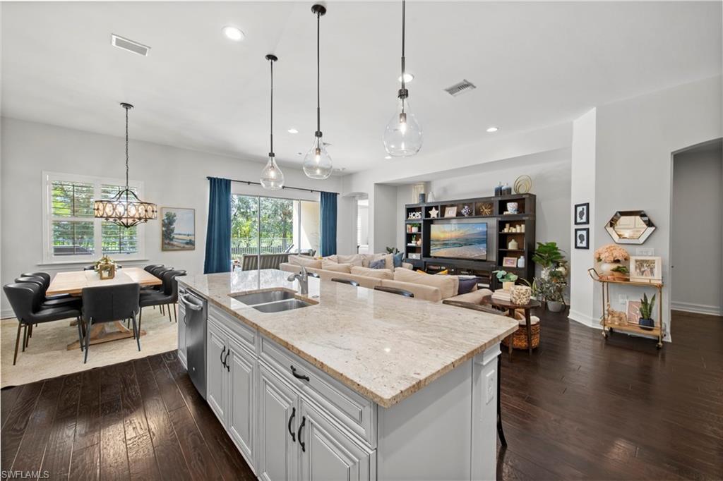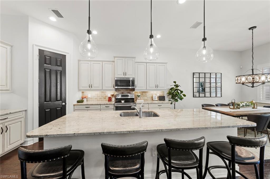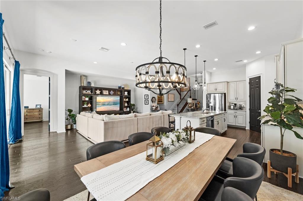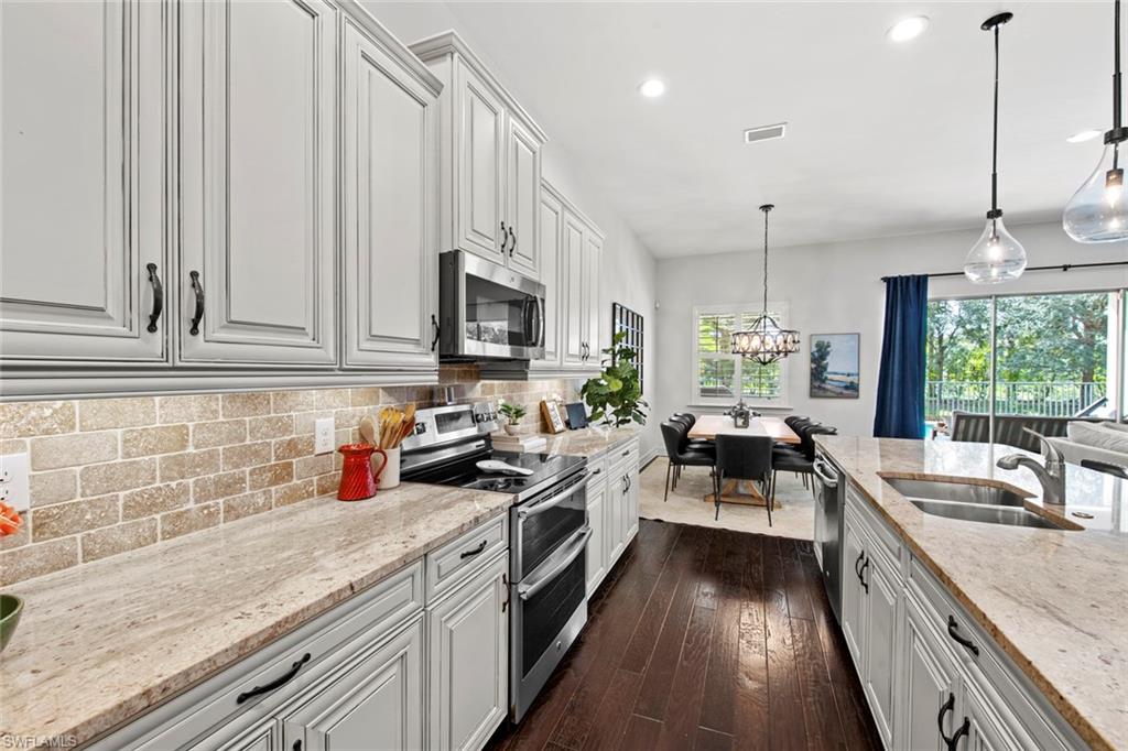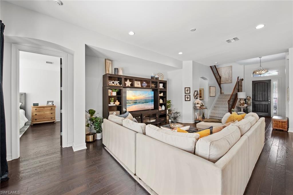 Step into this warm and inviting home in a prime North Naples location (WEST of 75), where comfort meets elegance in a well-loved and meticulously cared-for space. The first level features rich wood flooring, a spacious open great room floor plan, and an upgraded gourmet kitchen with beautiful granite countertops. A separate dining room (or home office!) adds flexibility, while a convenient half bath completes the space. The primary suite is also on the first floor, offering privacy and convenience. Upstairs, a large loft area provides versatile additional living space—perfect for a game room, playroom, media room, or home gym—accompanied by two guest bedrooms and a full guest bath. Step outside to an inviting covered lanai with elegant wood ceiling details, a large pool, and ample space for entertaining. Roll-down electric screens on lanai provide shade and comfort, while plantation shutters throughout add timeless style. The private backyard offers serene glimpses of the lake, creating a peaceful retreat. Located in Barrington Cove, a small gated boutique community, this home offers close proximity to North Collier Regional Park, Seed to Table, and top-rated Collier County schools. Just a short drive to 5th Avenue and the white sandy beaches of Southwest Florida, this is your perfect place to call home!