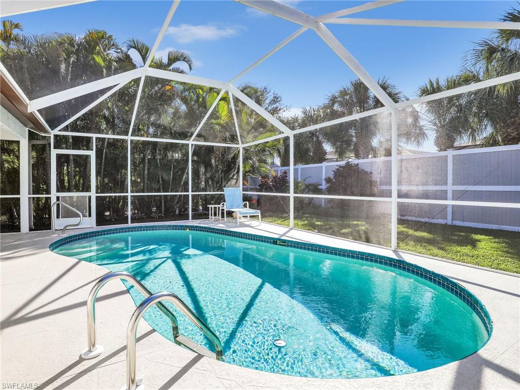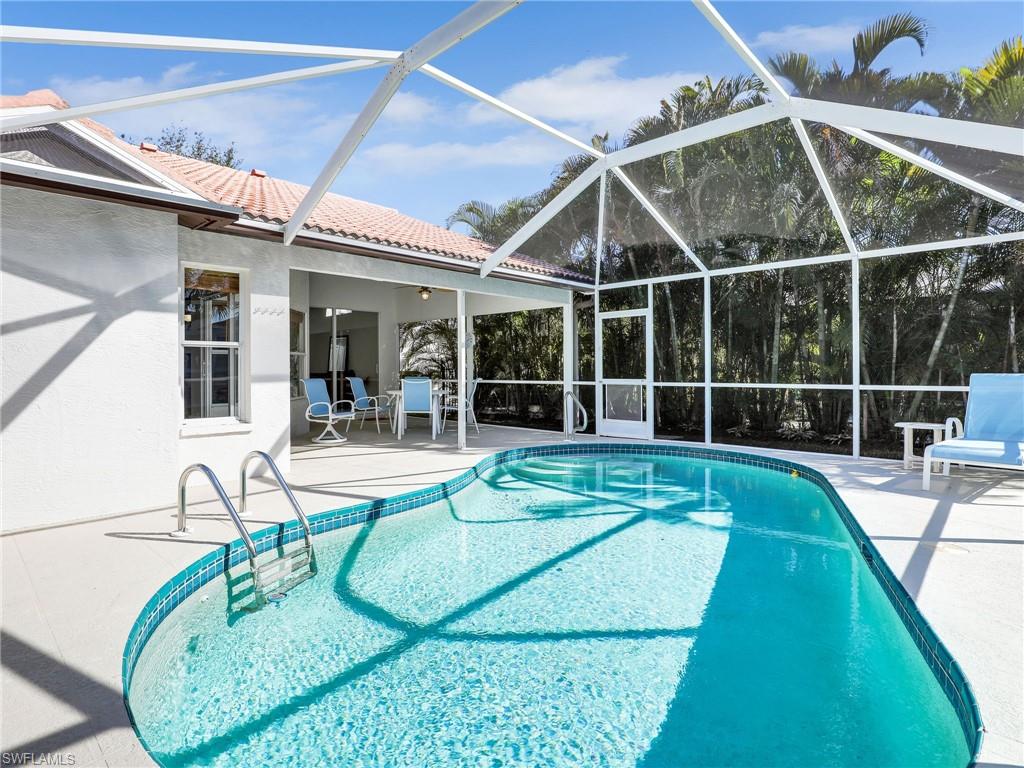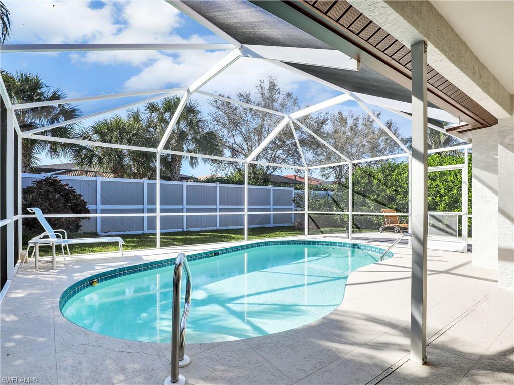 BRAND NEW ROOF BEING INSTALLED. Welcome to this stunning single-family home in the much sought-after community of Longshore Lake. Begin your day with a cup of coffee on your screened lanai and pool, enjoying the quiet privacy of your yard. The SALT WATER pool includes a brand new pump, heater, and chiller. Recent improvements to the home include a new A/C system in 2023, interior and exterior painting, a whole-house water filtration system, a brand new refrigerator, dishwasher, disposal, washer, and dryer plus a new hot water heater. This pristine home also includes new Hunter Douglas window treatments and a jetted tub in the master bath. Longshore Lake is a vibrant, water-centric community set around a stunning 88-acre lake in Naples, offering a blend of recreational and social amenities. The heart of the community is The Club at Longshore Lake, featuring a restaurant with a cozy bar, a fitness center, and a tennis center with nine Har-Tru courts, open for day and night play. Residents enjoy access to the lake for boating, kayaking, fishing, and scenic sunset cruises. The community also boasts a basketball court, playground, and miles of walking paths, and is part of Naples' A-rated school district. With fitness programs and summer seasonal reciprocal privileges with other select Naples communities, Longshore Lake provides an ideal blend of active living and a tranquil waterfront lifestyle. Schedule your showing today to view this fantastic home offering an unbeatable combination of comfort, style, and location.