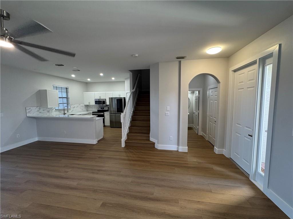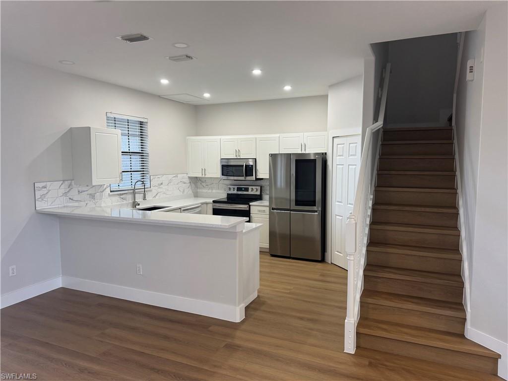 Discover this beautifully renovated and well-maintained three-bedroom, 2.5-bathroom townhome in a sought-after community. Featuring a brand-new roof, this home offers modern finishes, spacious living areas, and stylish upgrades throughout. Boasting serene lake views from its extended screened-in lanai. The kitchen is spacious and functional, featuring white cabinetry, a pantry and a breakfast bar that opens to a generous dining area with French doors leading to the lanai. Enjoy the new modern finished that have been made while luxury vinyl flooring throughout enhancing the stairs and all rooms upstairs. Enjoy resort-style amenities, including a sparkling pool and a state-of-the-art gym. With its prime location and move-in-ready condition, this townhome is a perfect blend of comfort and convenience.
