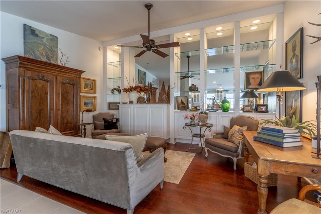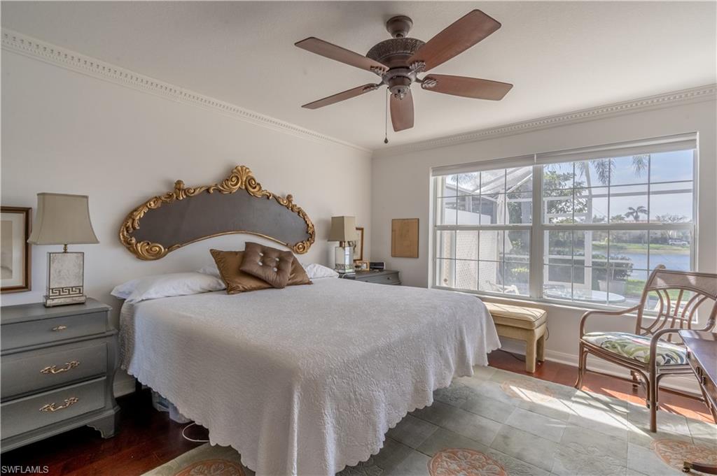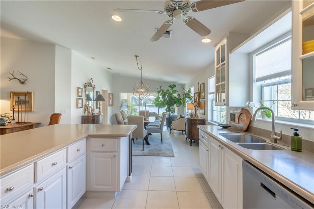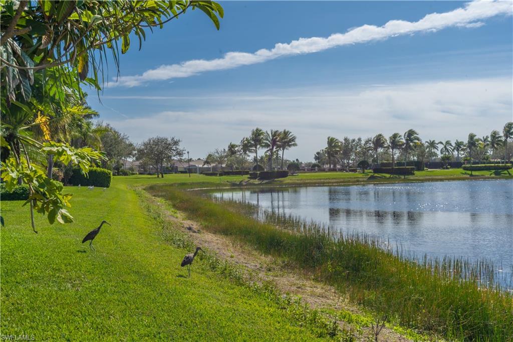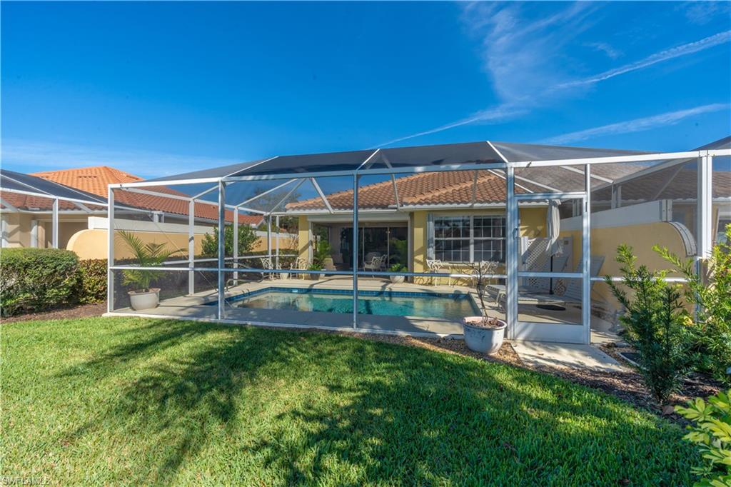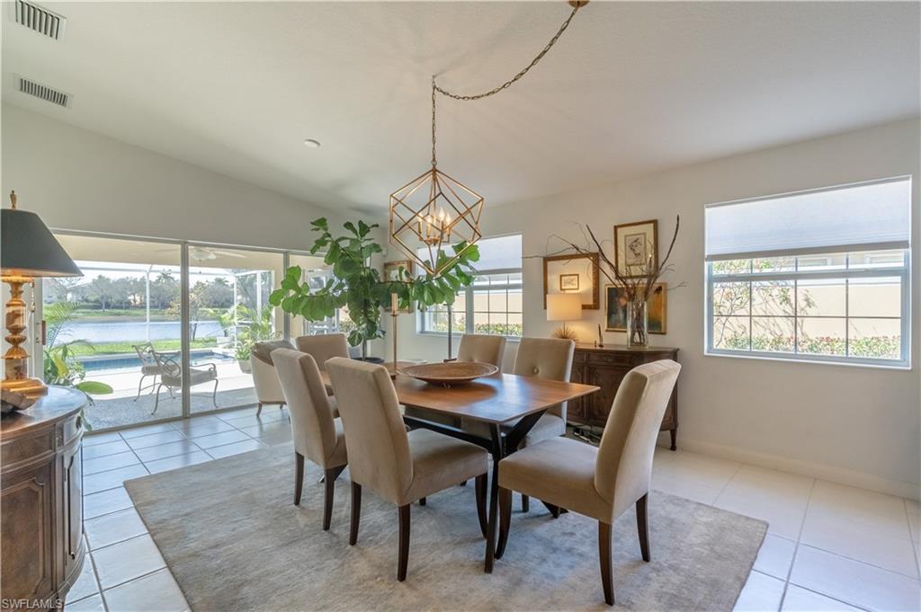 THIS HOME IS READY TO GO. This two bedrooms with den/two bath attached Capri villa in the gated community of VeronaWalk, is being offered partially furnished, making move in easy. Replacements include a new roof, A/C unit and hot water heater, so major mechanicals have been addressed. This original DiVosta built, poured concrete home has vaulted ceilings and tile in the main living area. Plank flooring has been installed in the bedrooms. A split floorplan has the bedrooms located on opposite sides of the home, with each having their own walk-in closet and full bath. The centrally located white kitchen has additional upgrades, such as, stainless appliances, tile backsplash, several glass cabinet doors for display and bead board beneath the spacious counters. Your covered lanai opens onto a screen enclosed patio with an inviting rectangular pool. From here, enjoy a wide water view and the abundant birds that visit. You are always storm ready with accordion and electric shutters. This well maintained home can be your Naples relaxing retreat away from it all. *Chandelier will not be included in sale