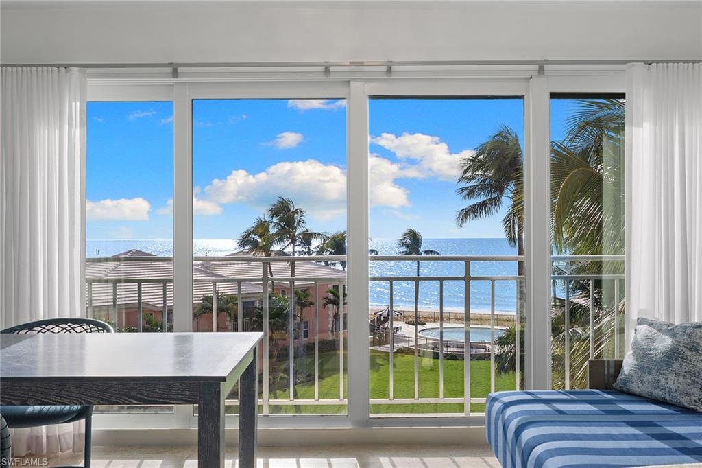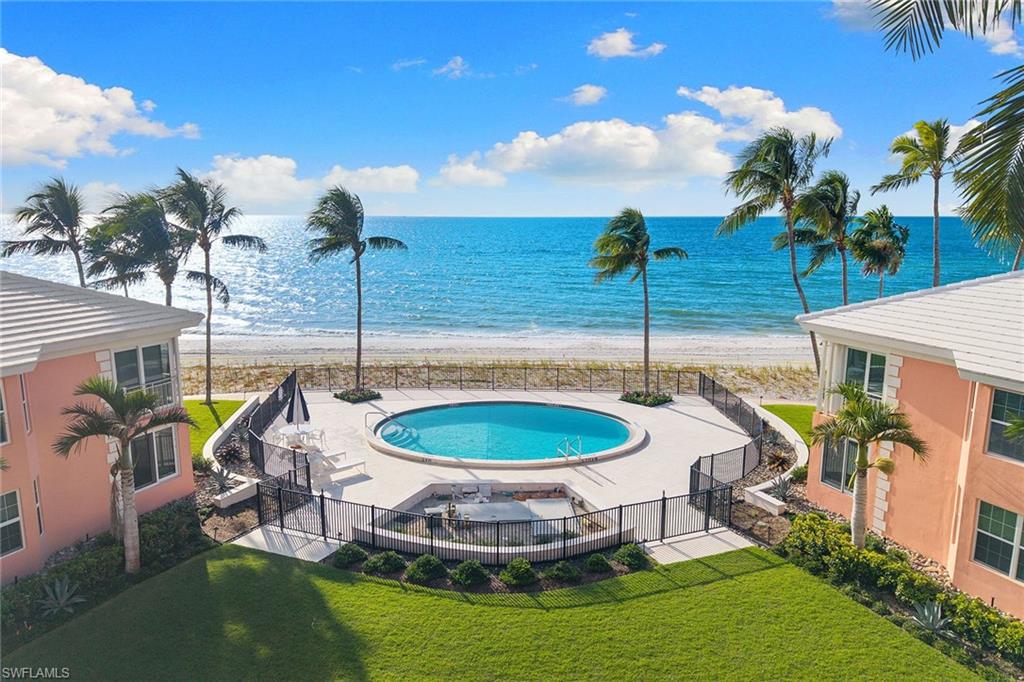 This stunning end-unit, fourth-floor beachfront condominium in The Shores has been fully renovated to offer modern luxury with breathtaking sunset views. Spanning approximately 1,600 square feet, this exceptional two-bedroom, two-bath residence is part of an exclusive 32-unit community. Originally built in 1969, the condominium has been meticulously updated with state-of-the-art technology, including Lutron lighting, automatic drop-down exterior screens, walk-in closets, a whole-home water filtration system, air purification and automatic window coverings. Every detail has been thoughtfully designed to elevate comfort and convenience. As part of The Moorings, The Shores residents enjoy the privilege of a private beach membership. A stunning blend of comfort and elegance, with breathtaking views of the gulf and easy access to pristine beaches. Featuring an open-concept layout, this unit is designed to maximize natural light and enhance the coastal ambiance. High-end finishes, modern upgraded appliances, and spacious living areas create a seamless balance of luxury and functionality. Whether you’re seeking a relaxing retreat or a vibrant social scene, this prime location offers the best of Naples living, just moments from fine dining, boutique shopping and cultural attractions.