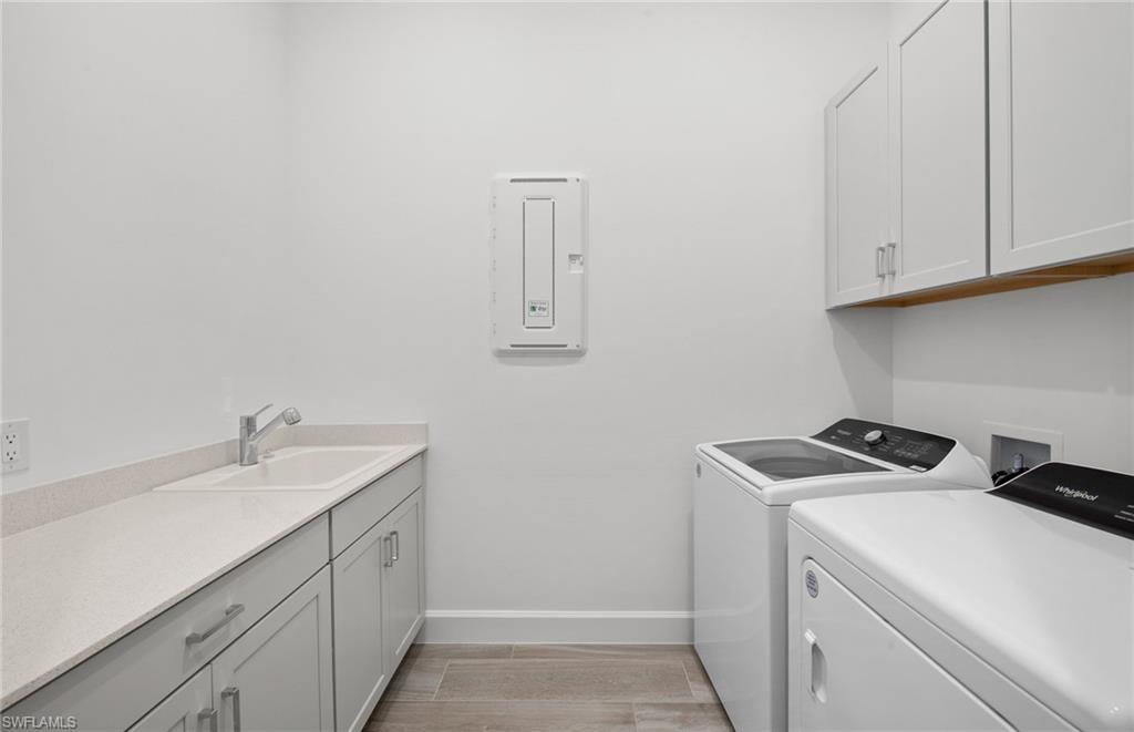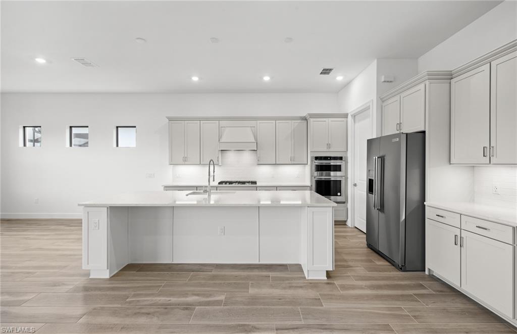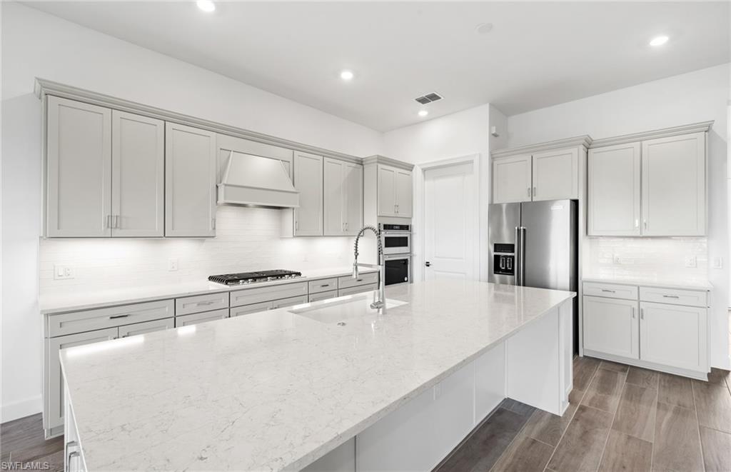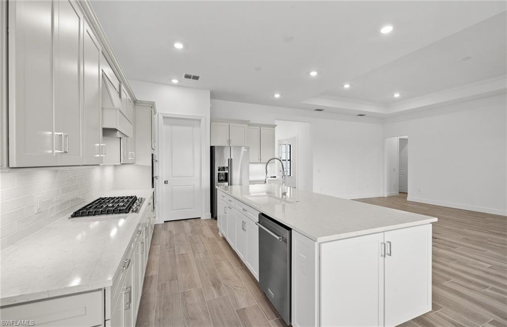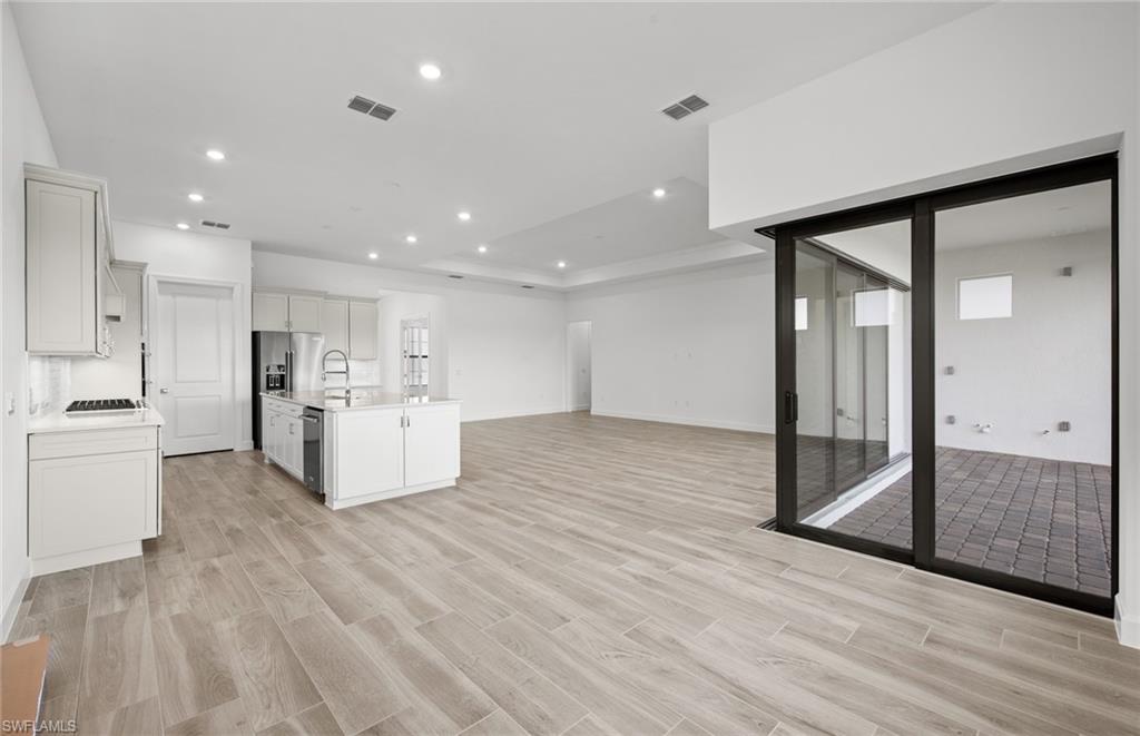 New construction Stellar plan AVAILABLE NOW at Verdana Village! The Stellar offers an efficient single-story, effortless lay out, providing comfortable daily living. This Stellar home has beautiful water views, and comes with a covered lanai area equiped with outdoor kitchen pre-plumbing setup, perfect for entertaining and enjoying the Florida sunsets! Room for pool to be added after closing! With just over 2,500 sqft of indoor living space, this 3 bedroom+den, 3 baths, 3-car garage beauty provides ample space for all occupants and guests. The kitchen is open to the cafe and gathering room, featuring a large center island, built-in appliance package with combo oven, extra storage, level four quartz countertops, level five cabinets with a beautiful cabinet style hood, stylish backsplash, walk-in pantry, and more! The details continue into the gathering room, with tray ceiling as well as a zero-corner sliding glass door leading onto the covered lanai, seamlessly connecting indoor and outdoor living. Guests will be impressed! The flex room is enclosed with dropped soffit, perfect for guests in town, a home office, school room, or gym. Your dream lifestyle awaits within the gates at Verdana Village, a premier Estero location with quick access to the best things that Southwest Florida has to offer. Here you will find an array of resort-style amenities right outside your front door including indoor and outdoor pickleball, indoor and outdoor tennis, indoor basketball court, bocceball, stunning resort style pool, fitness center, movement studio, dog park, cafe, & so much more on the horizon! Opportunities are endless at Verdana Village.