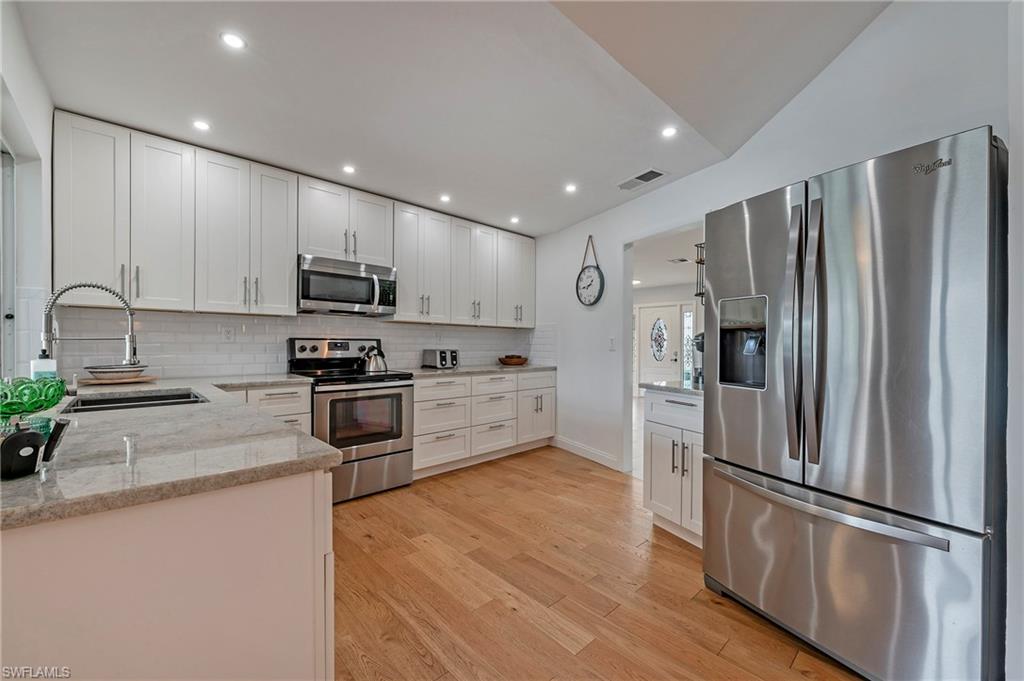 Attention buyers/investors! Looking to upgrade your home to an impeccably decorated move-in ready property? Or perhaps you want a permanent vacation destination for you and your family to enjoy; or maybe you want to have rental income? This property offers flexibility for whatever your purchase needs are. Welcome to 251 Torrey Pines Point, a stunning single-family residence in the heart of Naples, FL, offering a perfect blend of style, comfort, and luxury. This exquisite 2,508 sq ft home has an inviting open floor plan with four spacious bedrooms and three beautifully appointed bathrooms. Step inside and be greeted by the warm glow of natural light streaming through skylights, complemented by elegant chandeliers and recessed lighting. The home features a harmonious mix of hardwood and tile floors, providing both beauty and practicality. The heart of this home is undoubtedly its outdoor oasis. Enjoy the Florida sunshine in your private heated pool, or host unforgettable gatherings in the expansive barbecue area. The private patio and yard offer a serene retreat with panoramic golf course and lake views, perfect for relaxation or entertaining guests. Indoors, the central air conditioning and heating ensure year-round comfort, while the electric heat provides an efficient and cozy atmosphere during cooler months. Parking is a breeze with an attached garage, on-site parking, and additional street parking available. The lush front and back yards add to the home’s curb appeal, creating a welcoming environment. This property is a true gem in Naples, offering an exceptional living experience with its thoughtfully designed features and prime location, just moments from downtown 5th Avenue and Naples beaches. Don’t miss the opportunity to make this beautiful home your own for pleasure and/or a rental investment. Schedule your showing today and discover the lifestyle that awaits at 251 Torrey Pines Point.