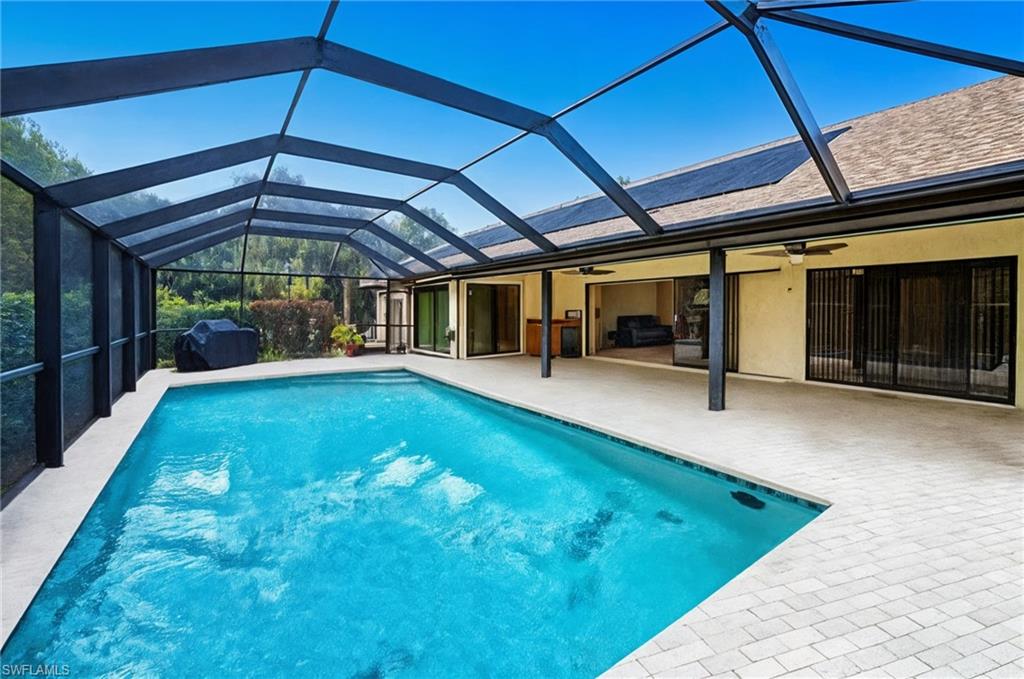 Lowest priced pool home in the area by a long shot. You have found your dream pool home! Wonderful neighbors. 100 ft wide lot! (this matters!)No restrictions on fences! Delightful area. Tucked away marvelously on the west side of Airport road, with a hidden trail leading to the Greenway, avoiding any contact with the street. This residence features vaulted ceilings, updated kitchen and bathrooms, along with a pool. Outrigger community offers amenities like a boat ramp, pickleball, basketball, heated pool, and clubhouse. The HOA fee is just $520 a year with no rental limitations. The property sits on a spacious lot and boasts new hurricane-resistant windows, AC, water heater, and shutters. Ideal for prospective buyers. You can put a motorhome on one side of your house and a pontoon on the other, lots of room! Easy to see.